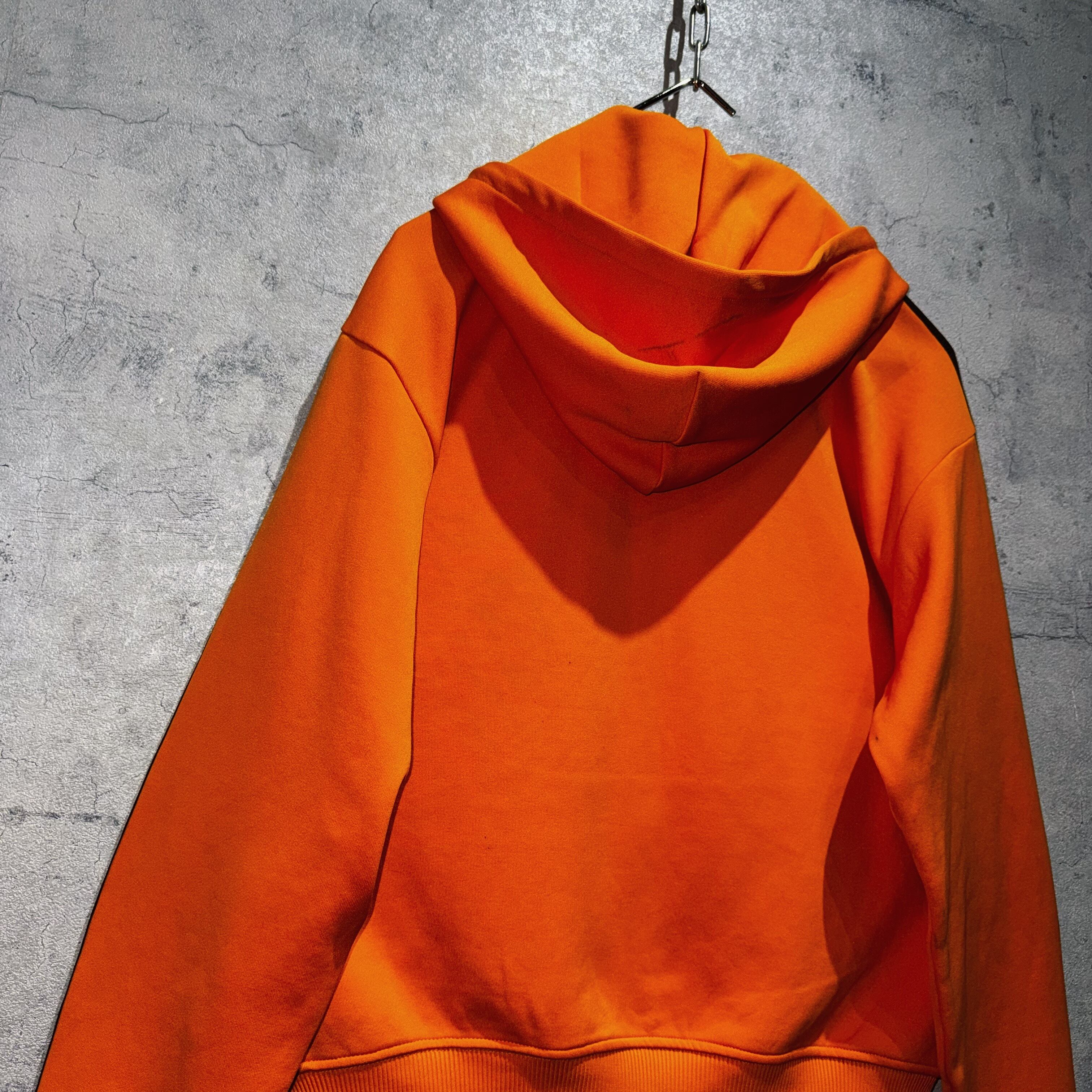 中々お目にかかれないオレンジカラーを身に纏ったフーディータイプのトラックジャケット。