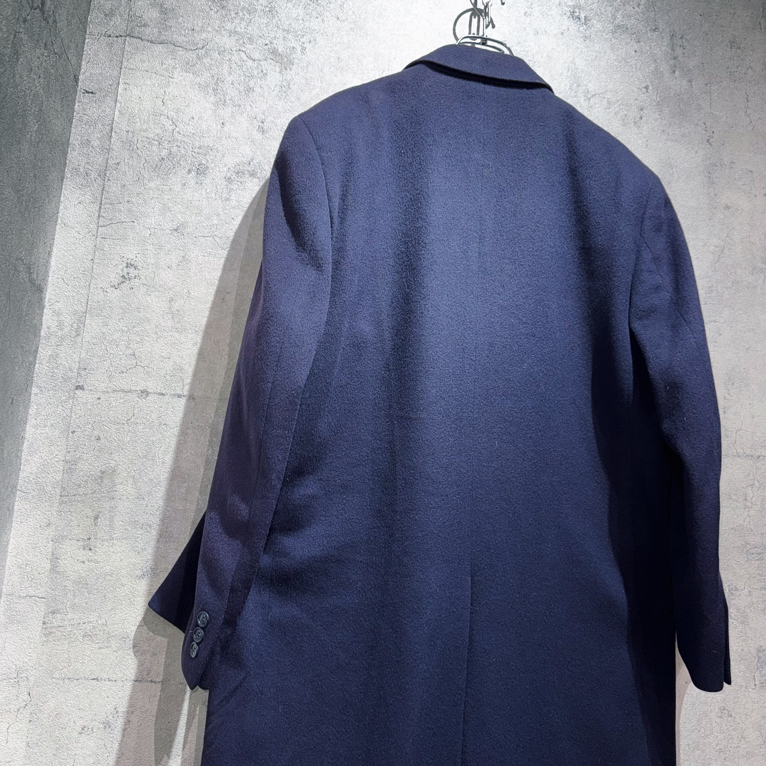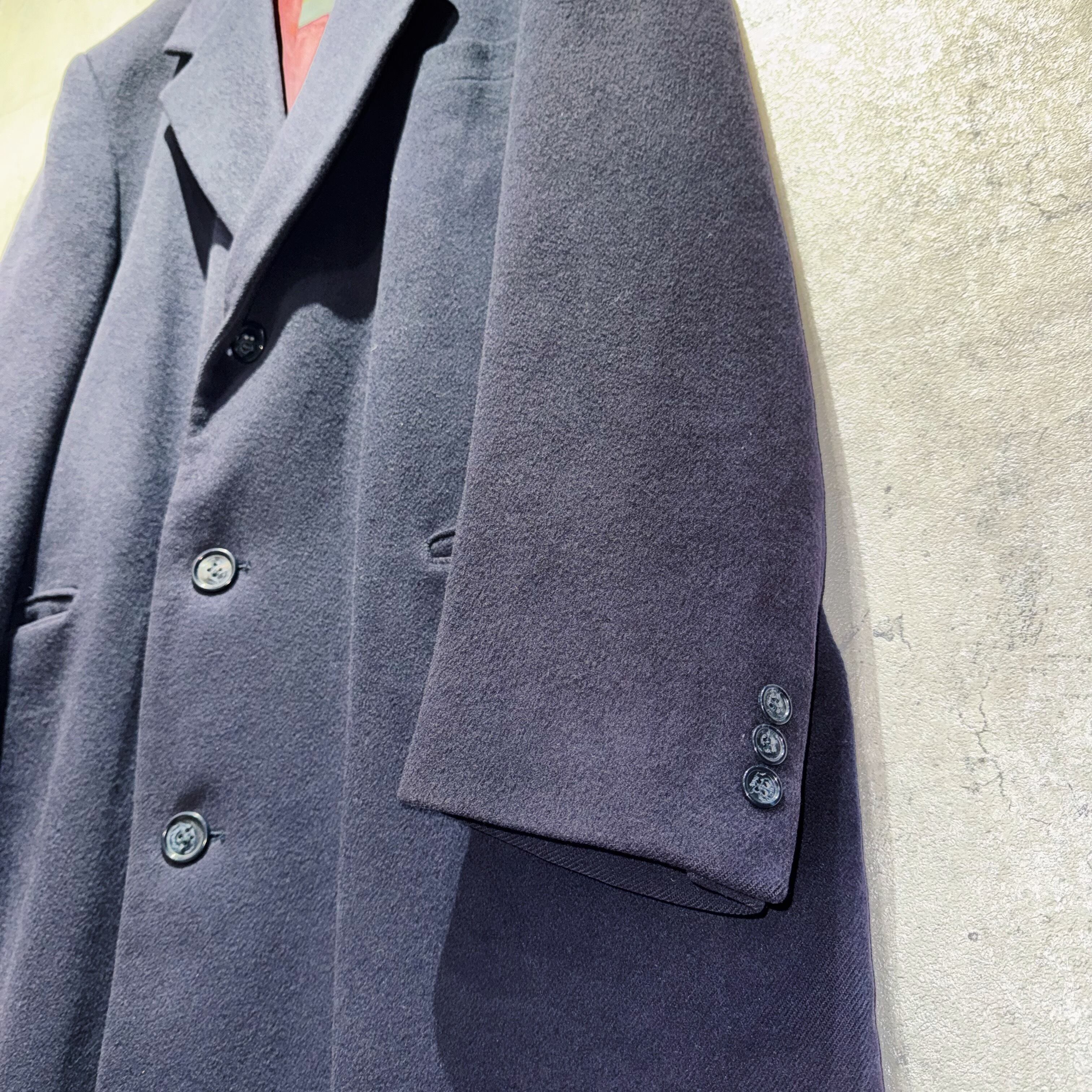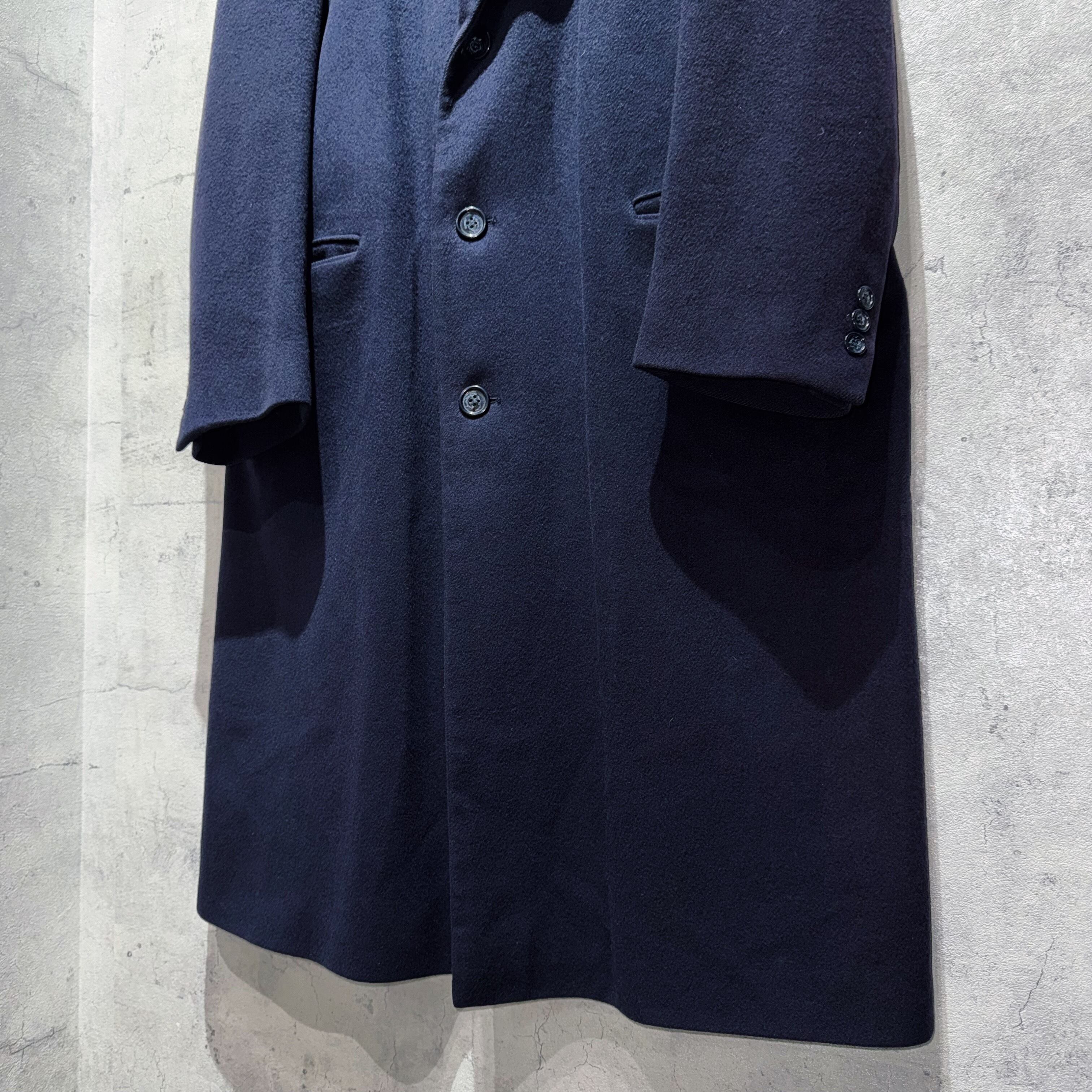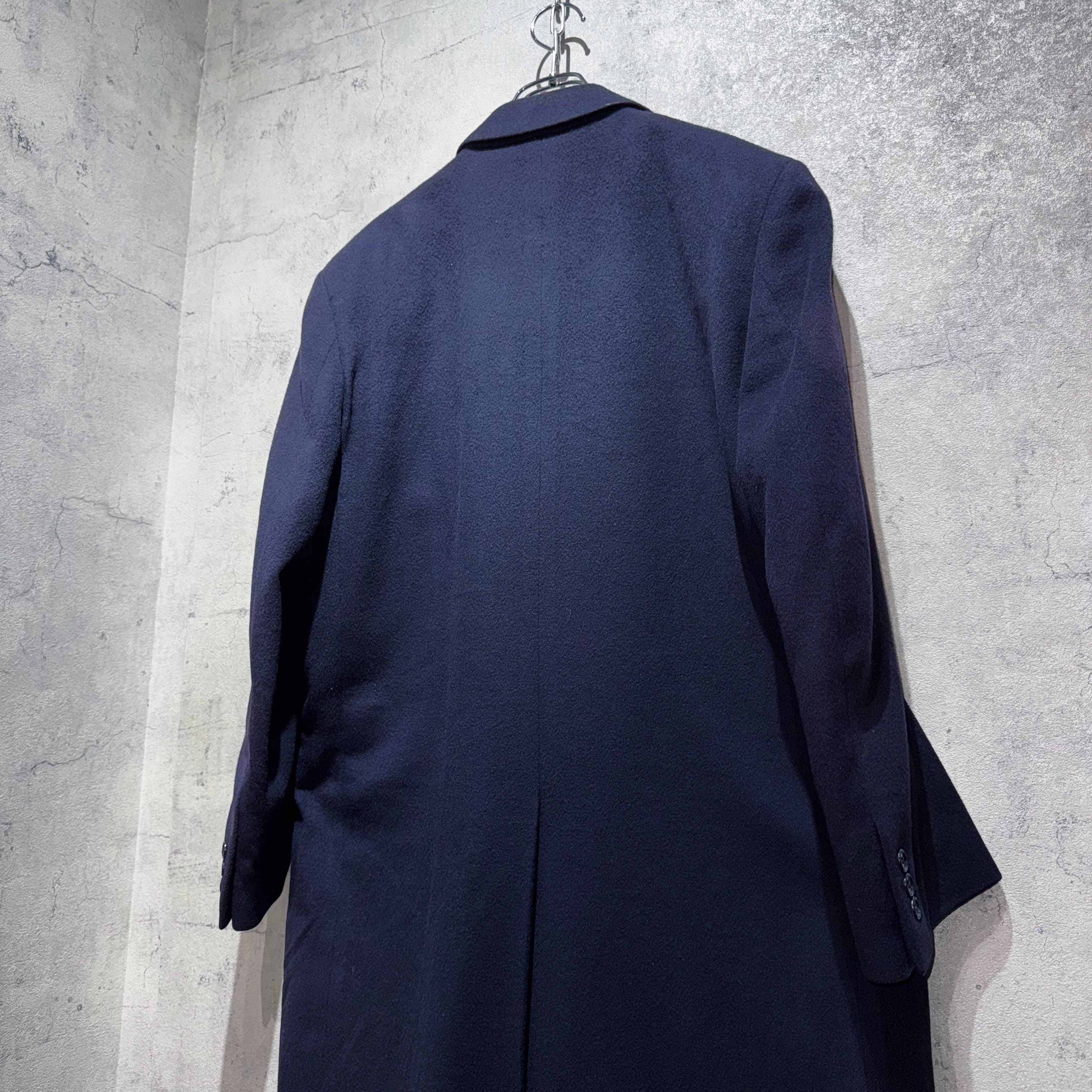 そんなブランドから80〜90'sくらいに販売されていたシングルブレストのチェスターコート。3つ留のロング丈、パワーショルダーで着用時は圧倒的な存在感をはないます。
