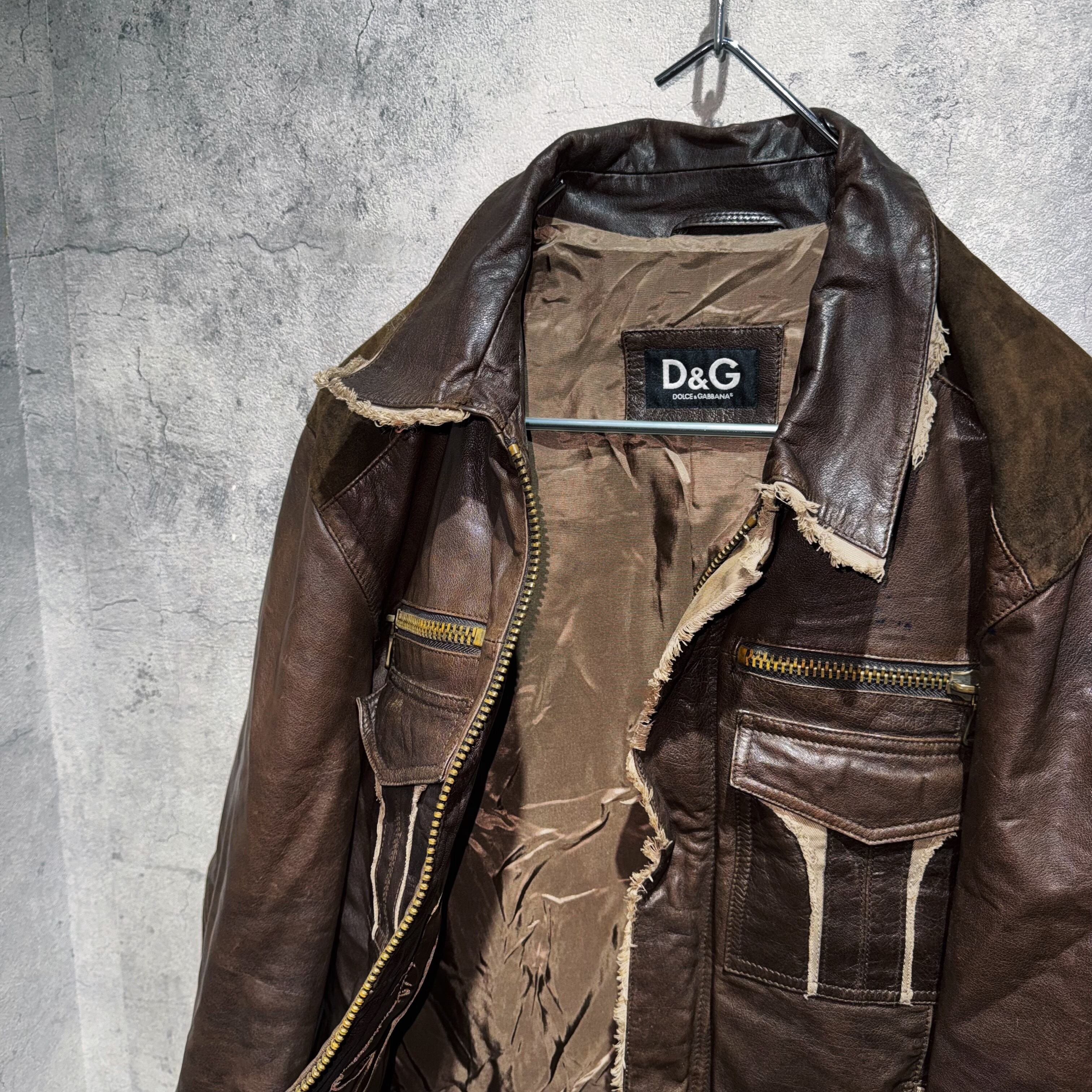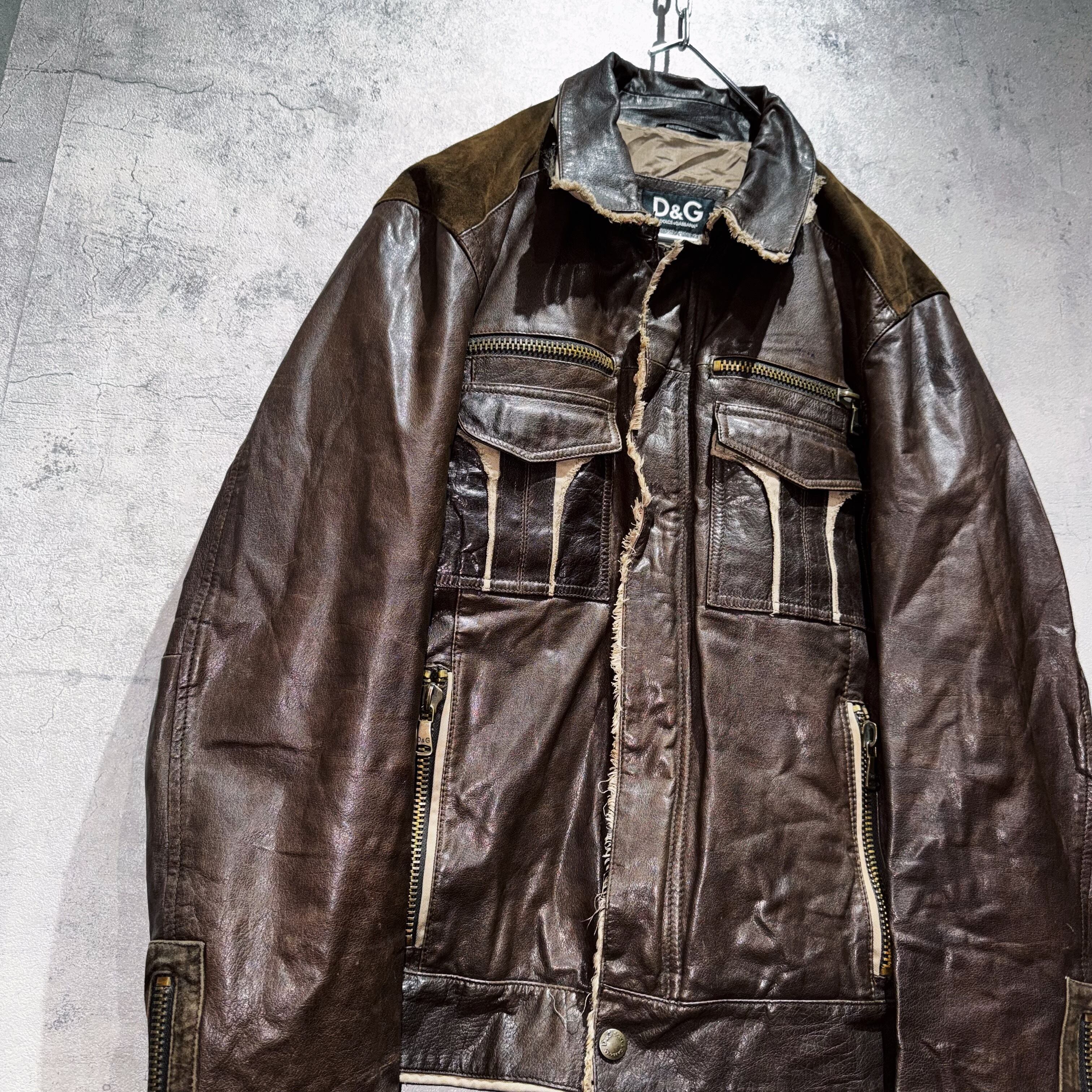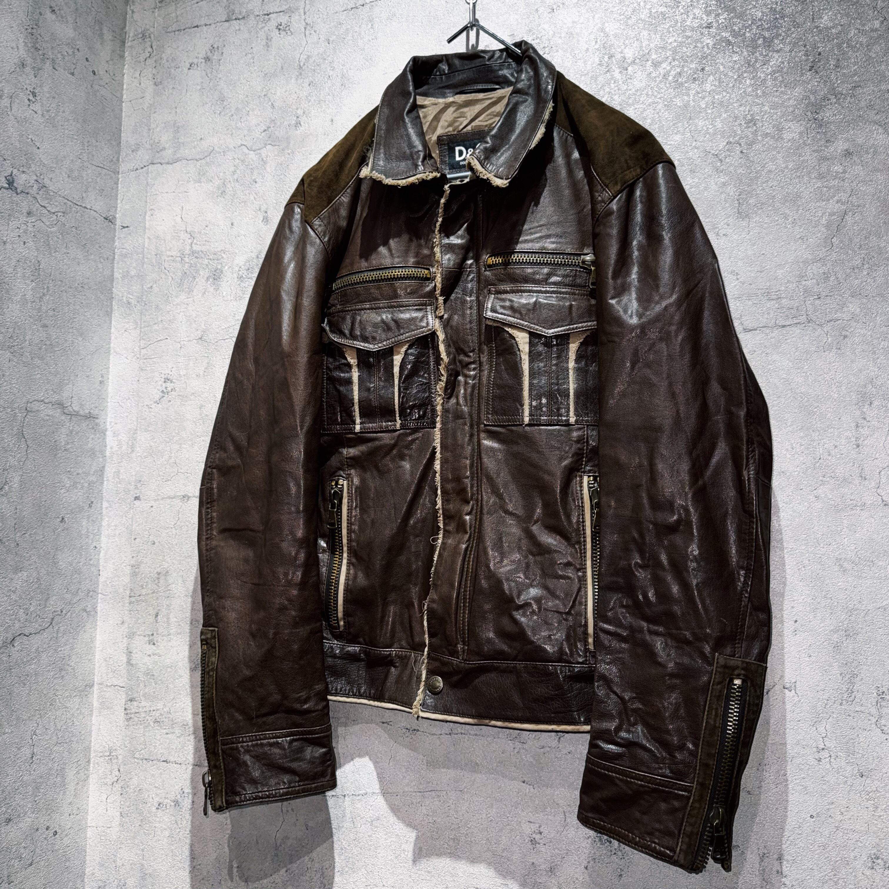 "DOLCE&GABBANA"dark brown leather switching design jacket