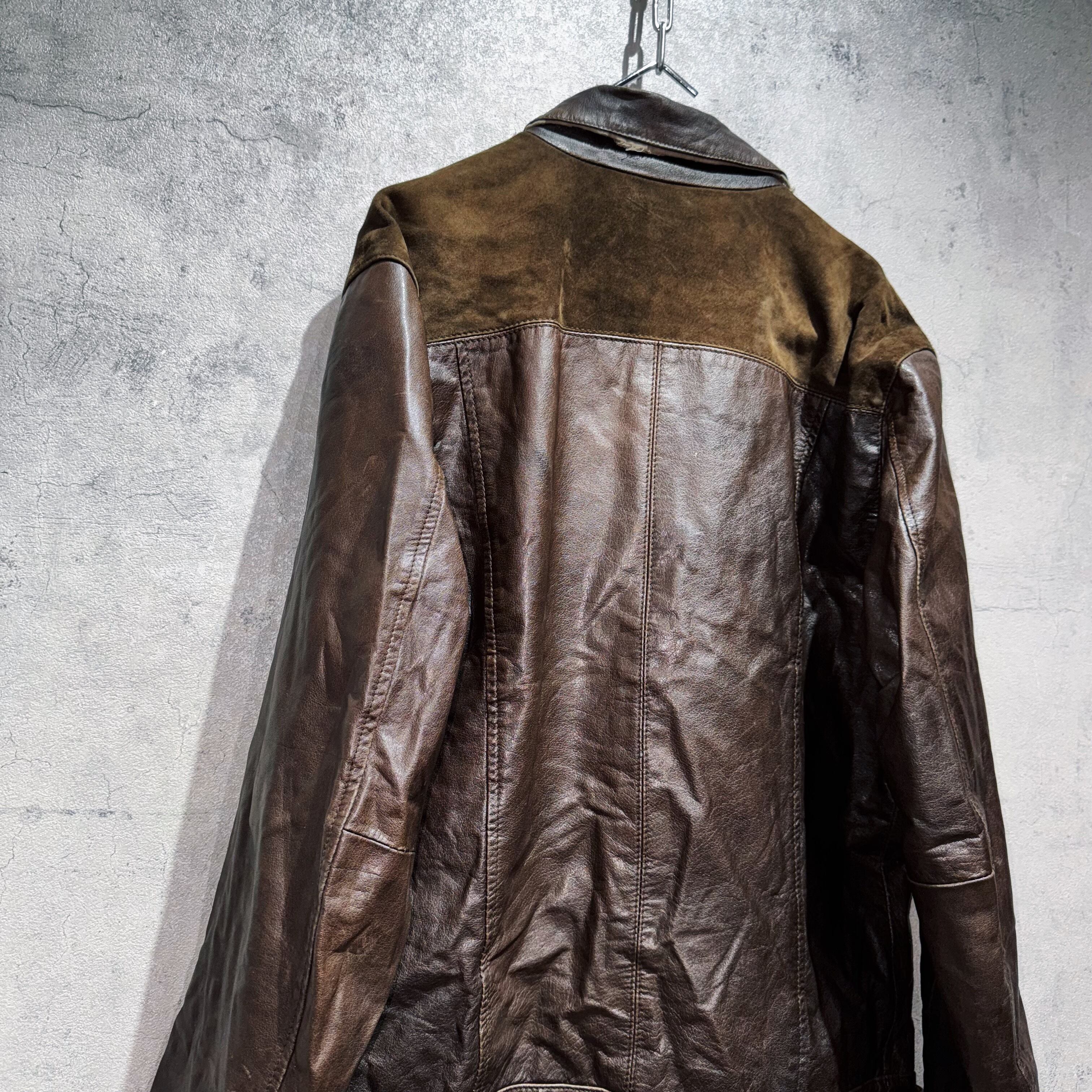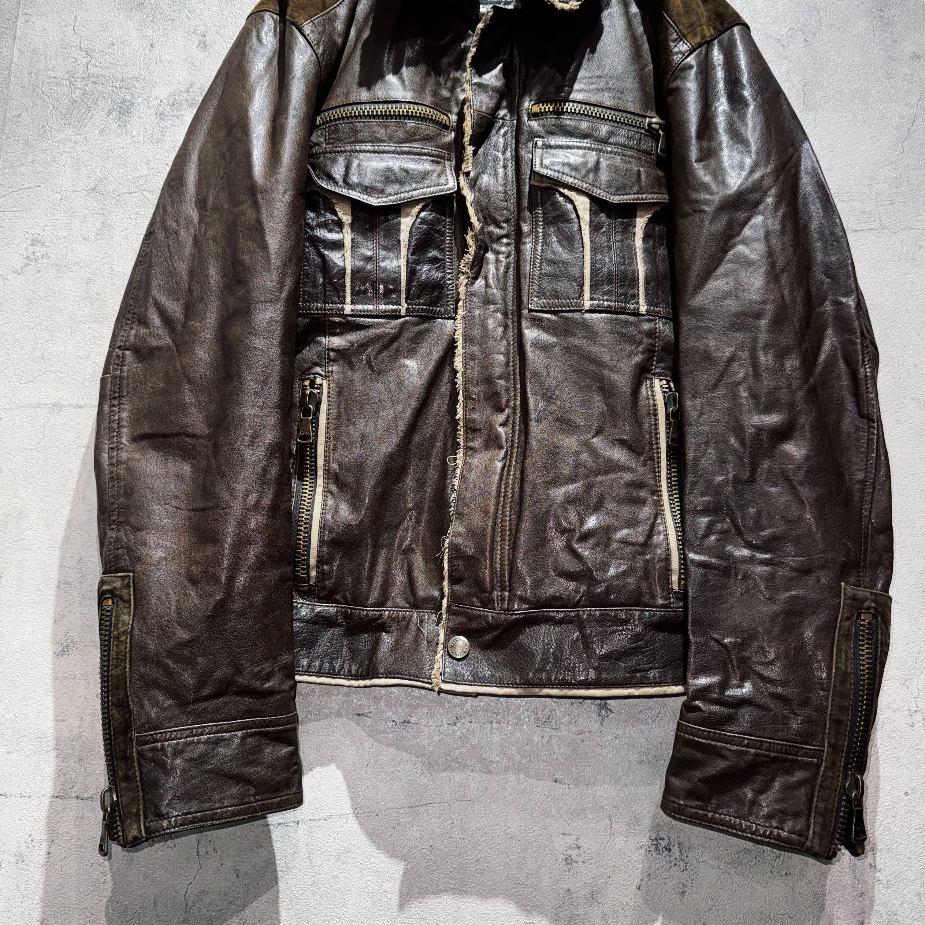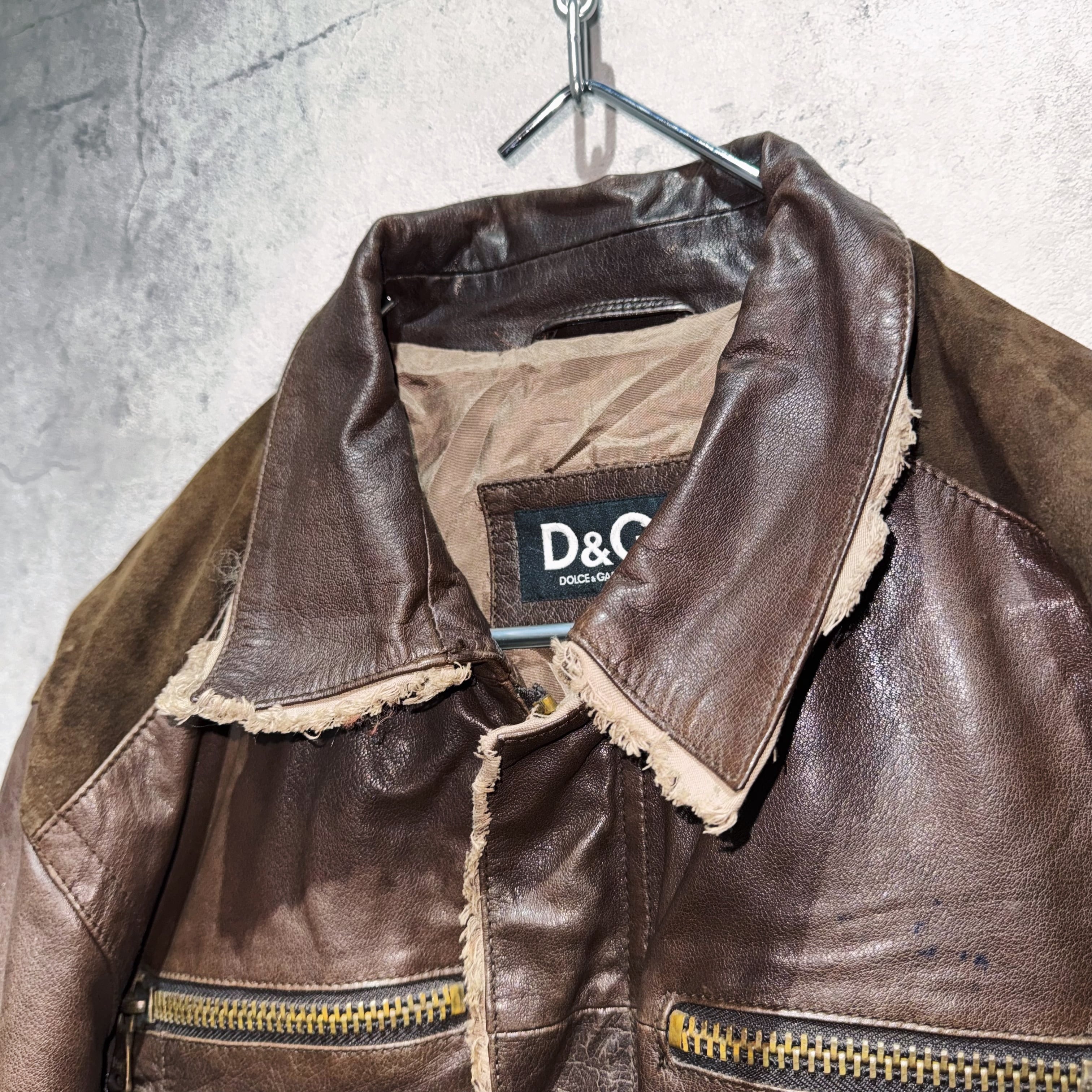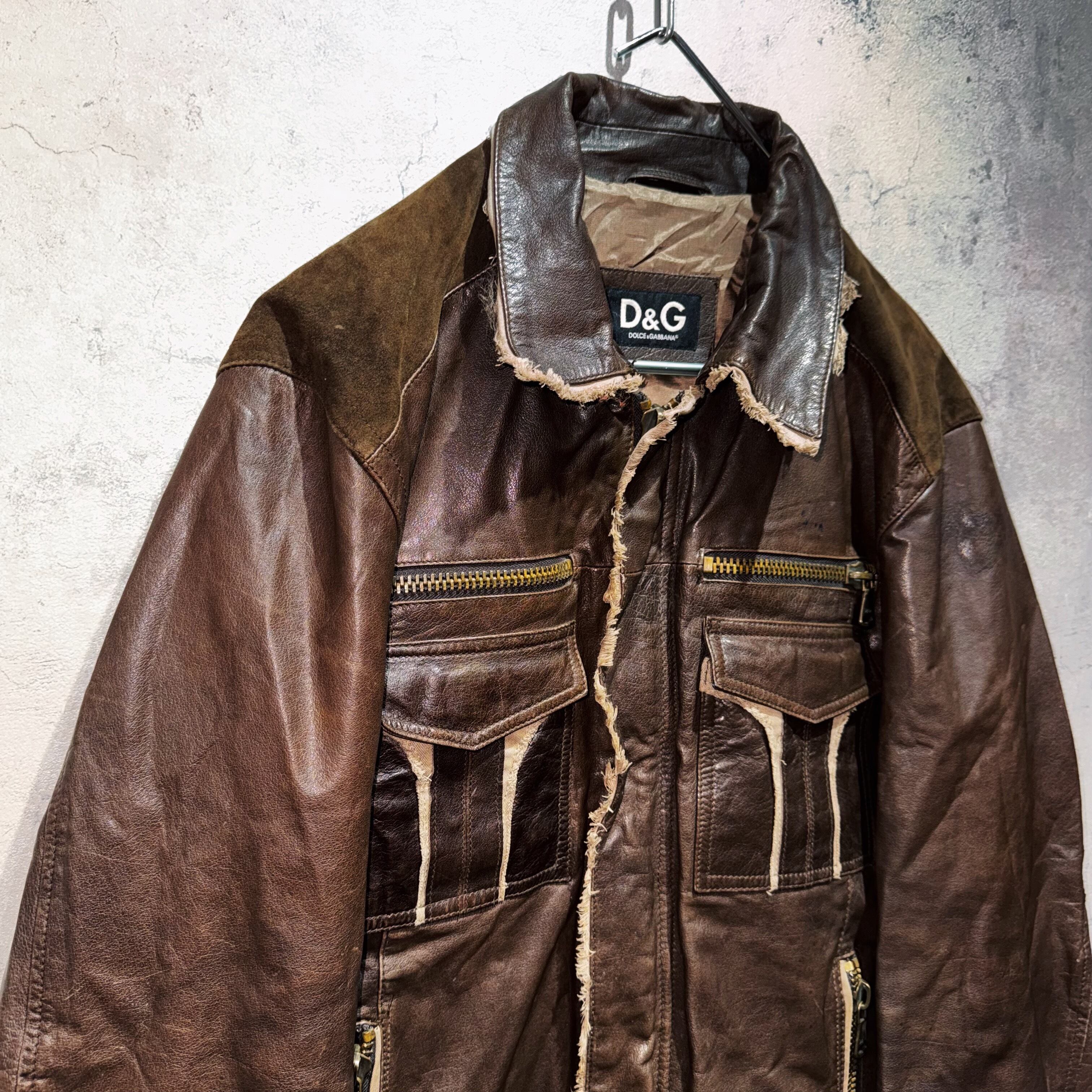 "DOLCE&GABBANA"dark brown leather switching design jacket