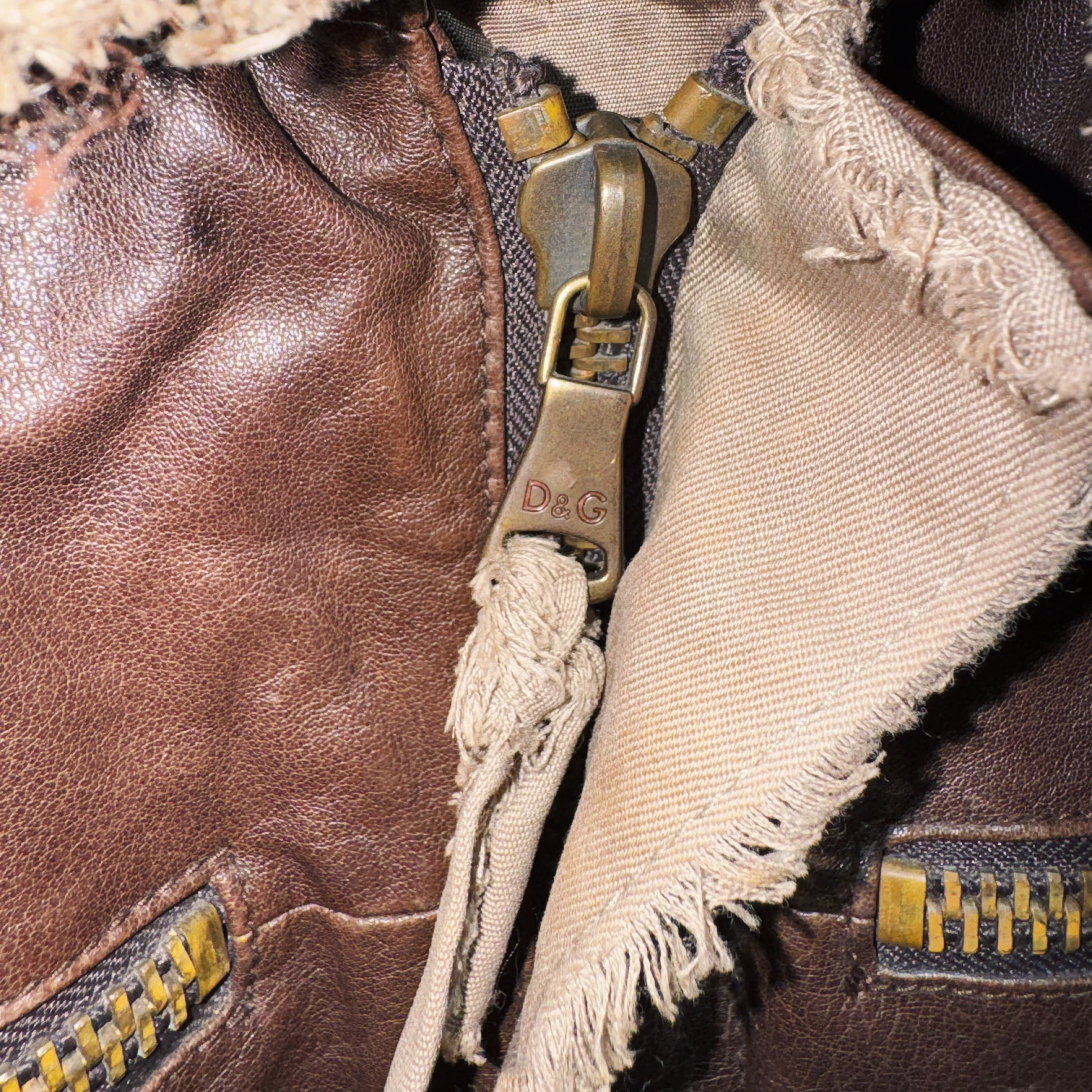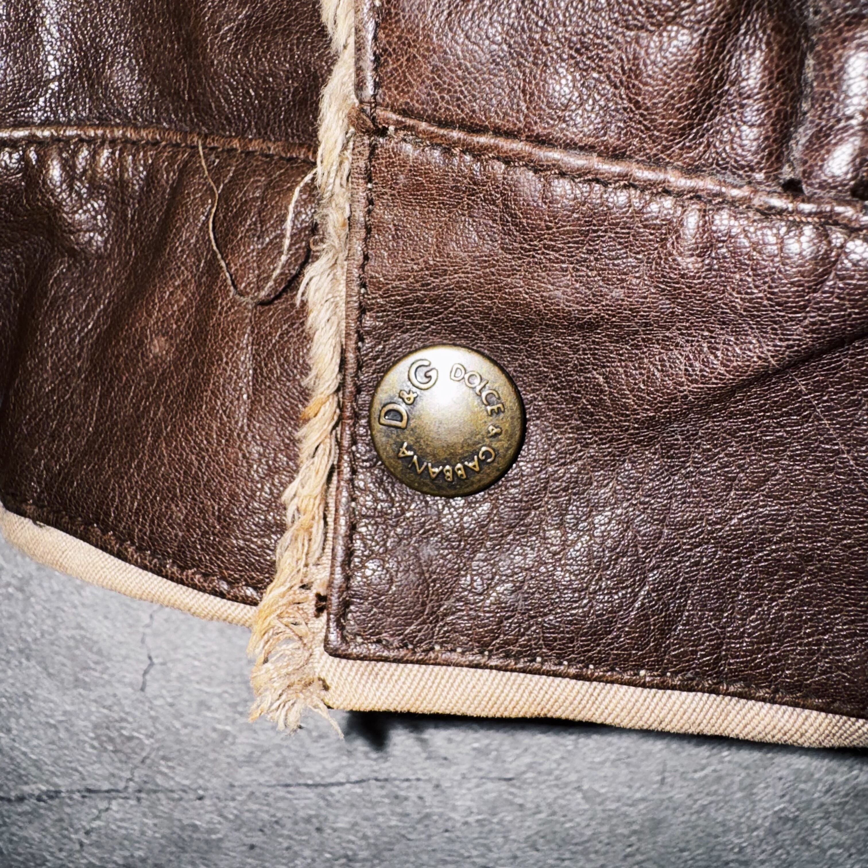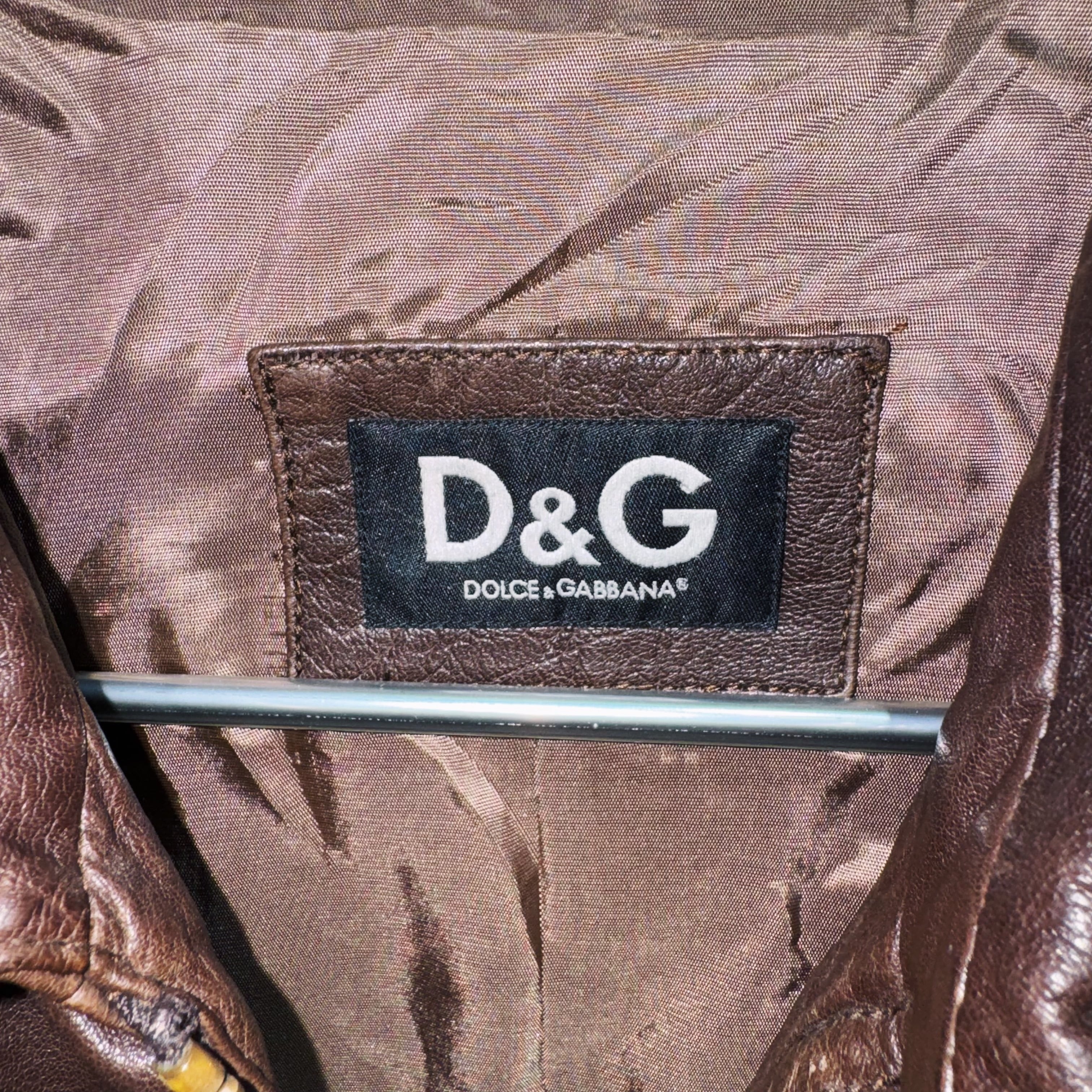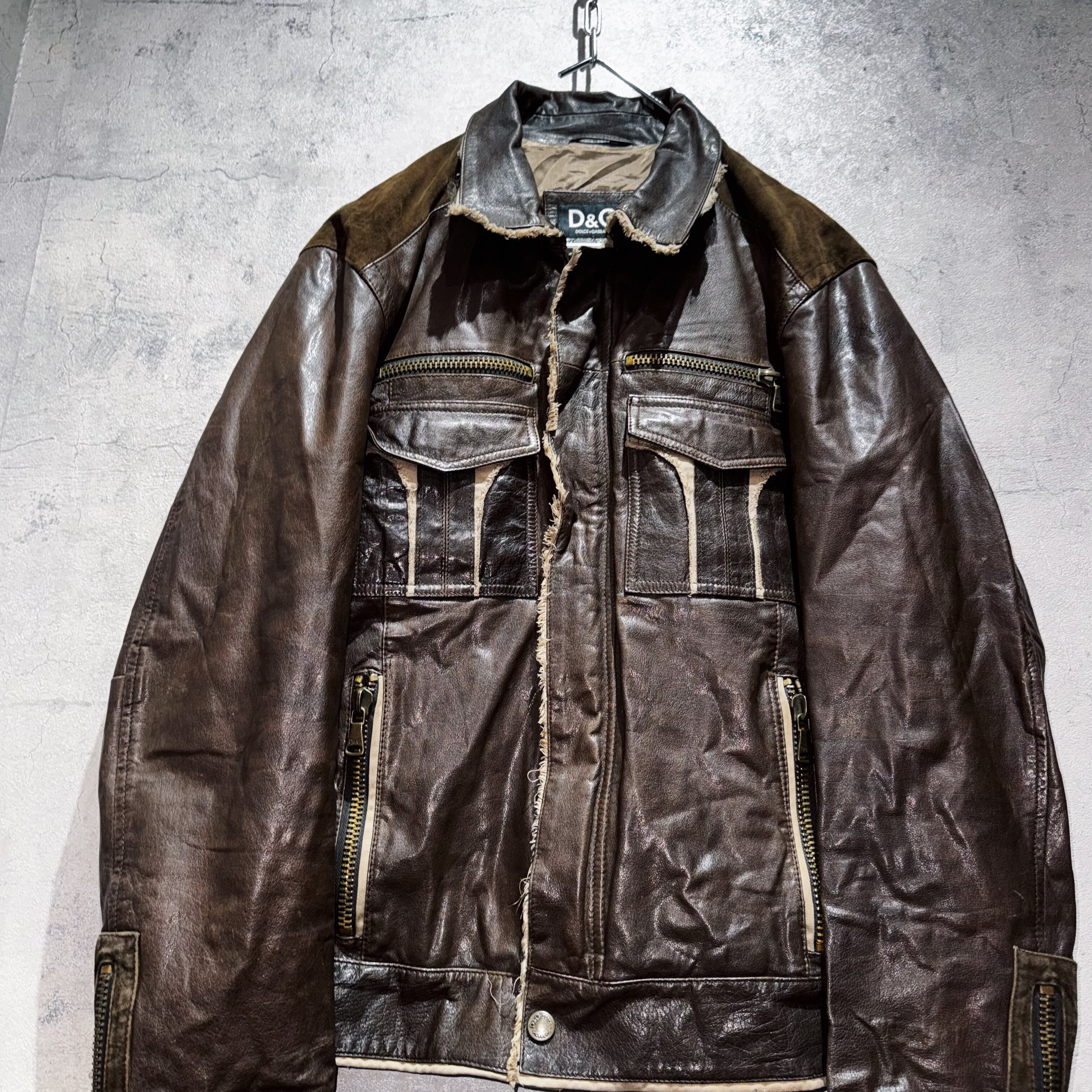 "ドルチェ&ガッバーナ"ダークブラウンレザースイッチングデザインジャケット