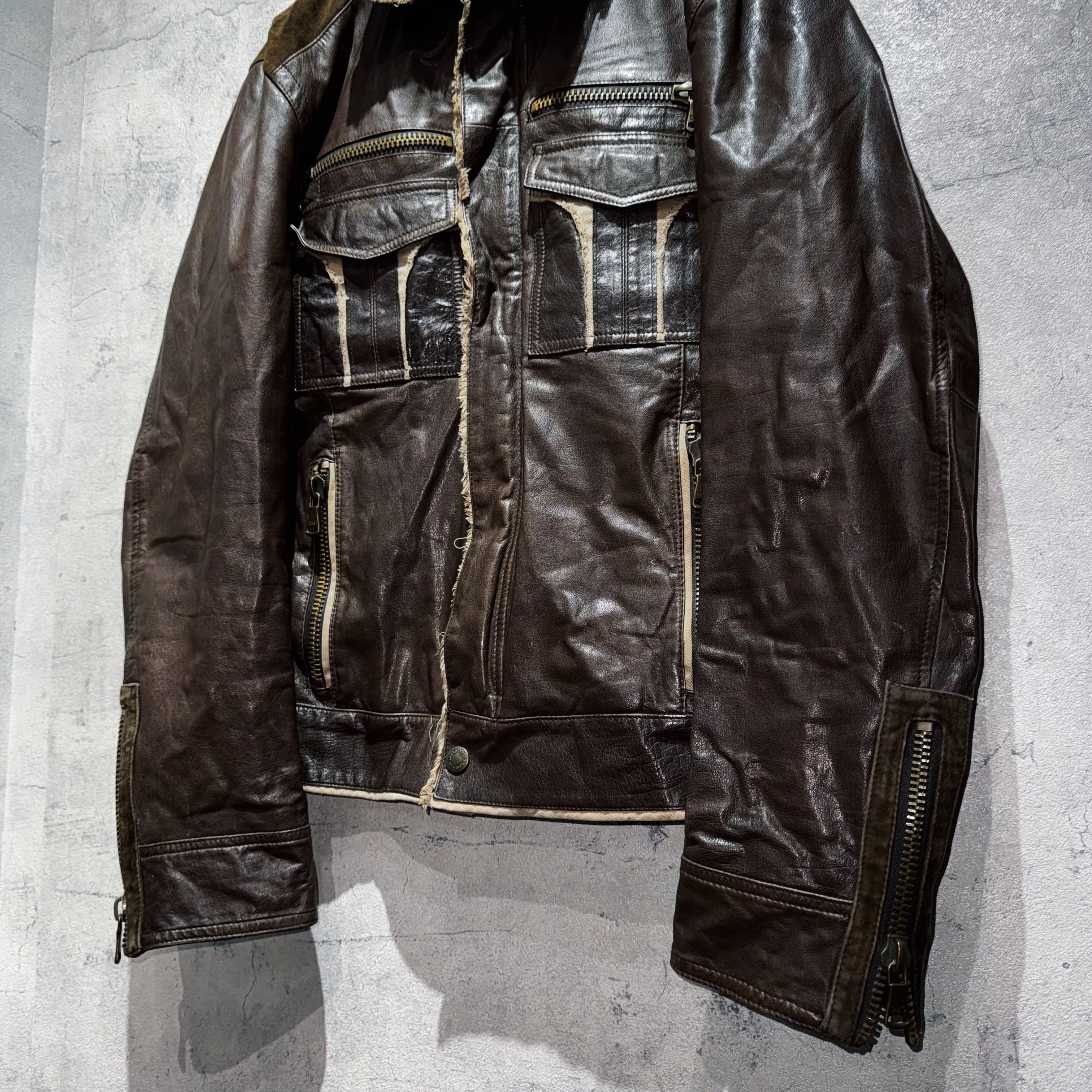 近年トレンドであるダークウェアや2010年ファッションなどにも最適な1着。レザーアイテムの中でも周りとの差別化を図れるspecialな逸品です。