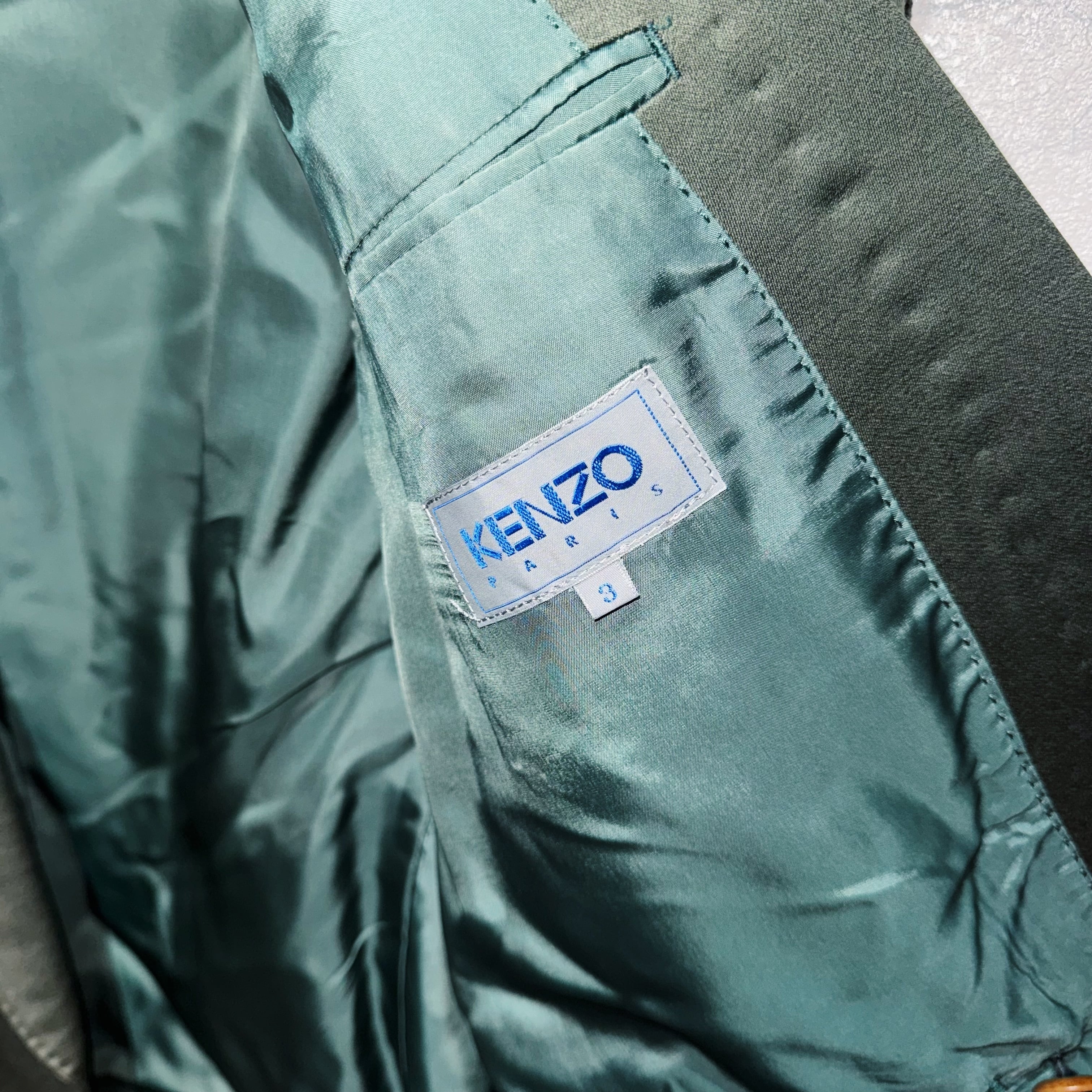 "ケンゾーパリ"オリーブグリーンカラーシックスボタンダブルブレストセットアップ