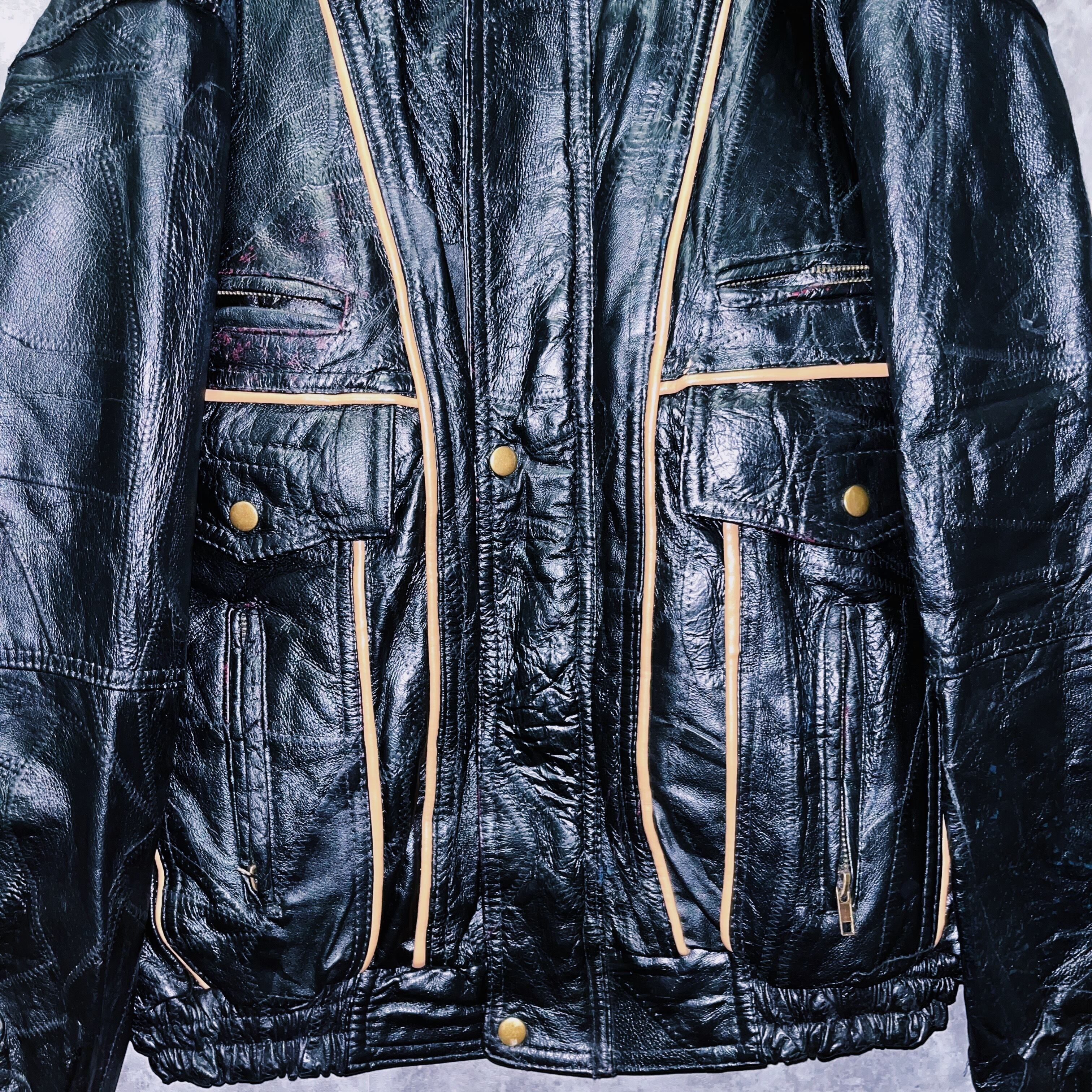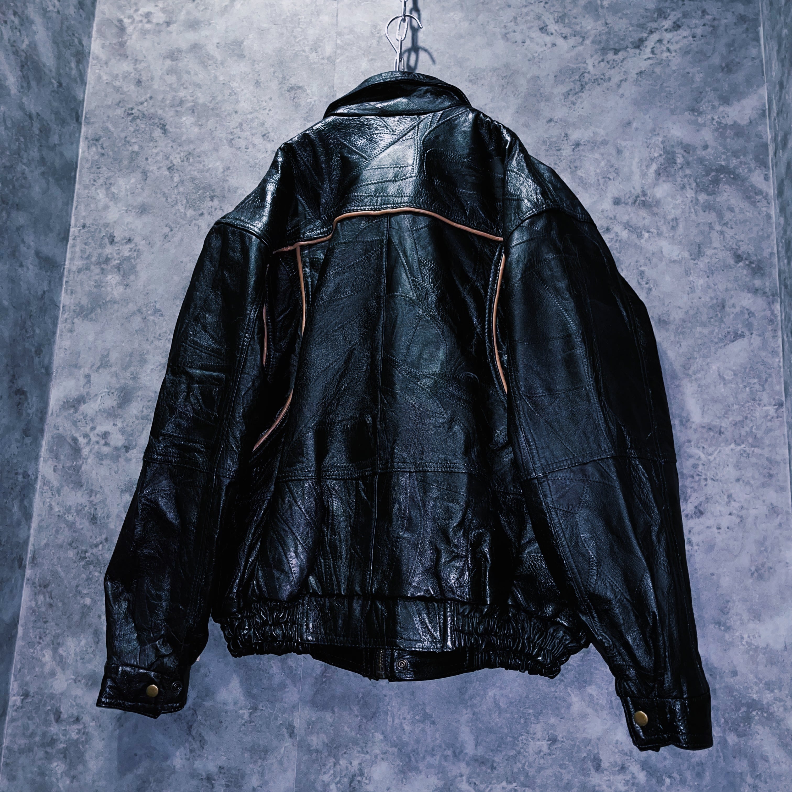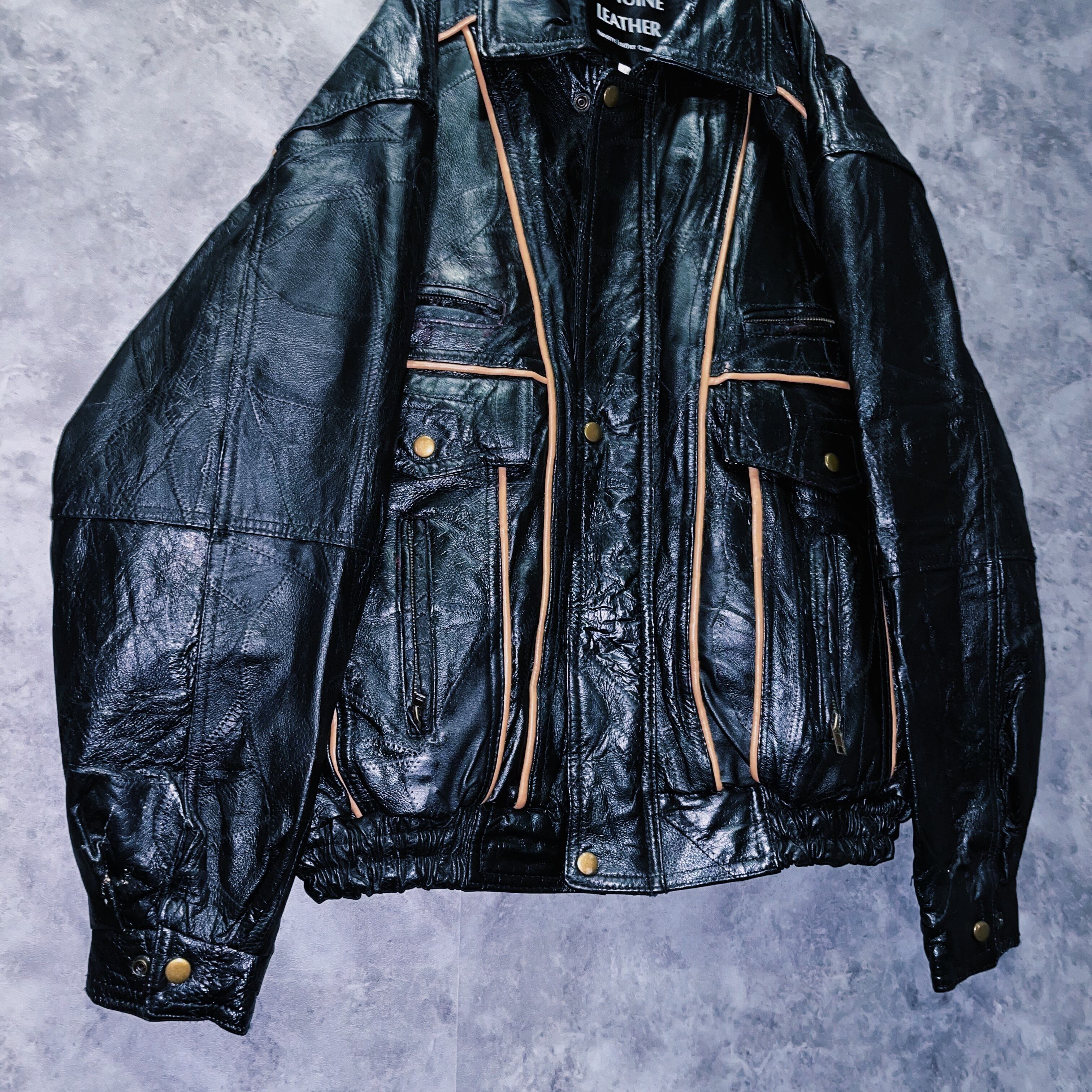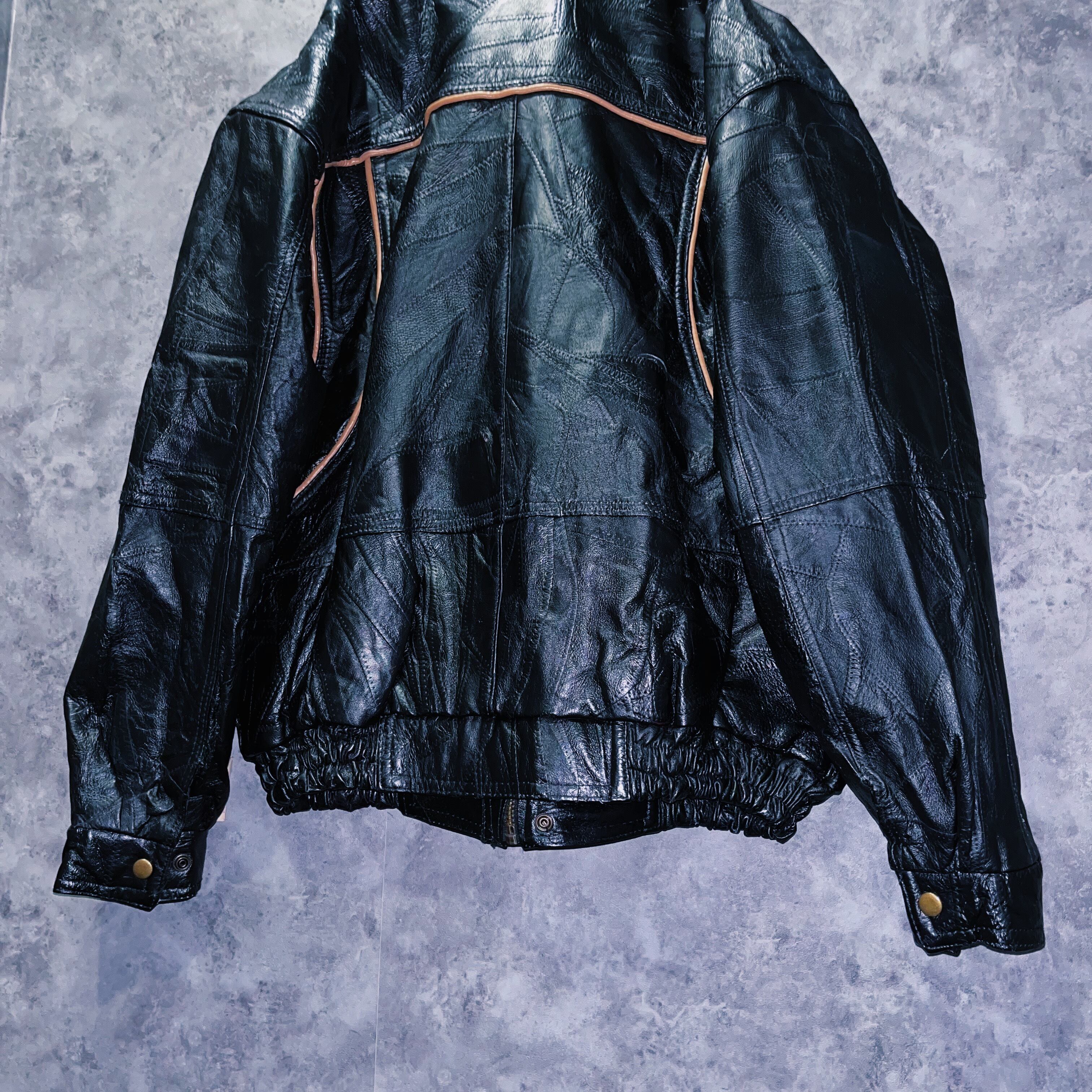 ヴィンテージパッチワークステッチデザインレザーボンバージャケット