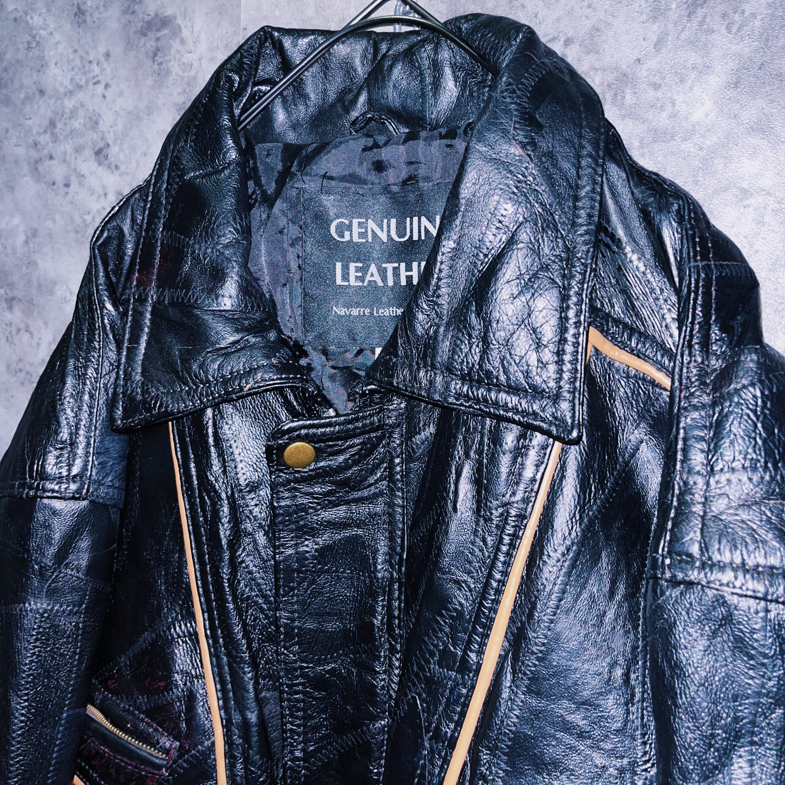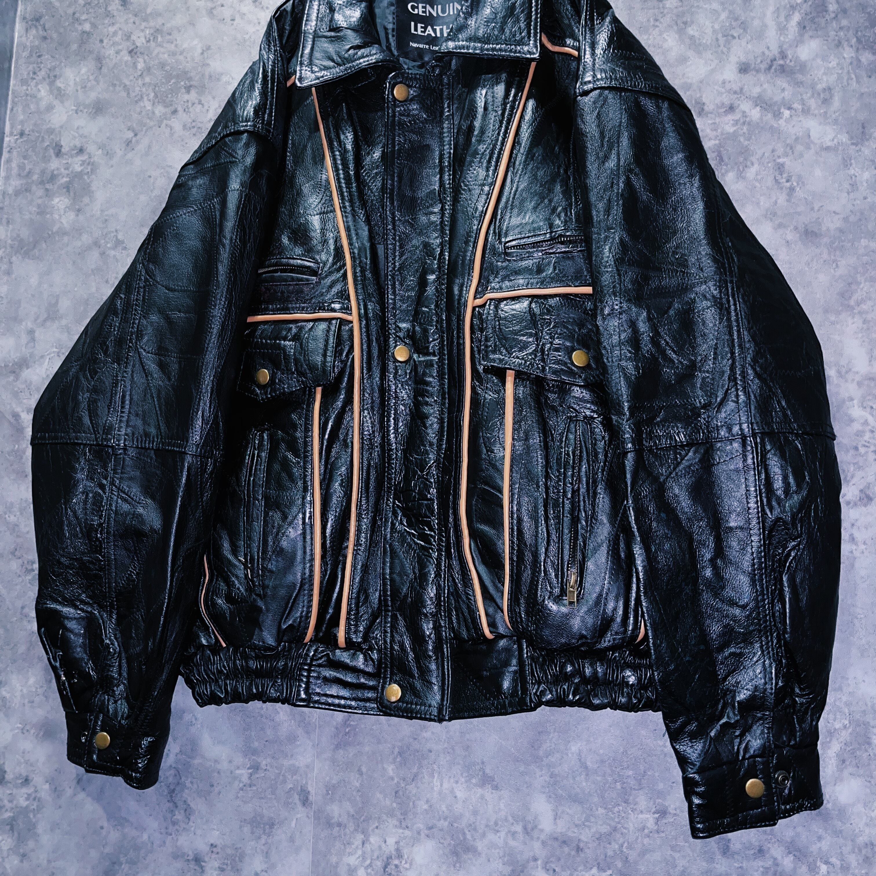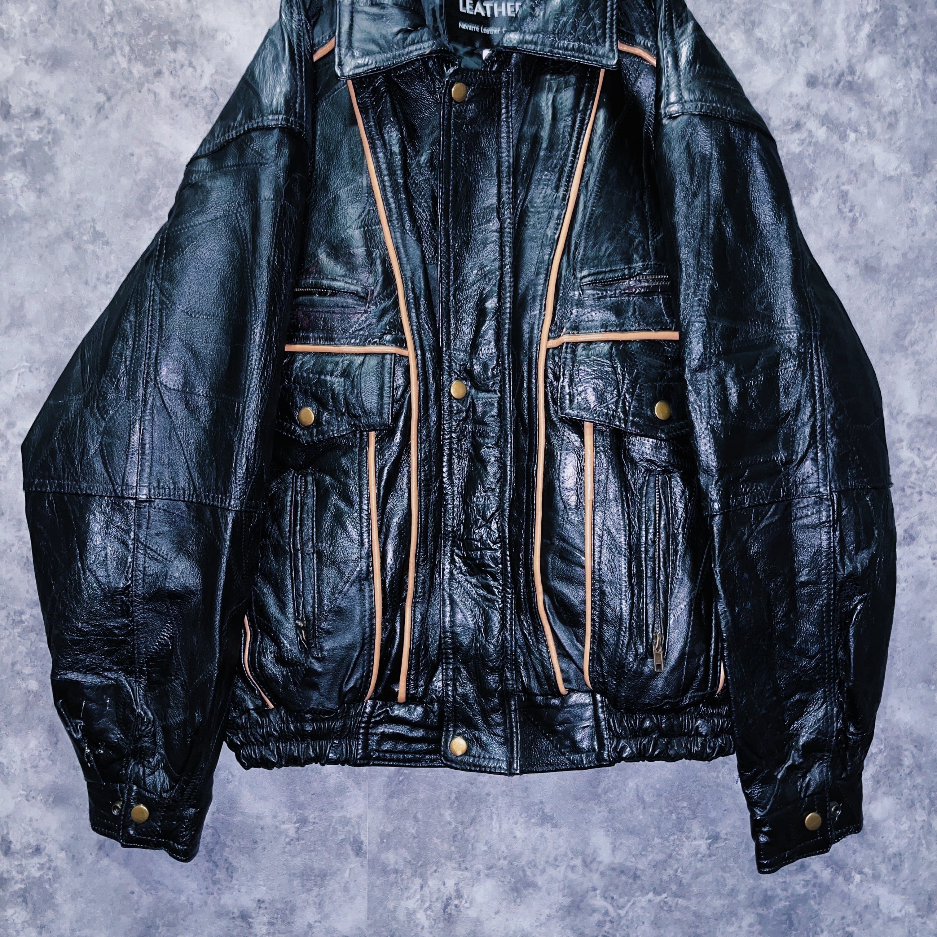 ヴィンテージパッチワークステッチデザインレザーボンバージャケット