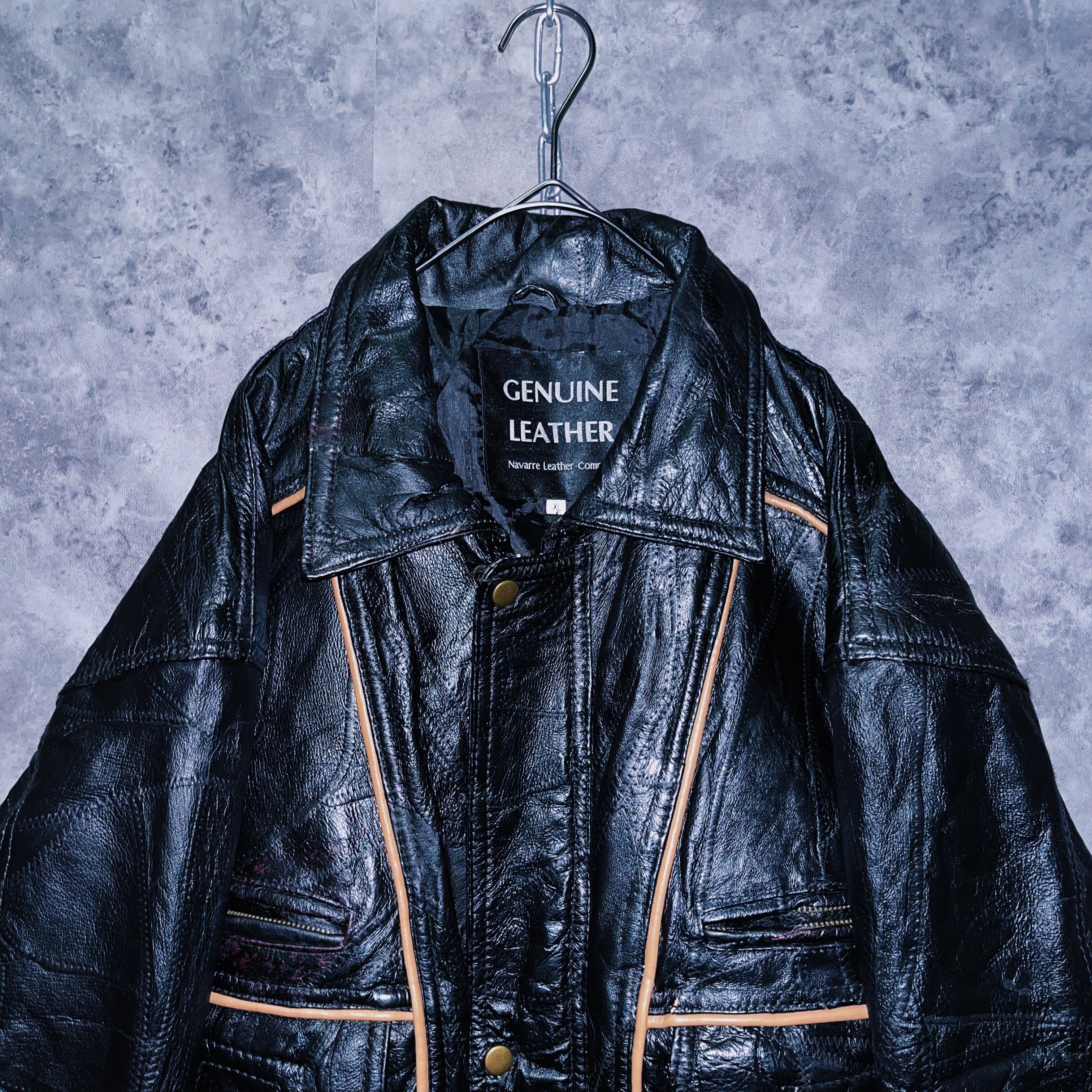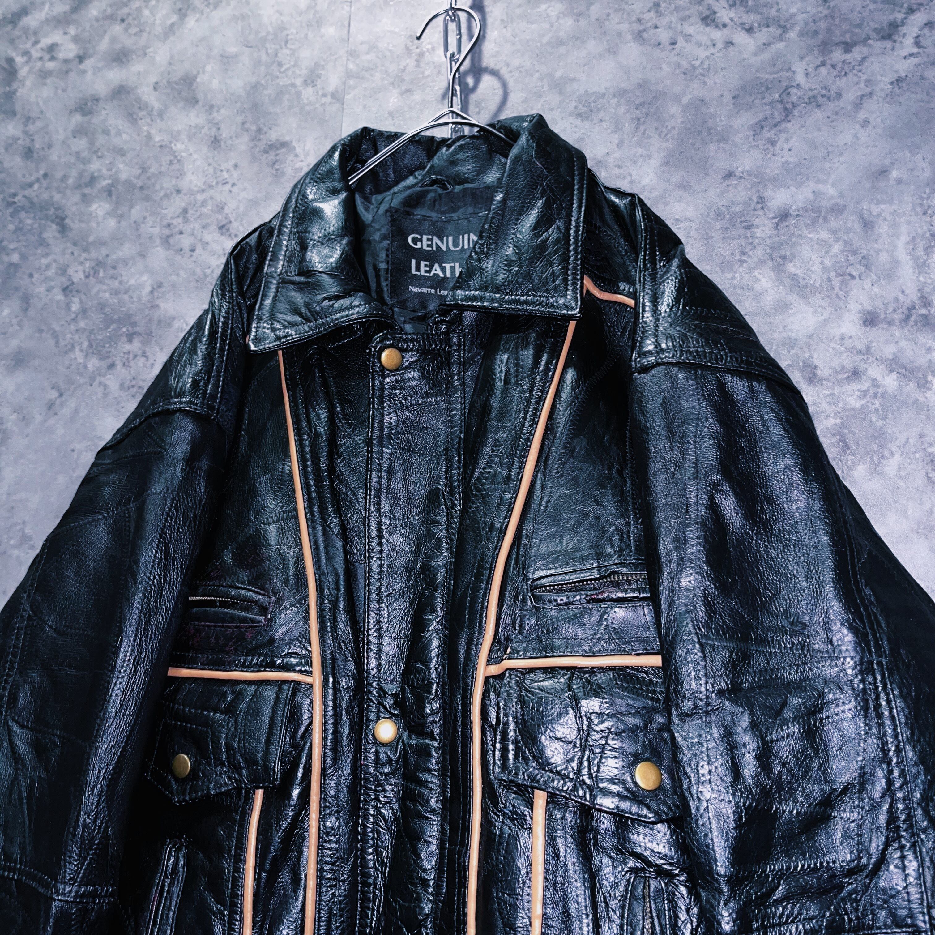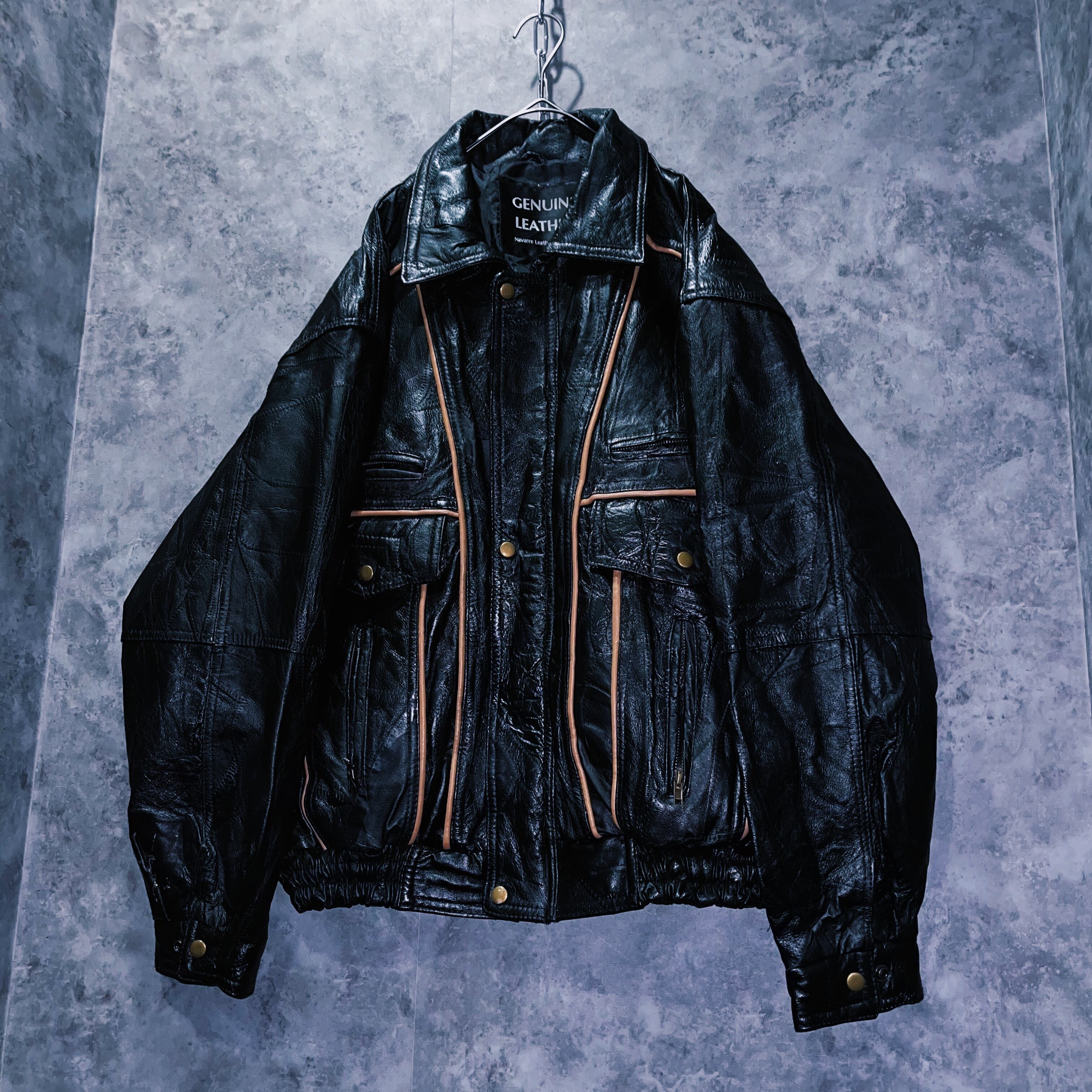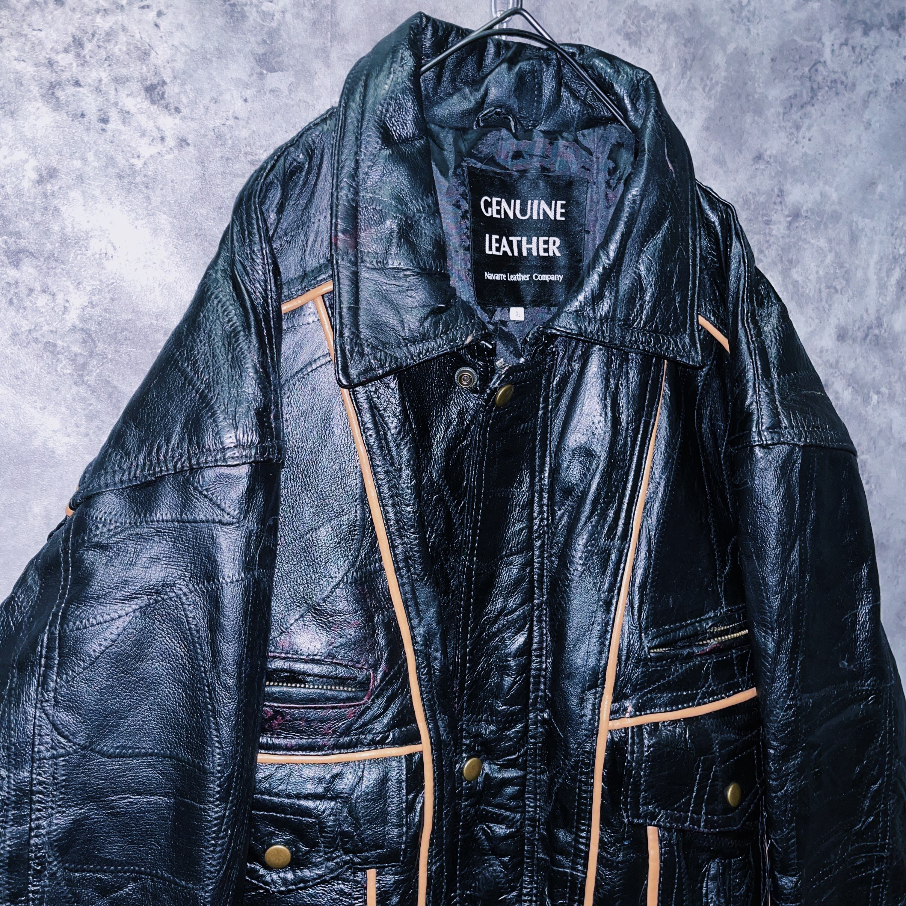 ヴィンテージパッチワークステッチデザインレザーボンバージャケット
