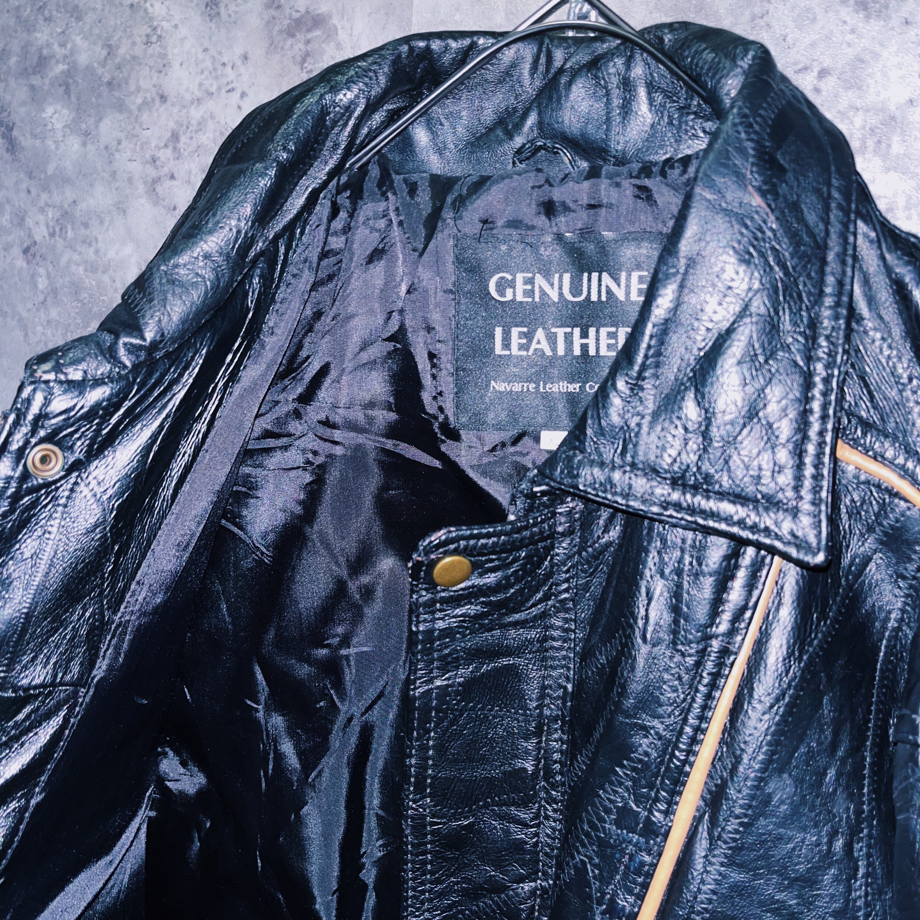 無骨にギラっと光るレザーにステッチデザインを施したことで反射加減によって模様が浮かび上がり、表情の違いを楽しめる逸品。ボンバータイプのボリュームのあるシルエットのフロントにはオレンジラインがつけられており、これもまた男らしいカラーリングに無骨ながら王道にかっこいいを演出してくれています。