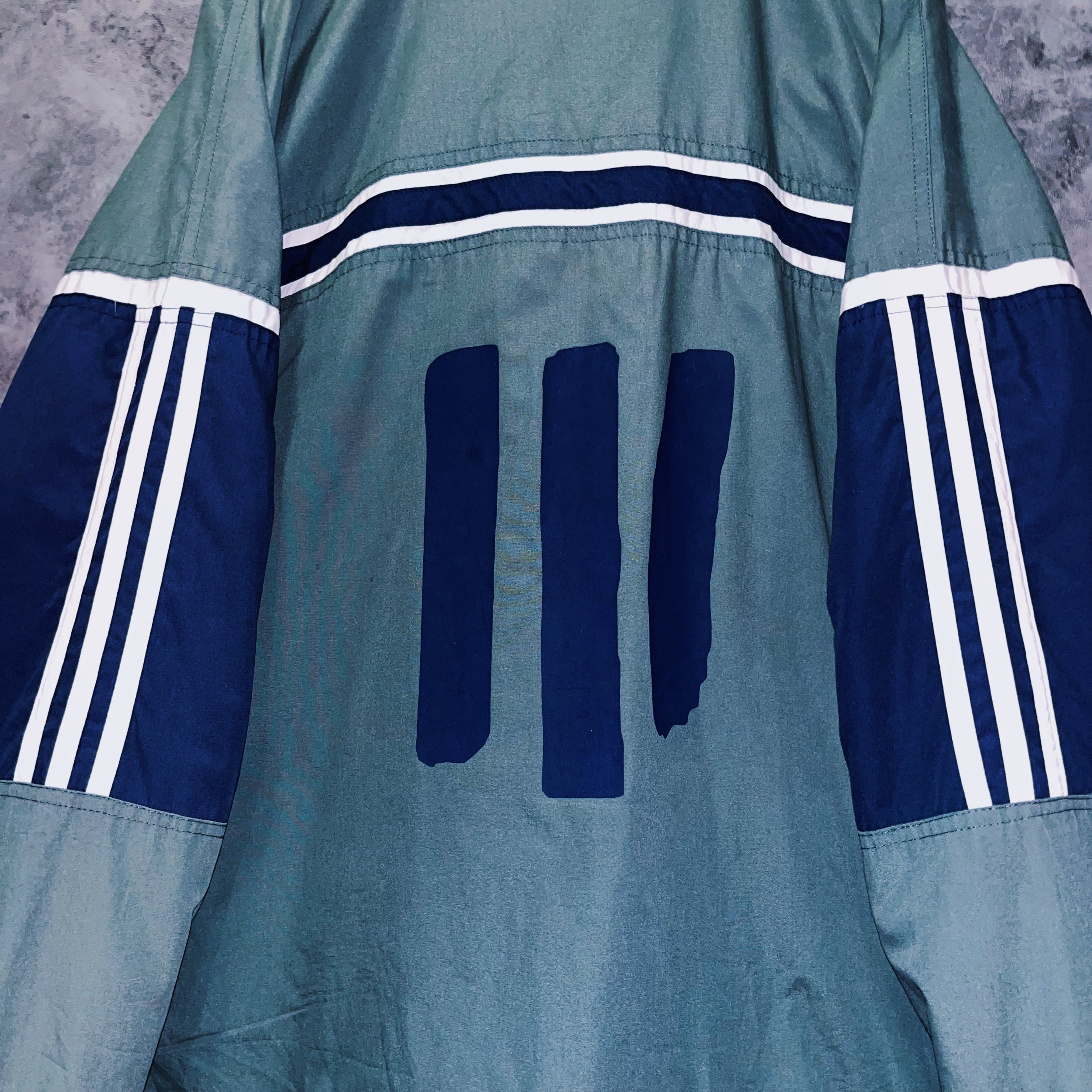 胸元に“adidas”ロゴとバックにもスリーラインが施されていますが、これはかなり稀なデザイン。