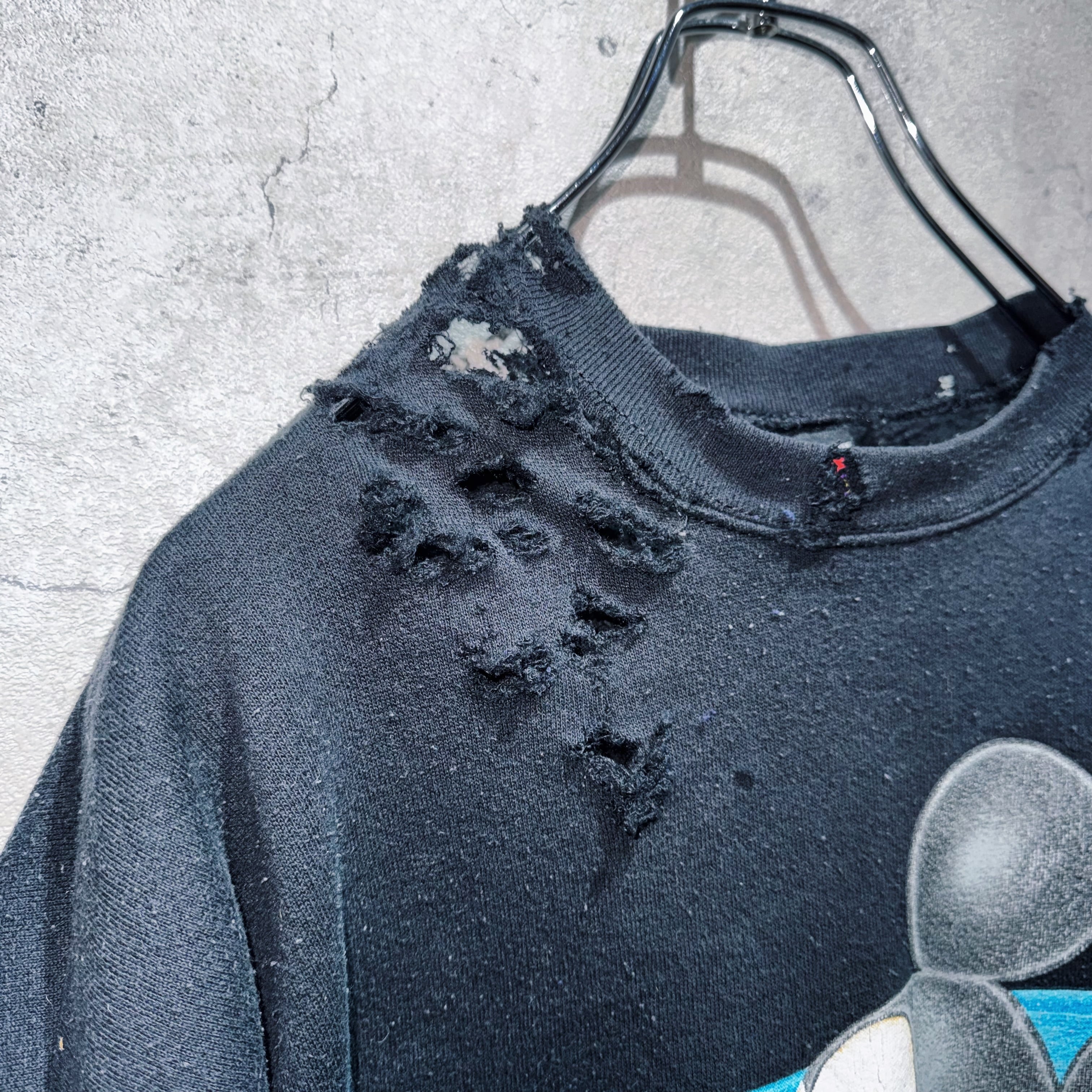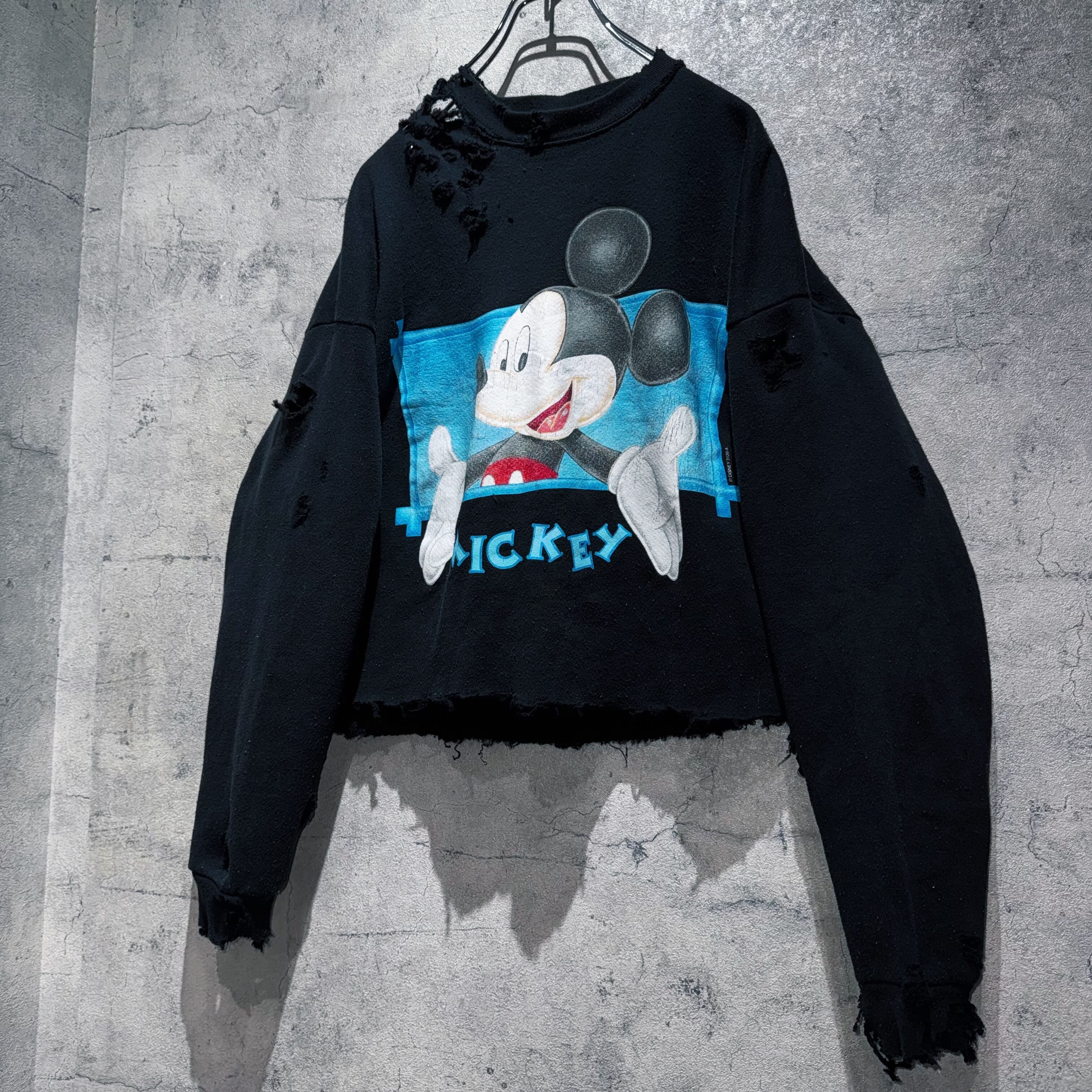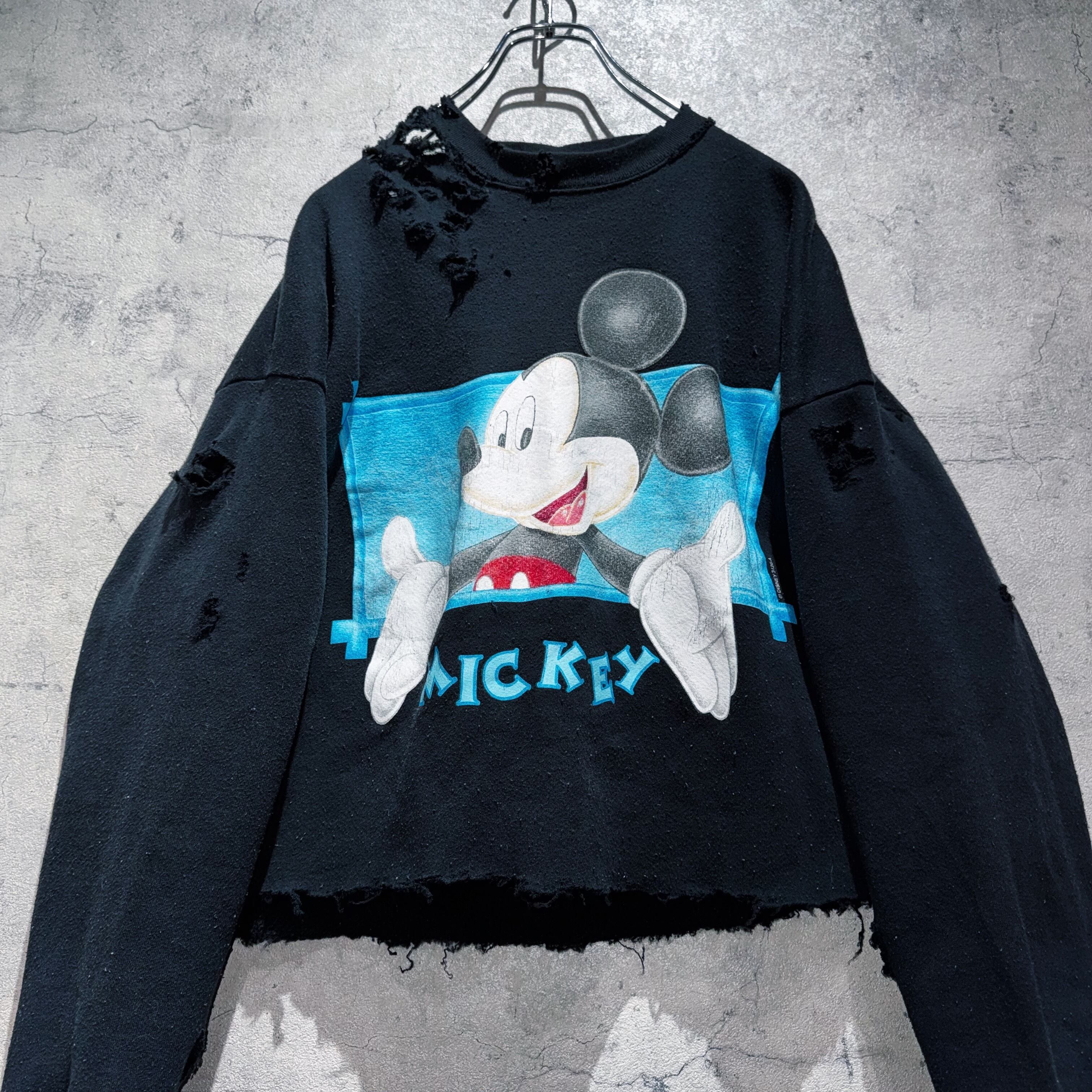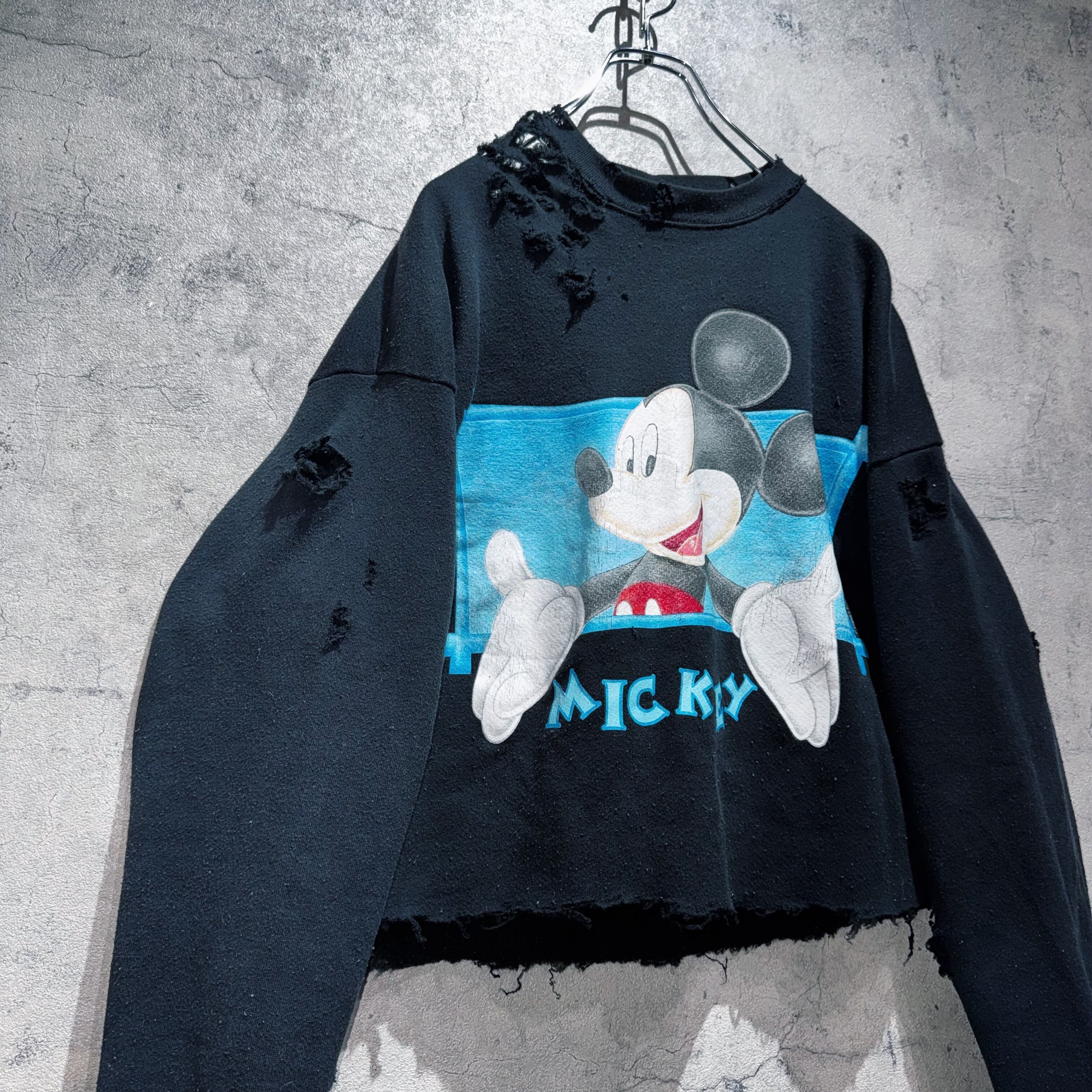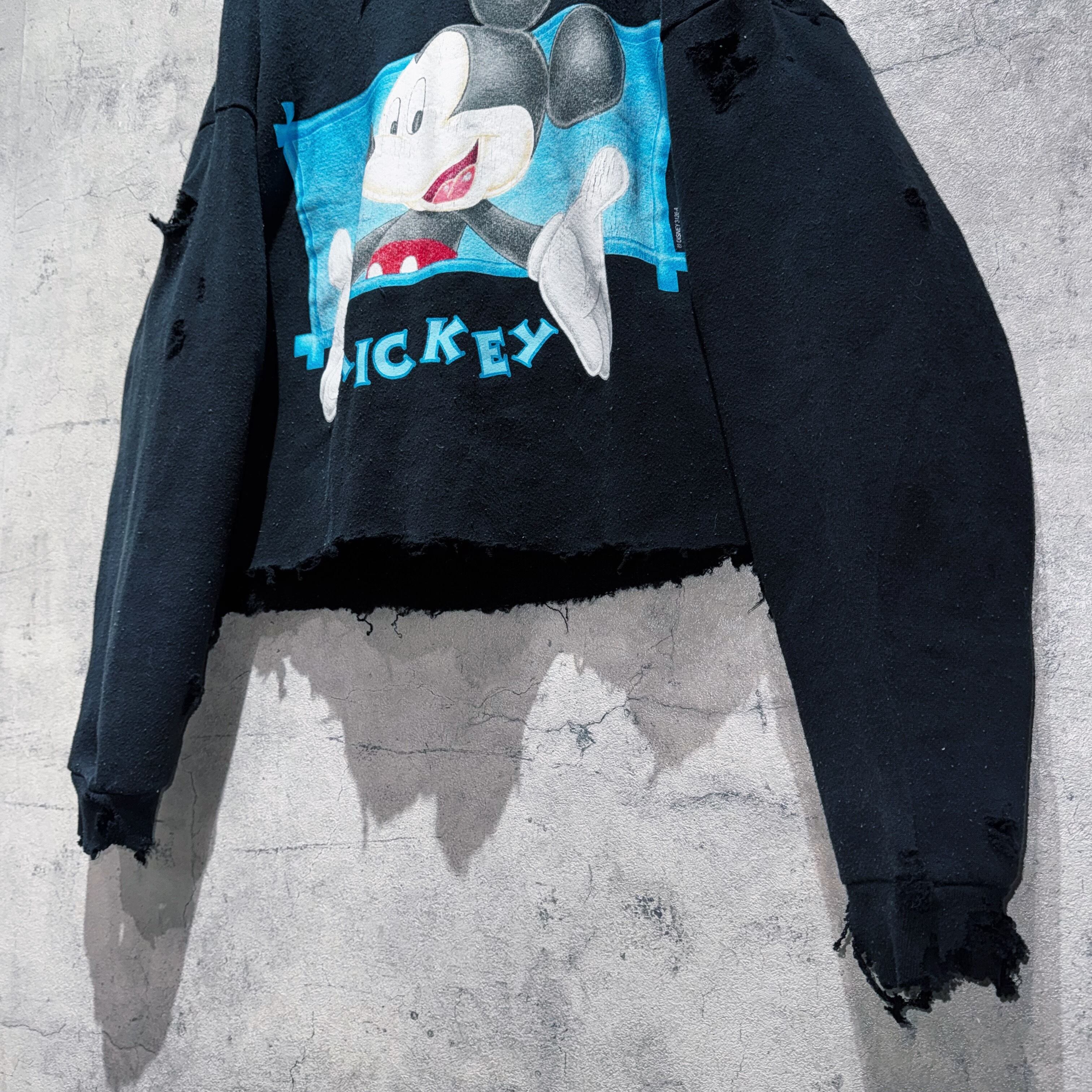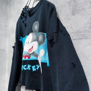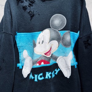 90年代頃にアンリミテッドというラインから販売されていたミッキーグラフィックデザインのプルオーバースウェットを大胆にボロカスタム。