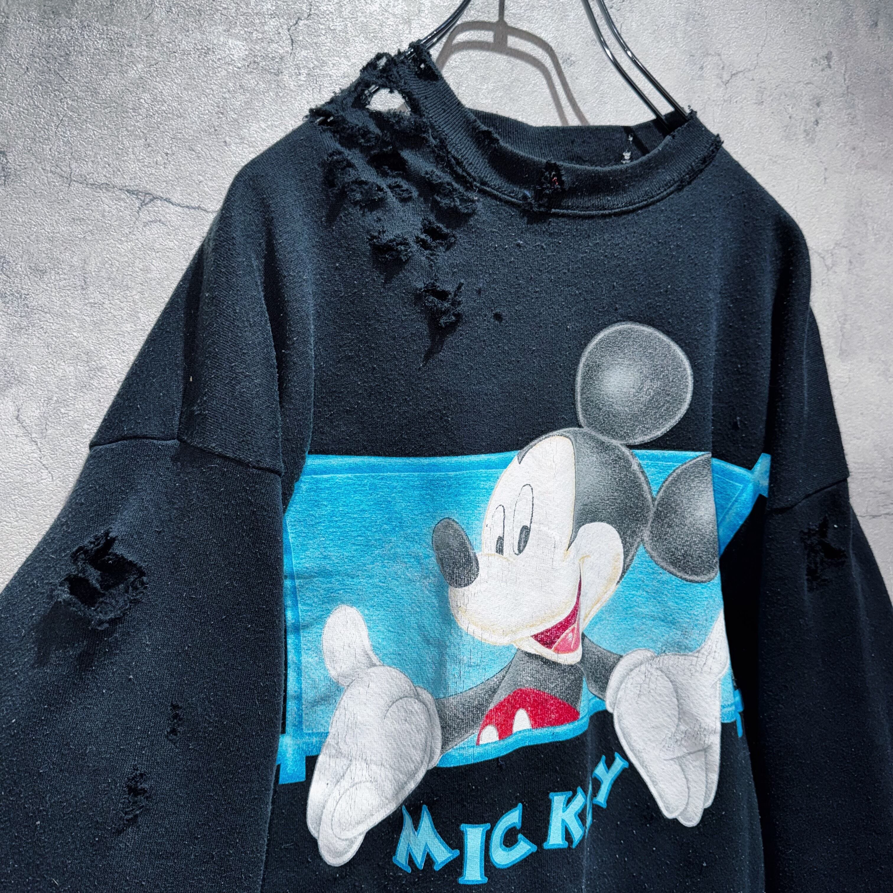 90年代"ディズニー"ミッキーマウスグラフィックデザインボロカスタムスウェット