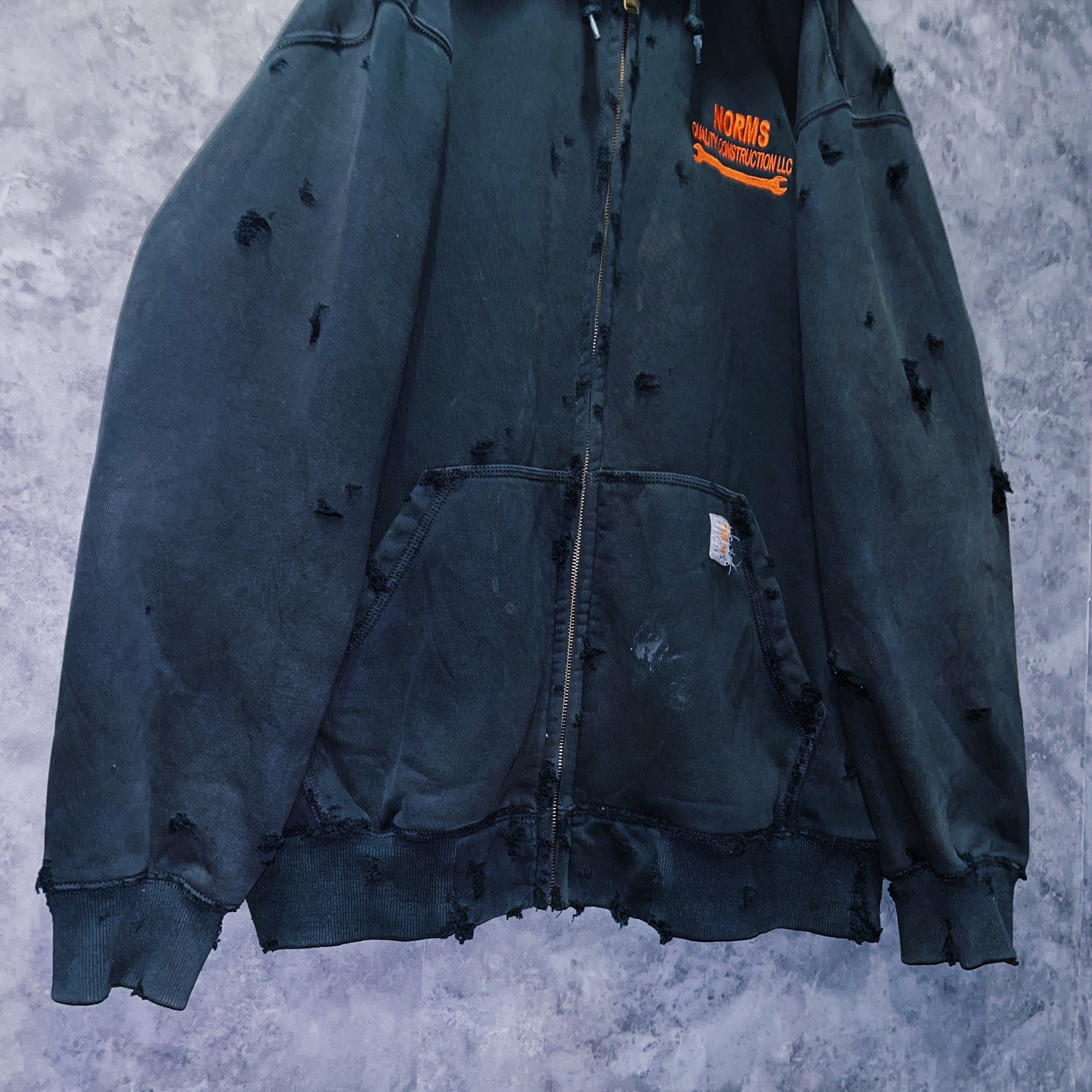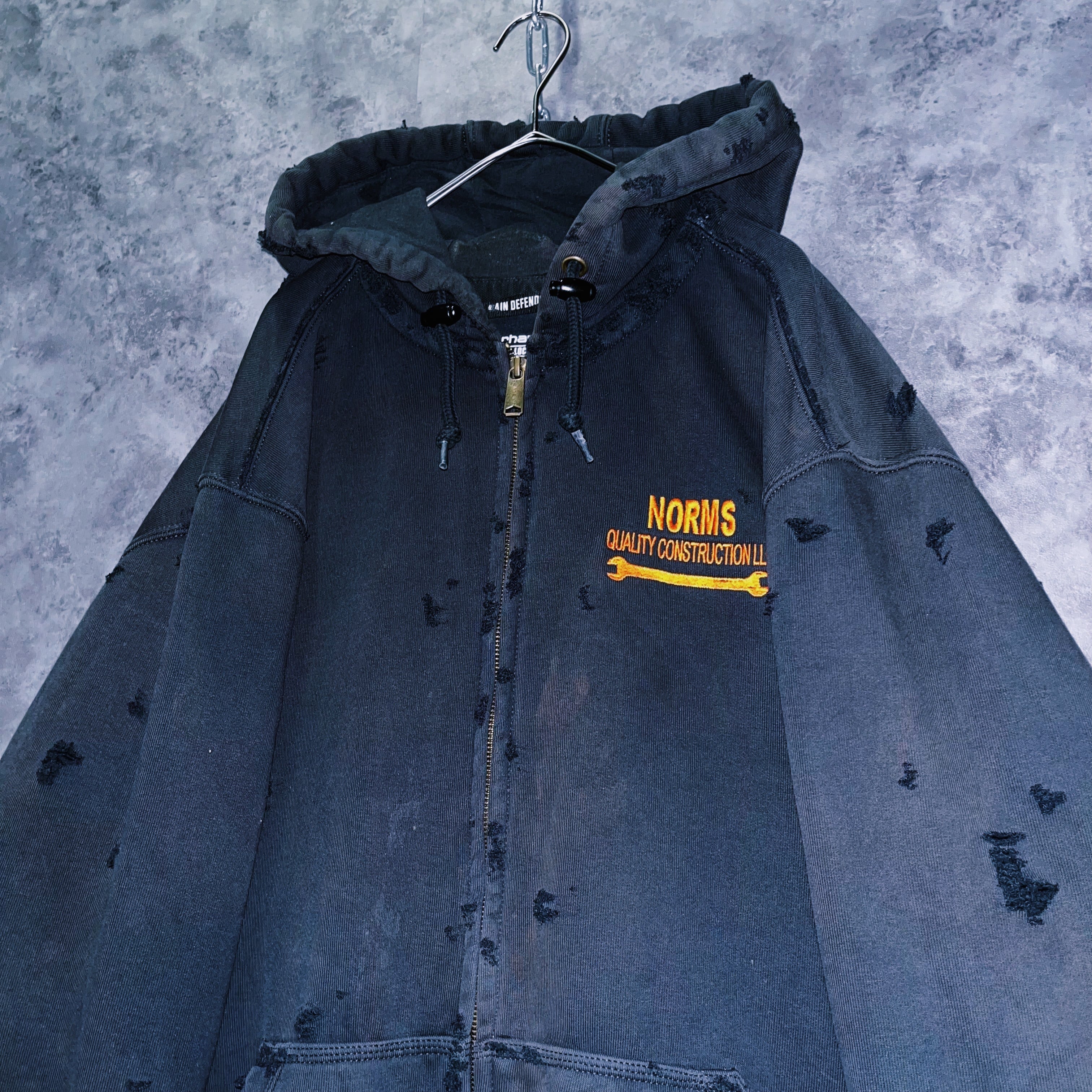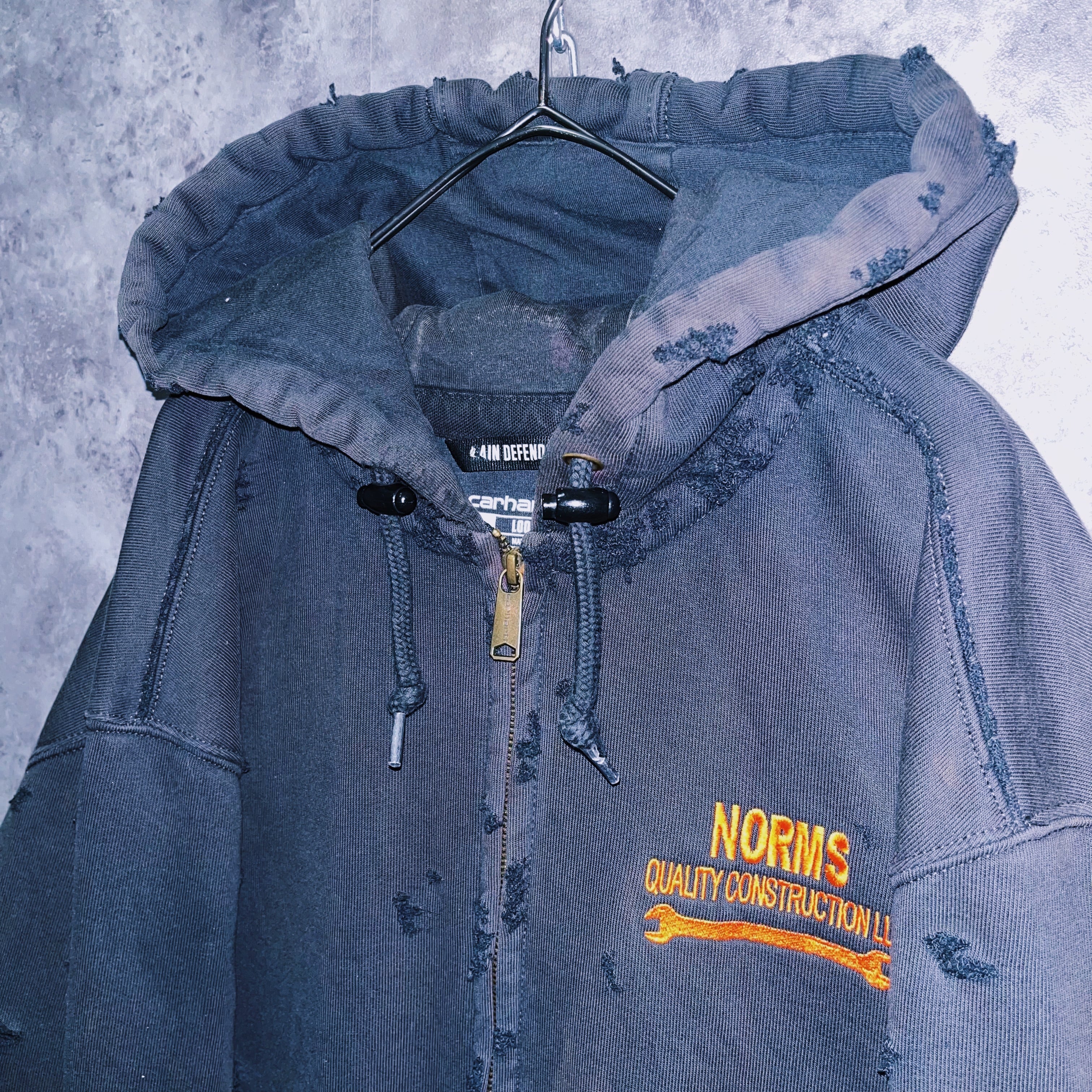 【doppio】vintage “Carhartt”orange embroidery design boro custom zip up hoodie