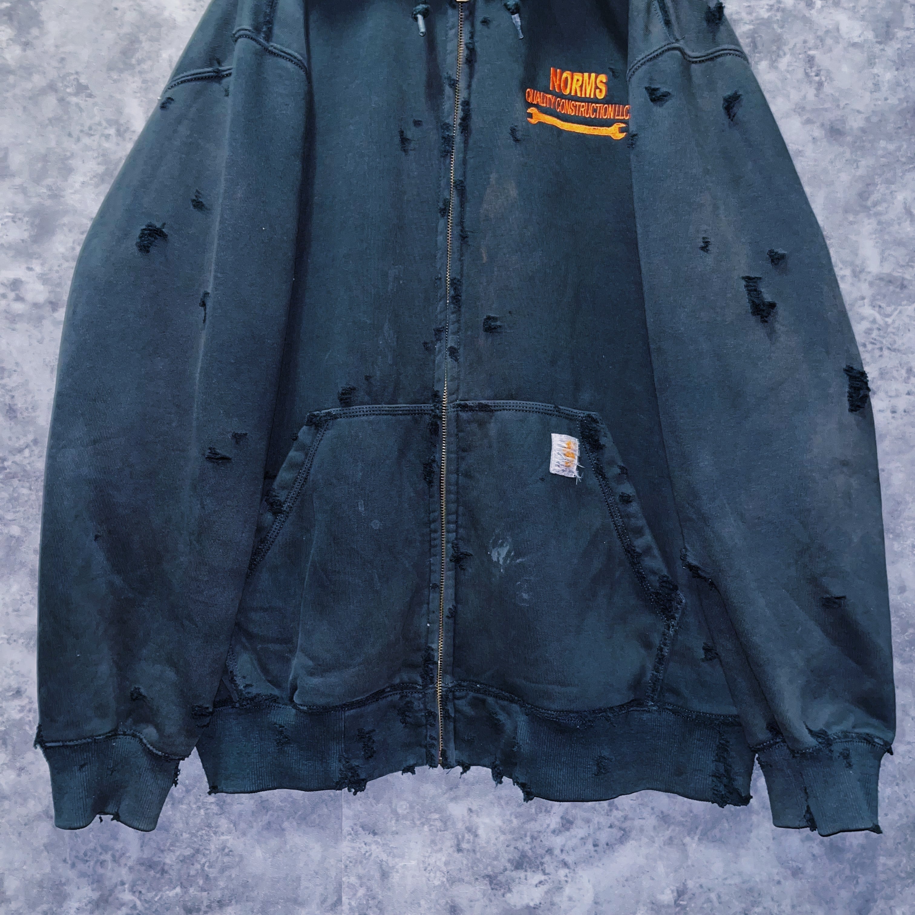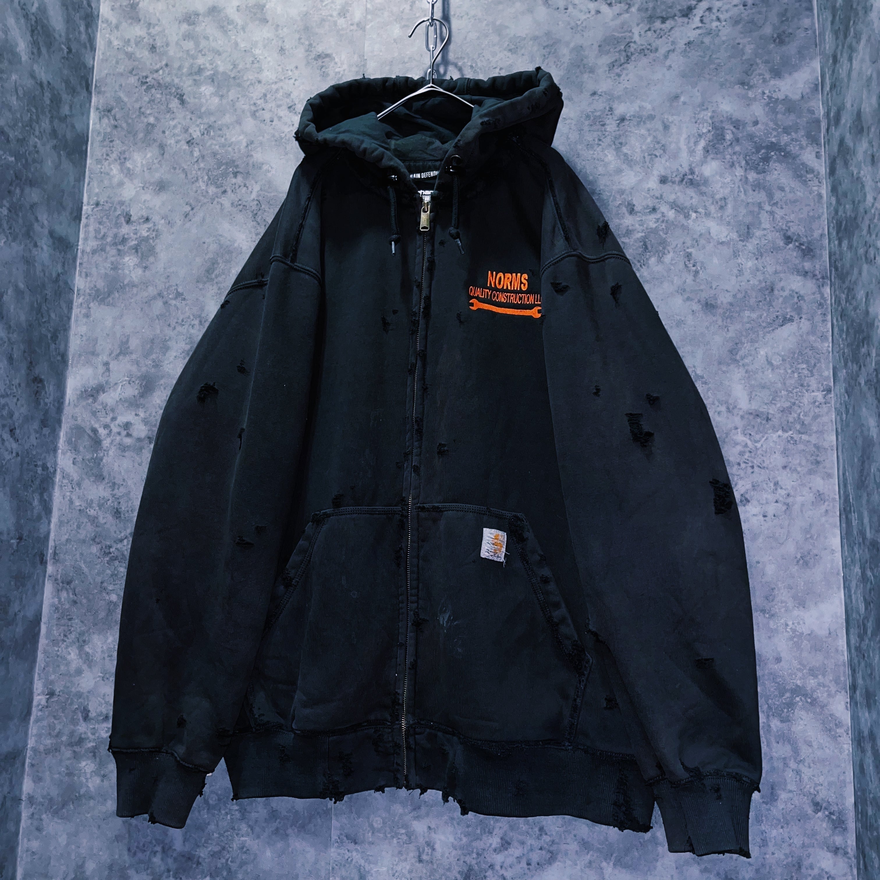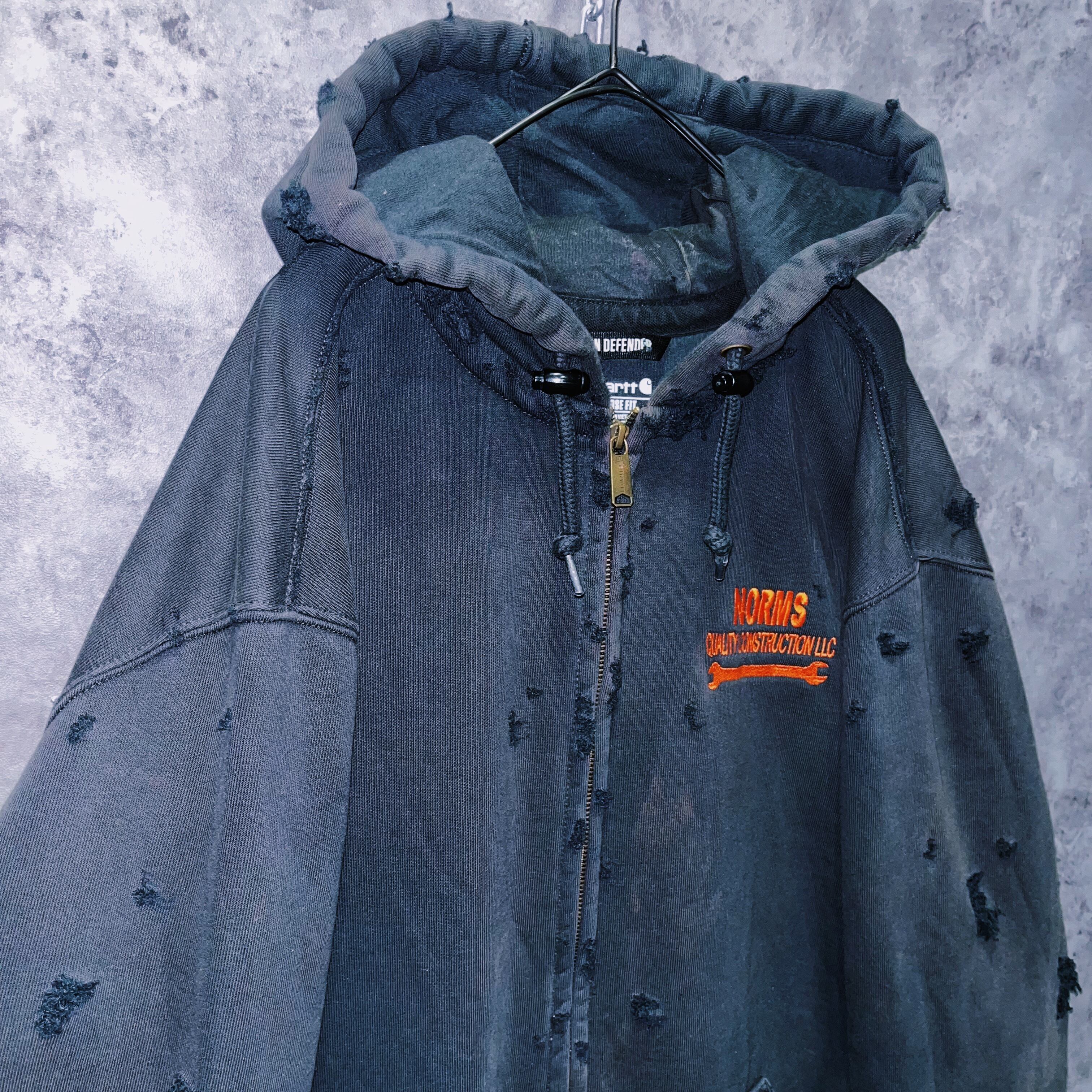 ヴィンテージ“Carhartt”オレンジエンブロイダリーデザインボロカスタムジップアップフーディ
