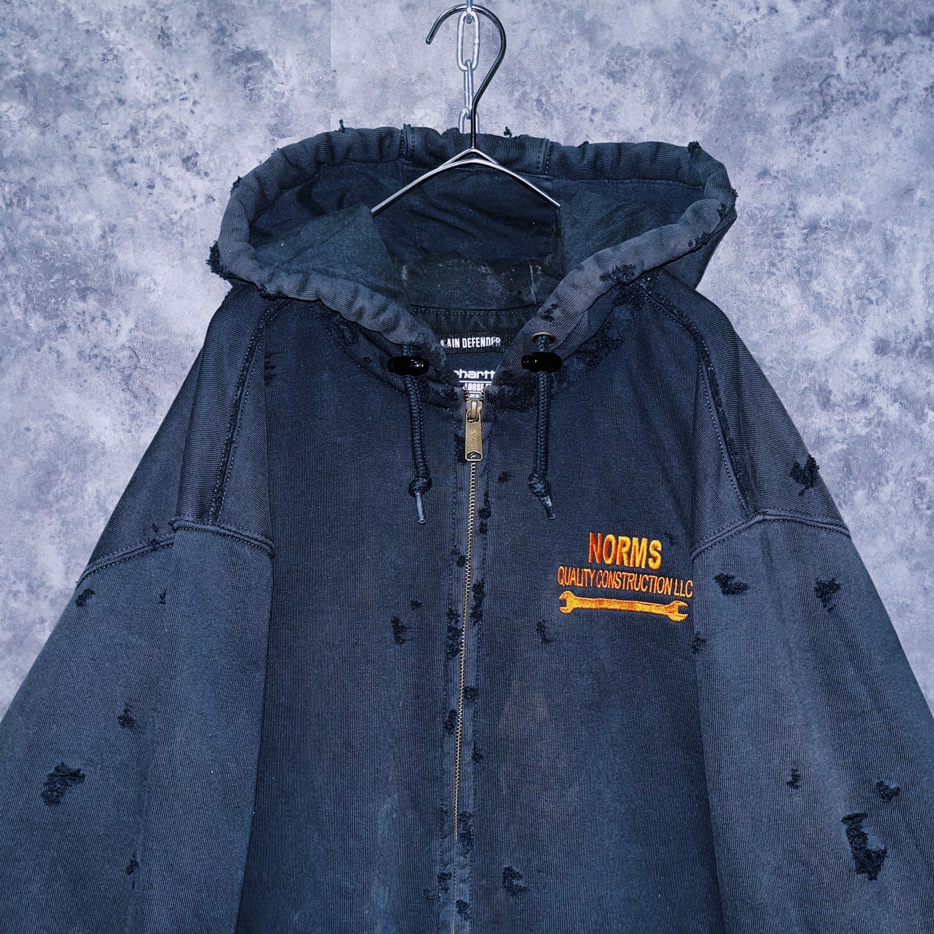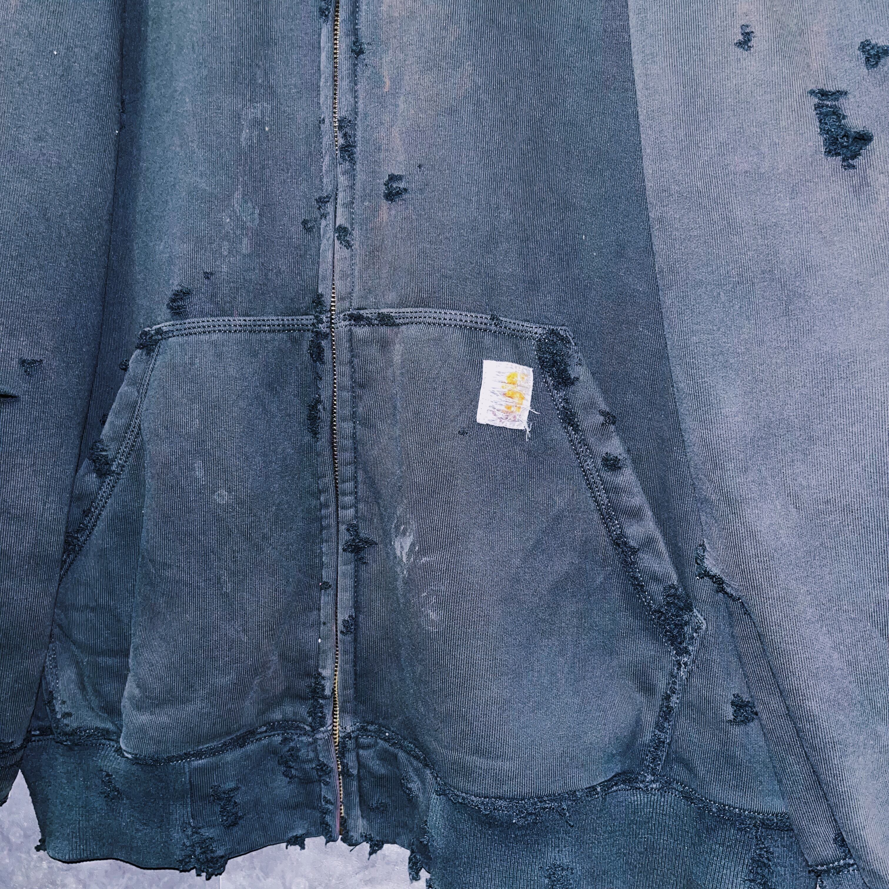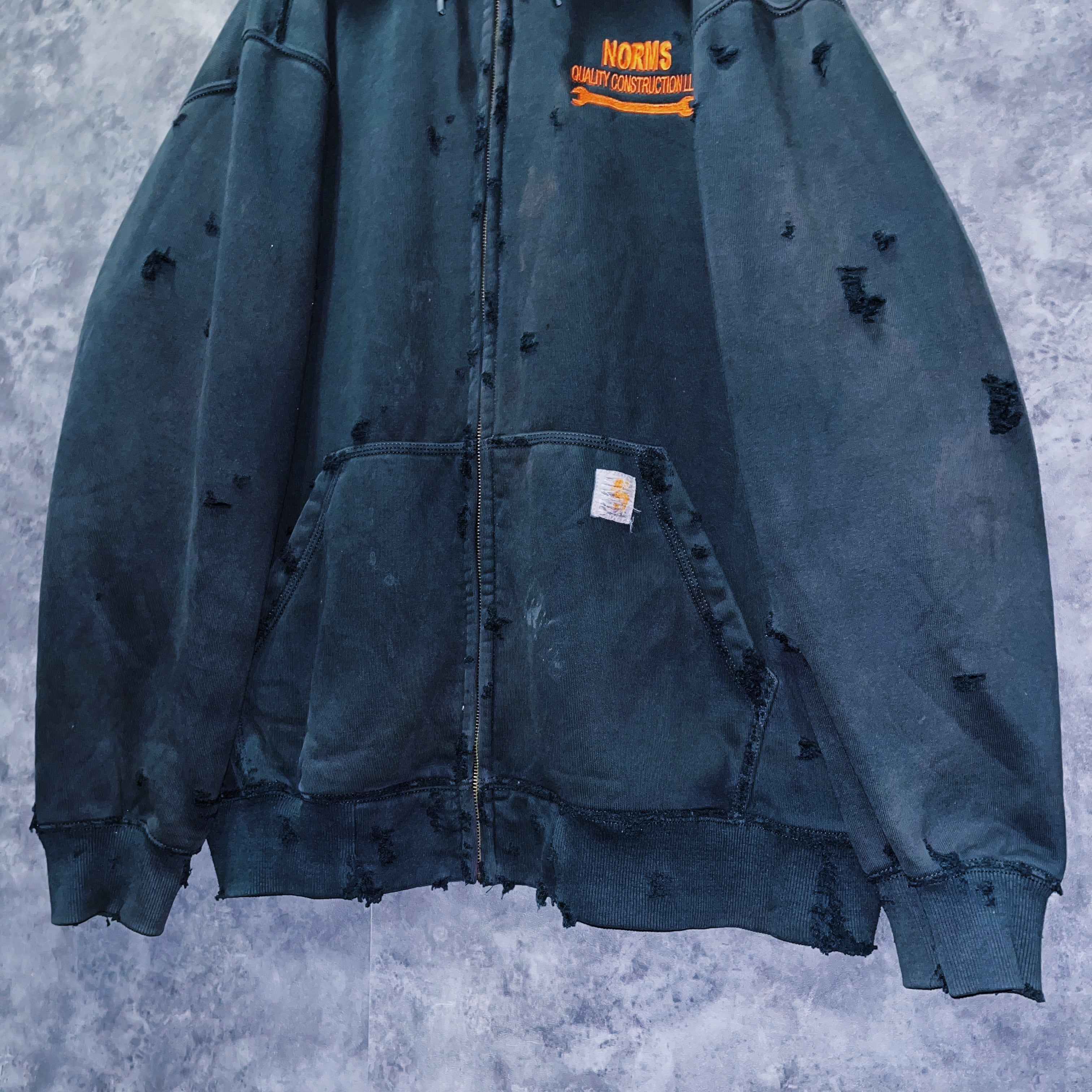 ヴィンテージ“Carhartt”オレンジエンブロイダリーデザインボロカスタムジップアップフーディ