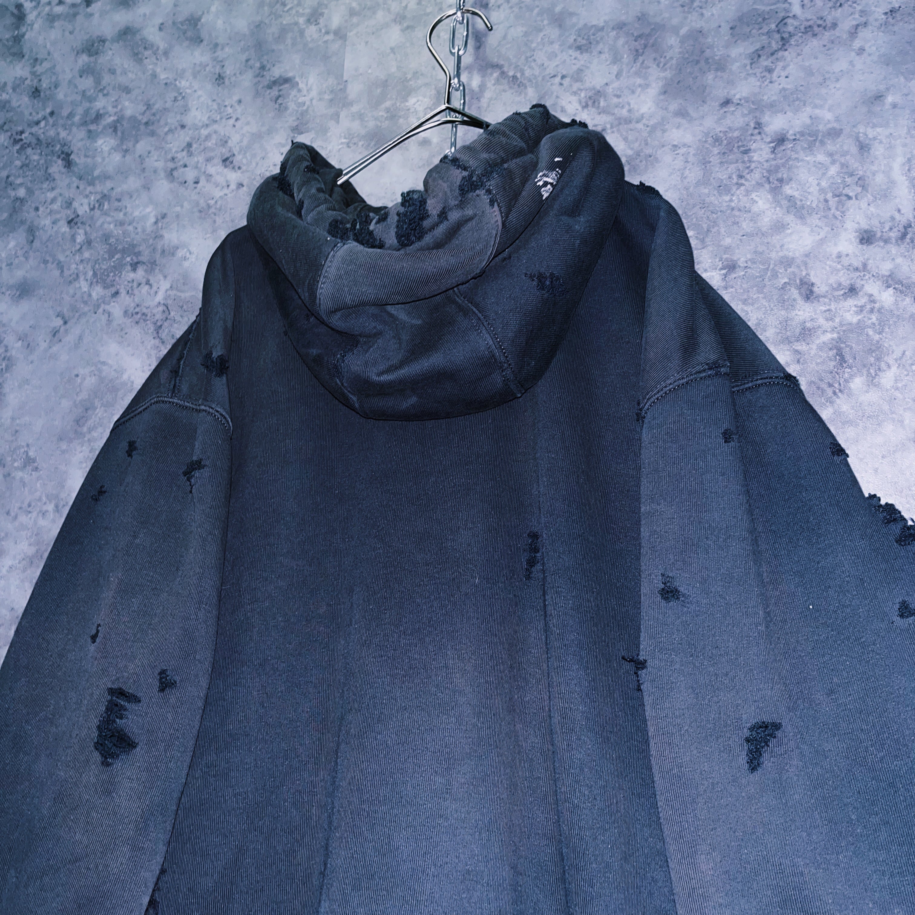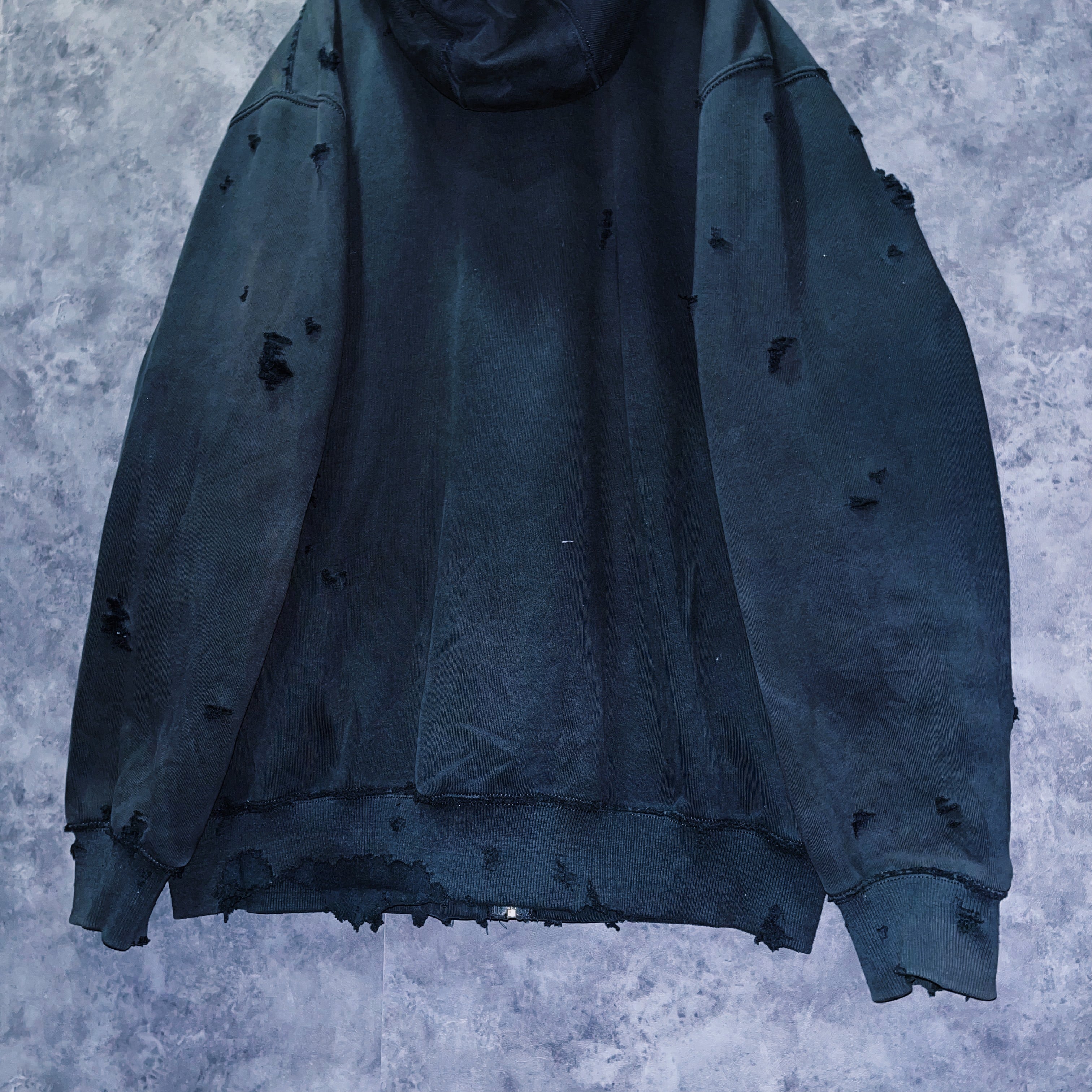 当店自慢のボロカスタムを全体に絶妙な加減で施したことで、大きなダメージまでは出さず長年の経年劣化のような質感を味わえる様デザインされたナチュラルボロな仕様に。