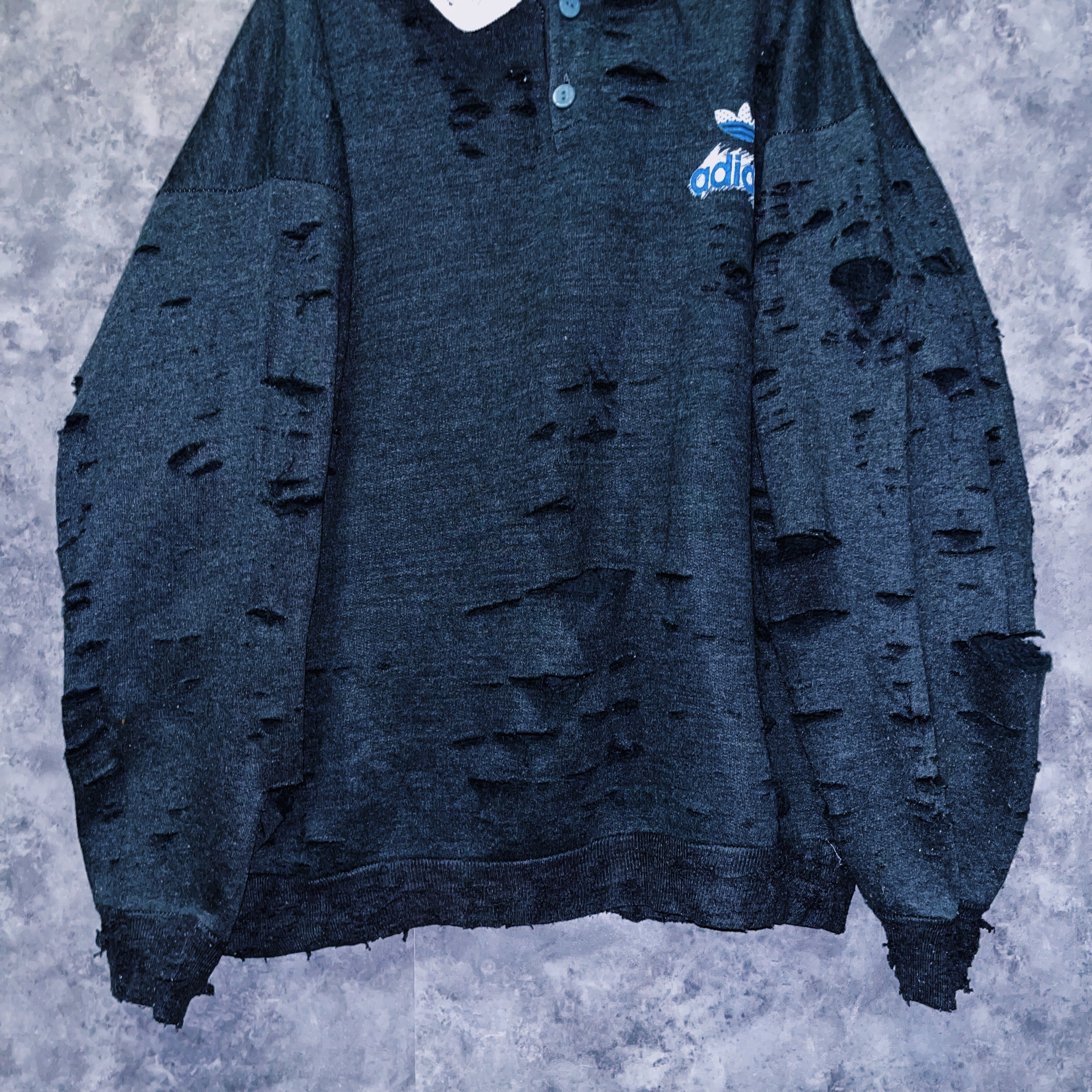 90’s vintage “adidas” trefoil logo design boro custom polo shirt