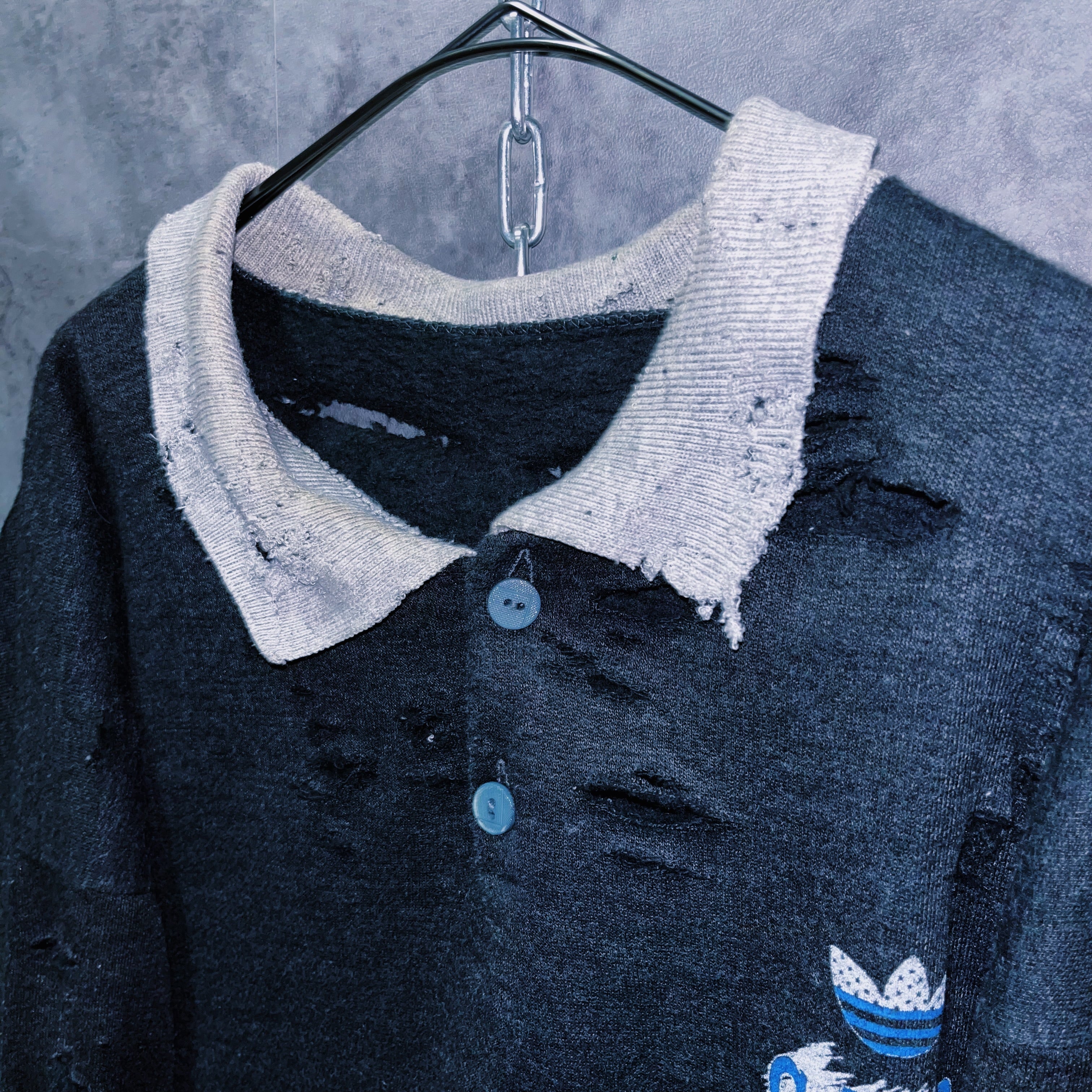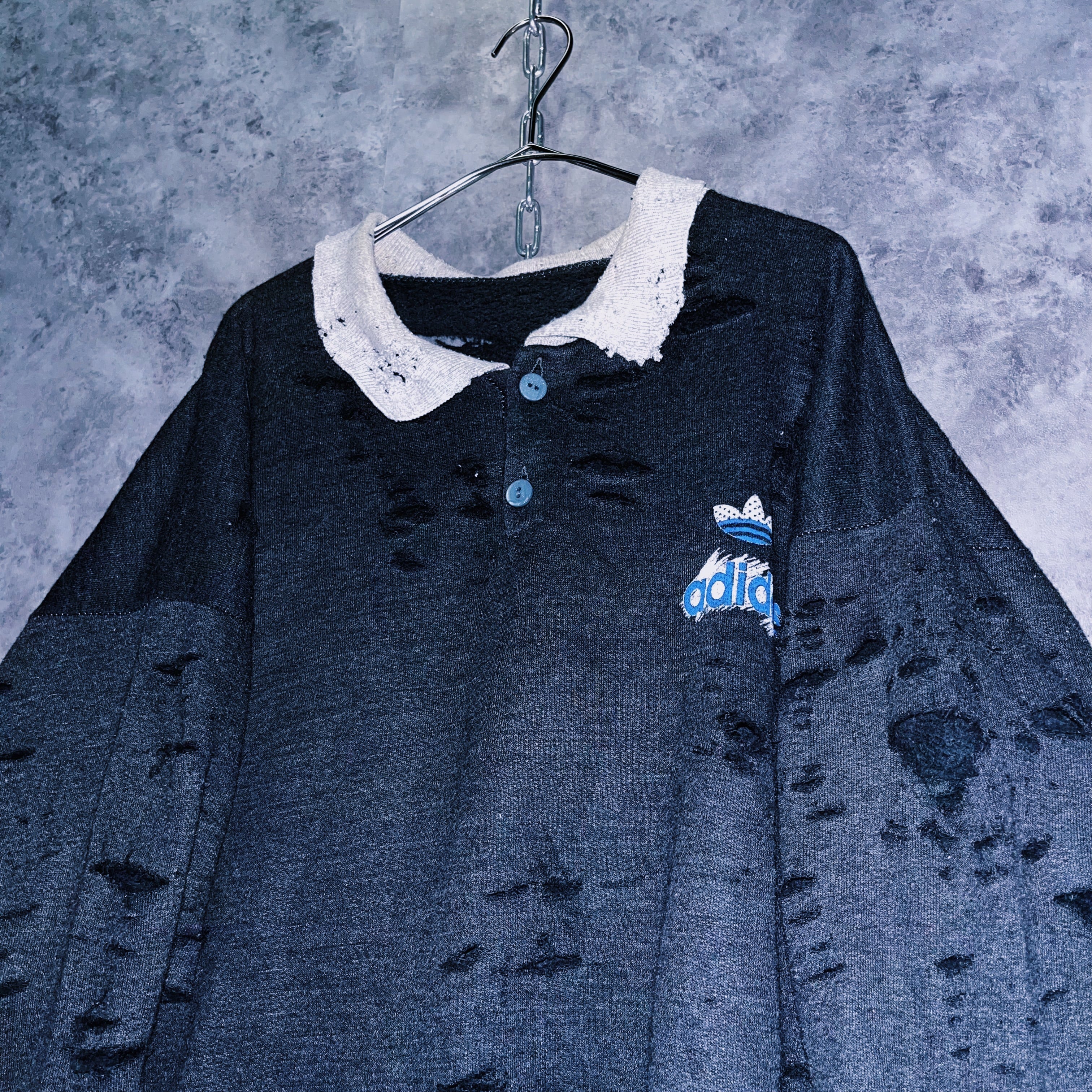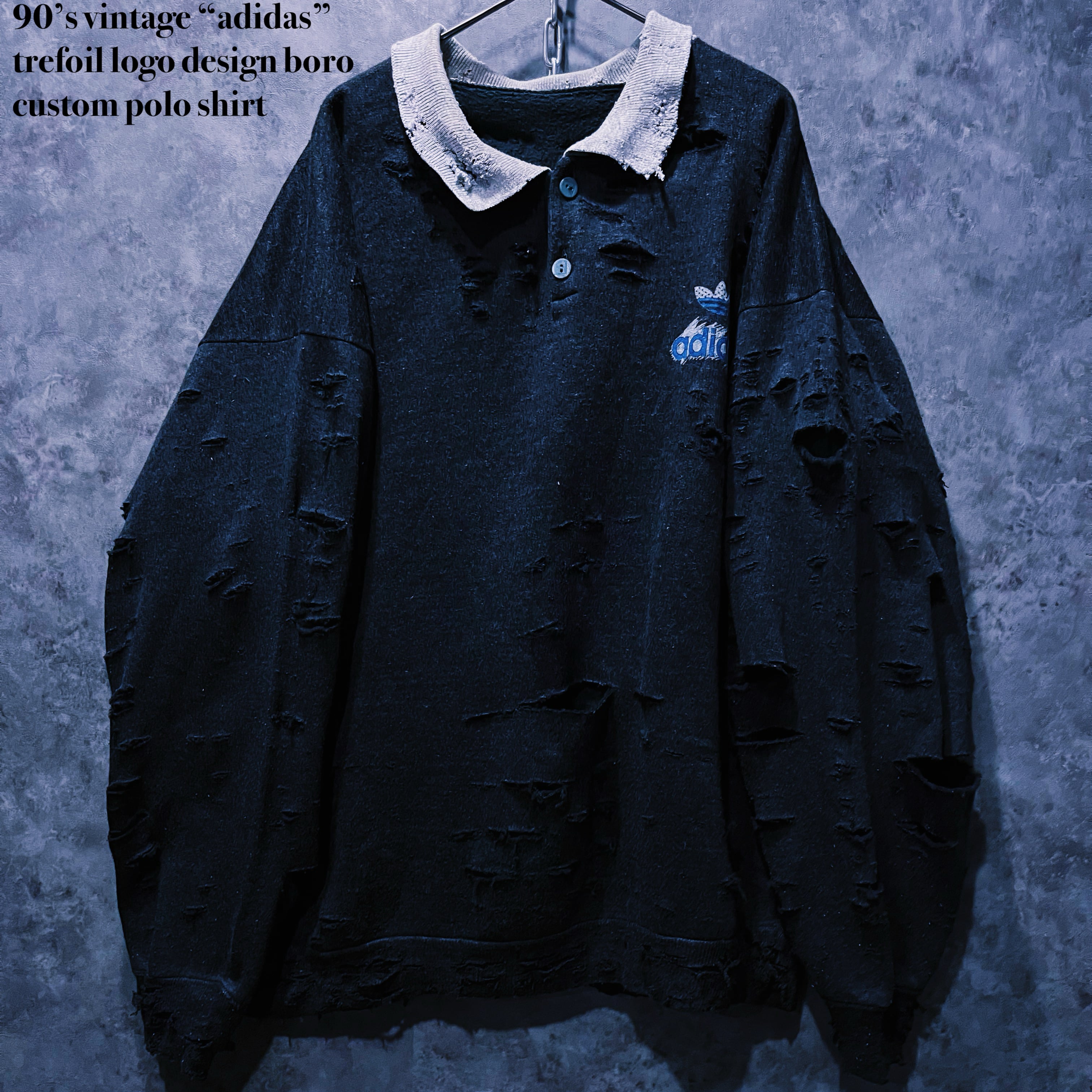 90’sヴィンテージ“adidas”トレフォイルロゴデザインボロカスタムポロシャツ