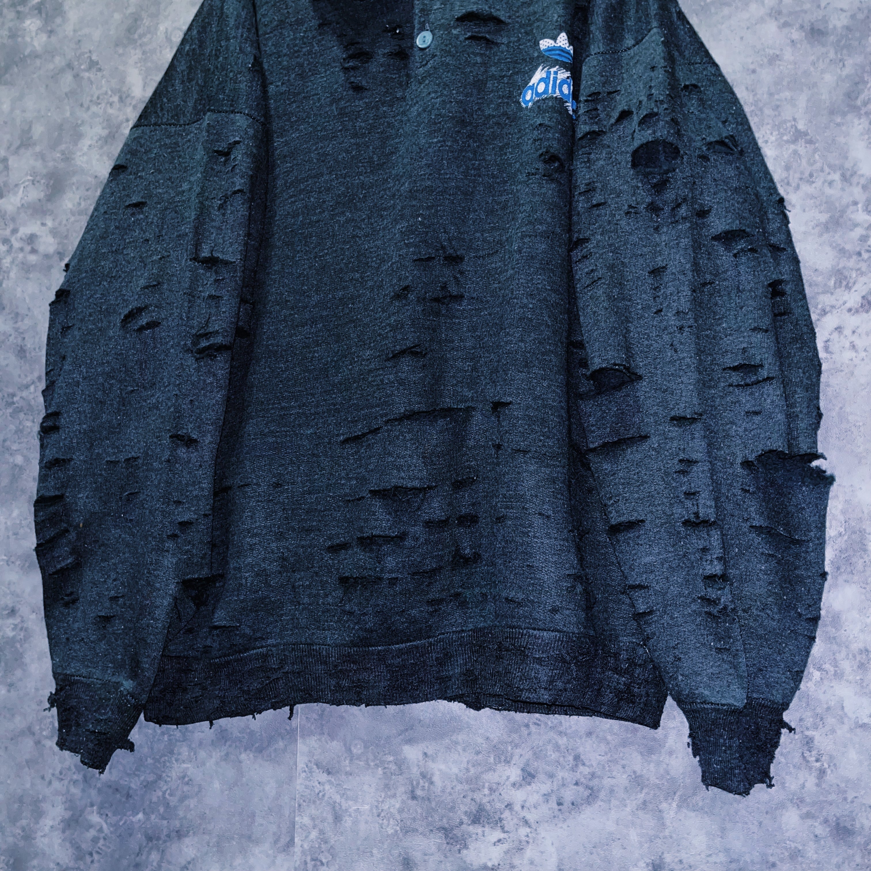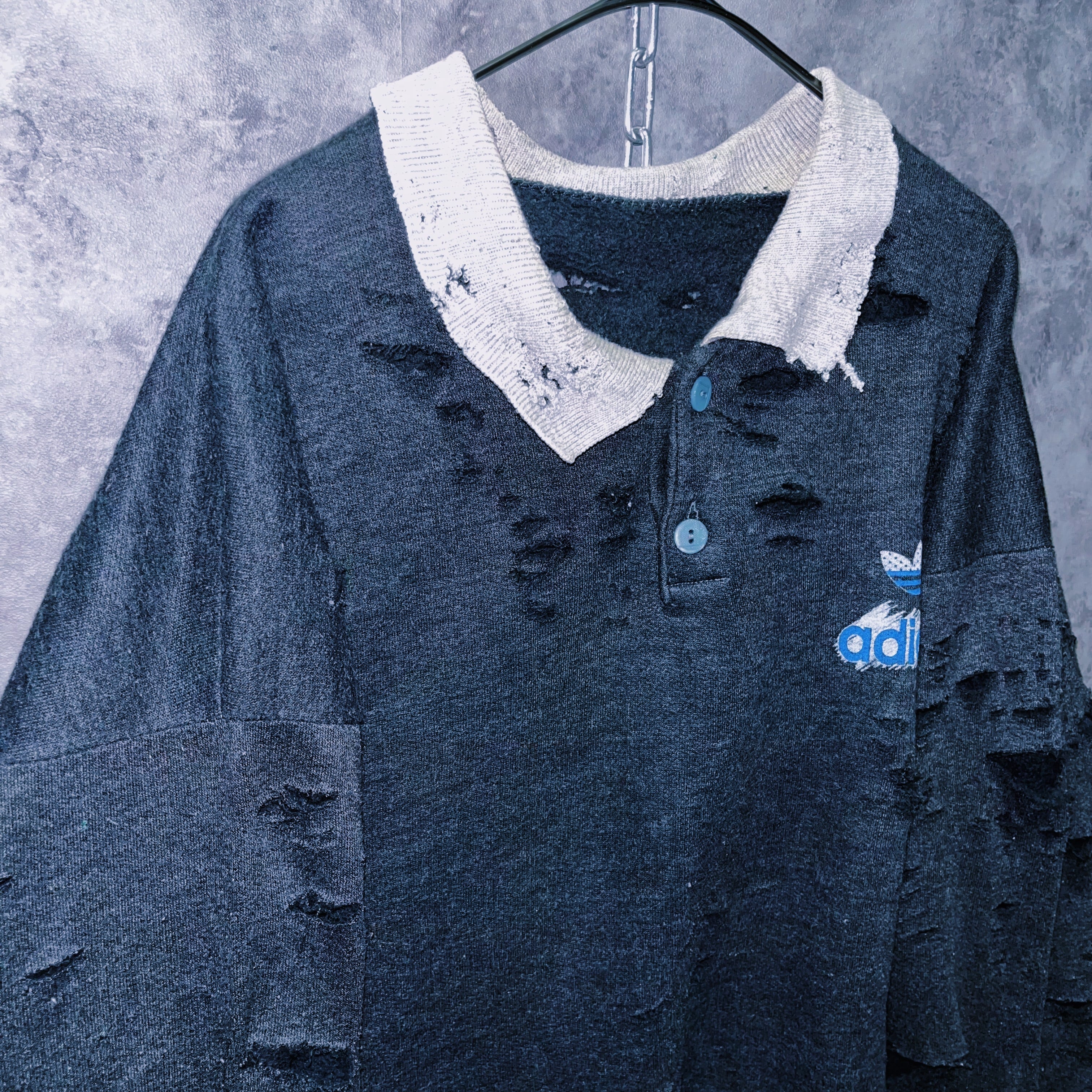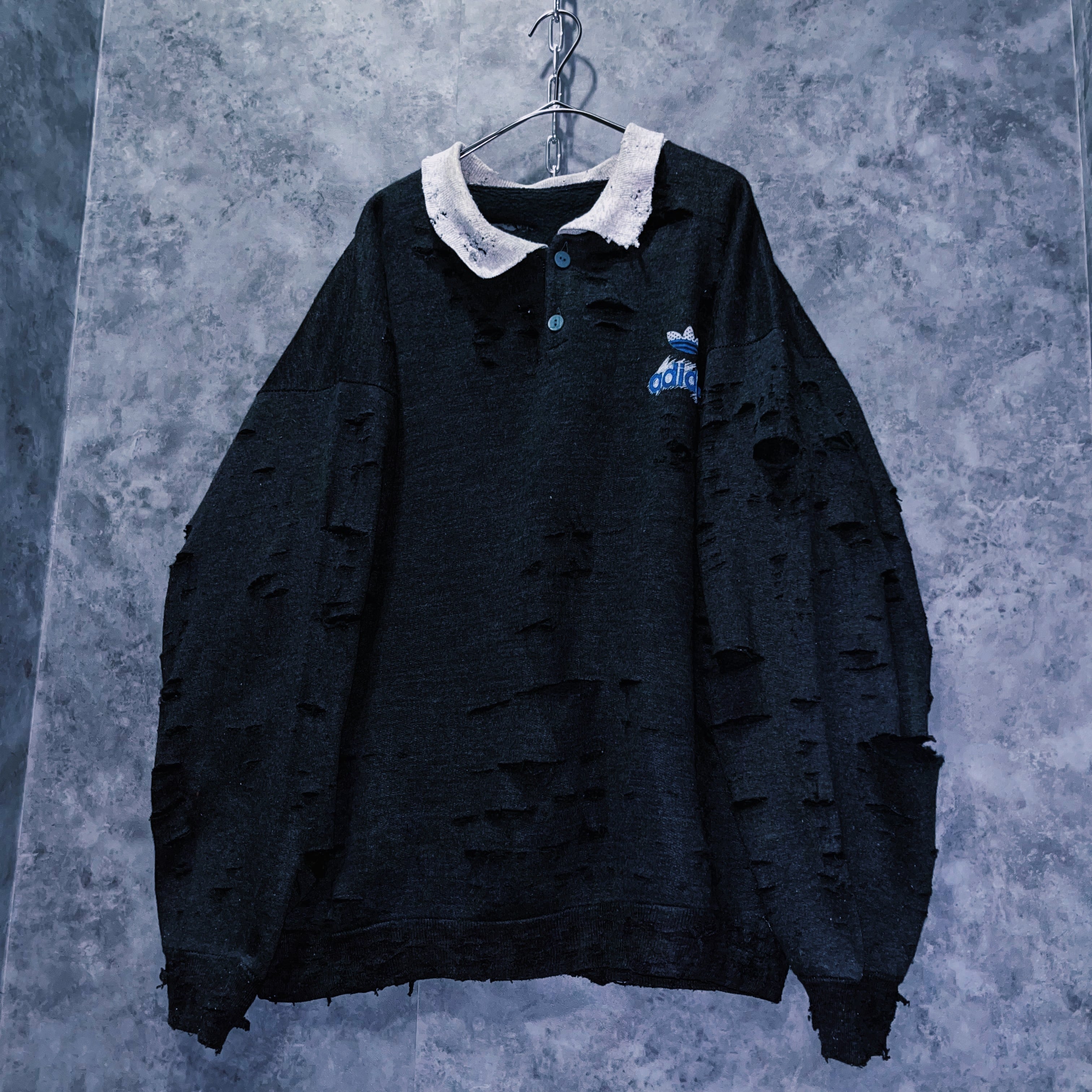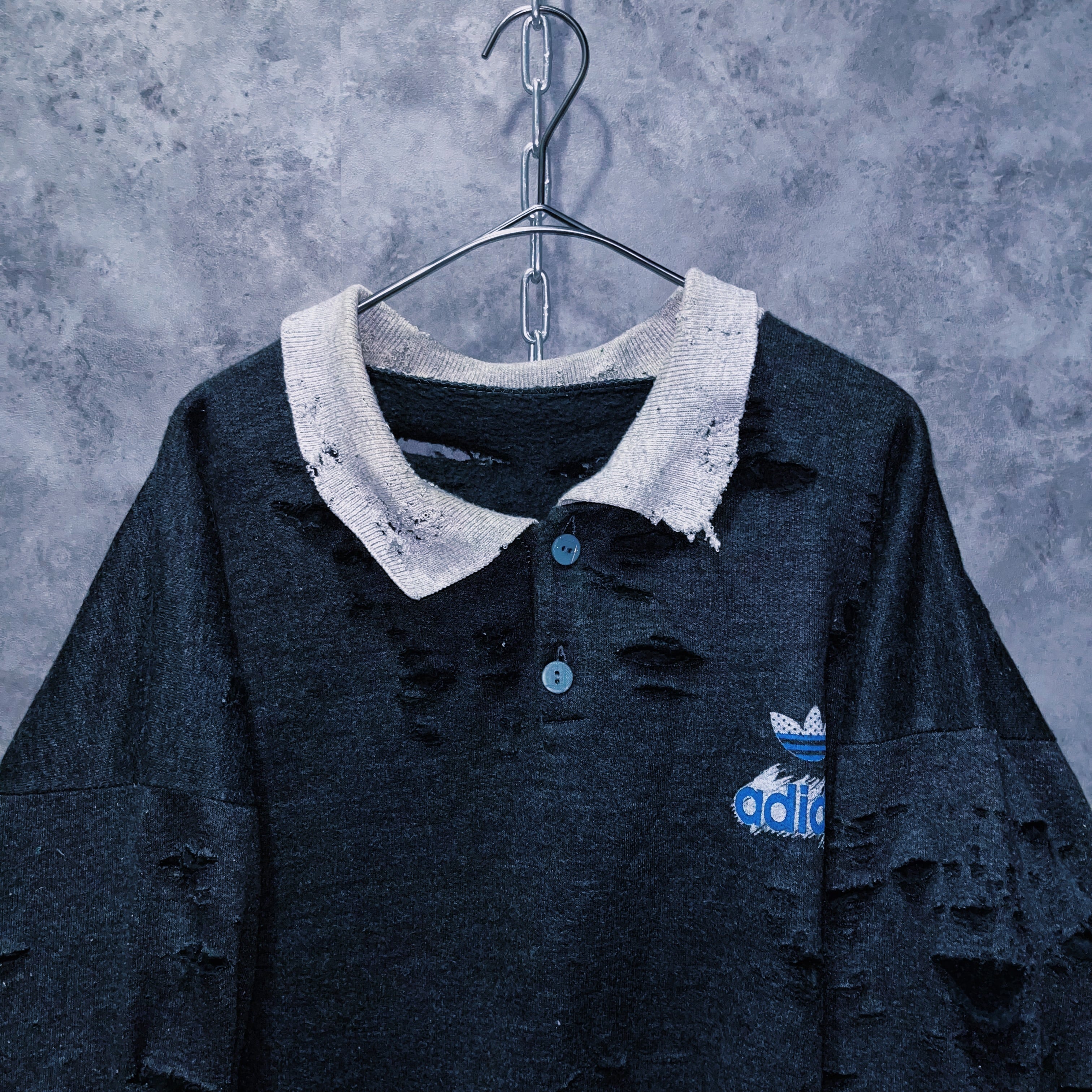 90’sヴィンテージ“adidas”トレフォイルロゴデザインボロカスタムポロシャツ