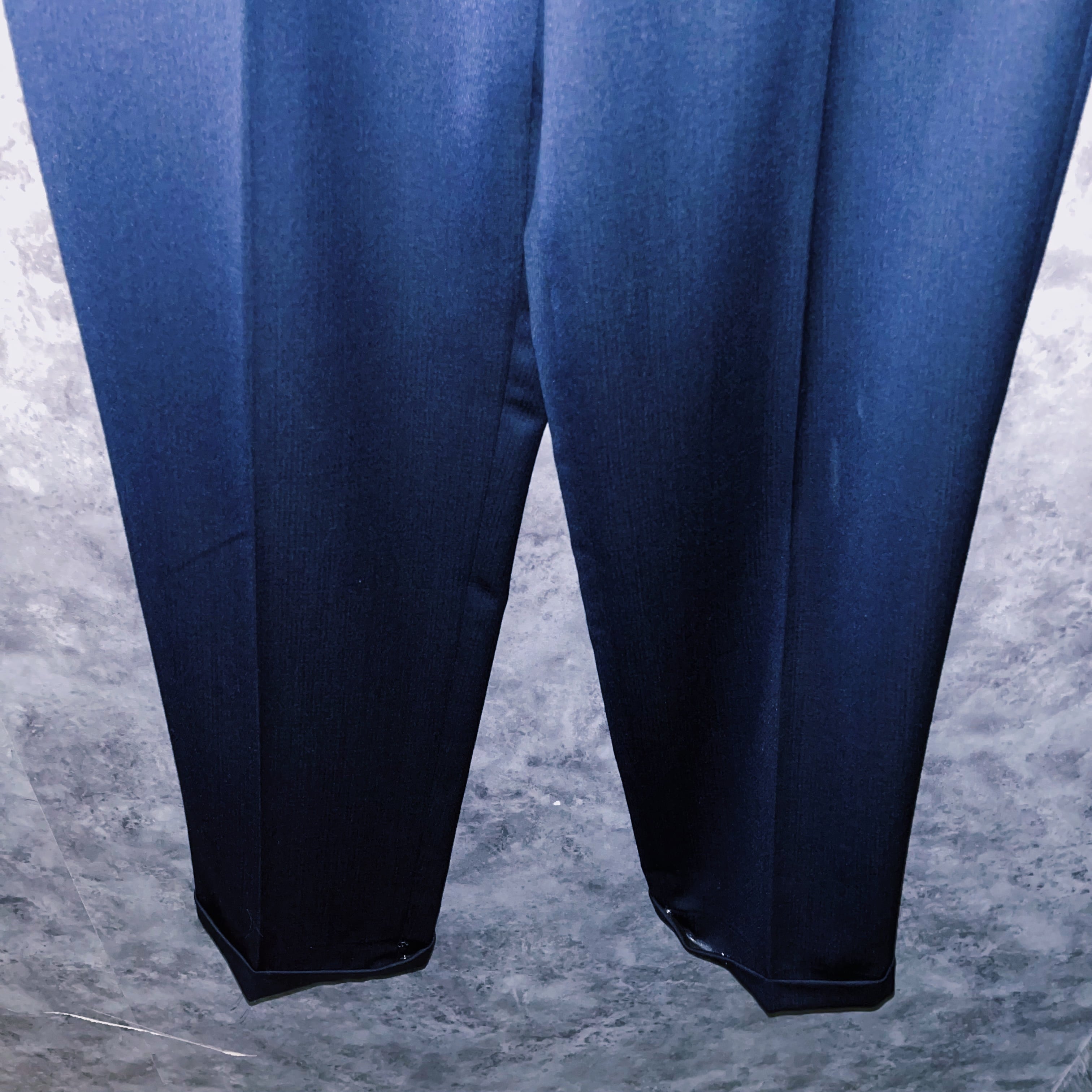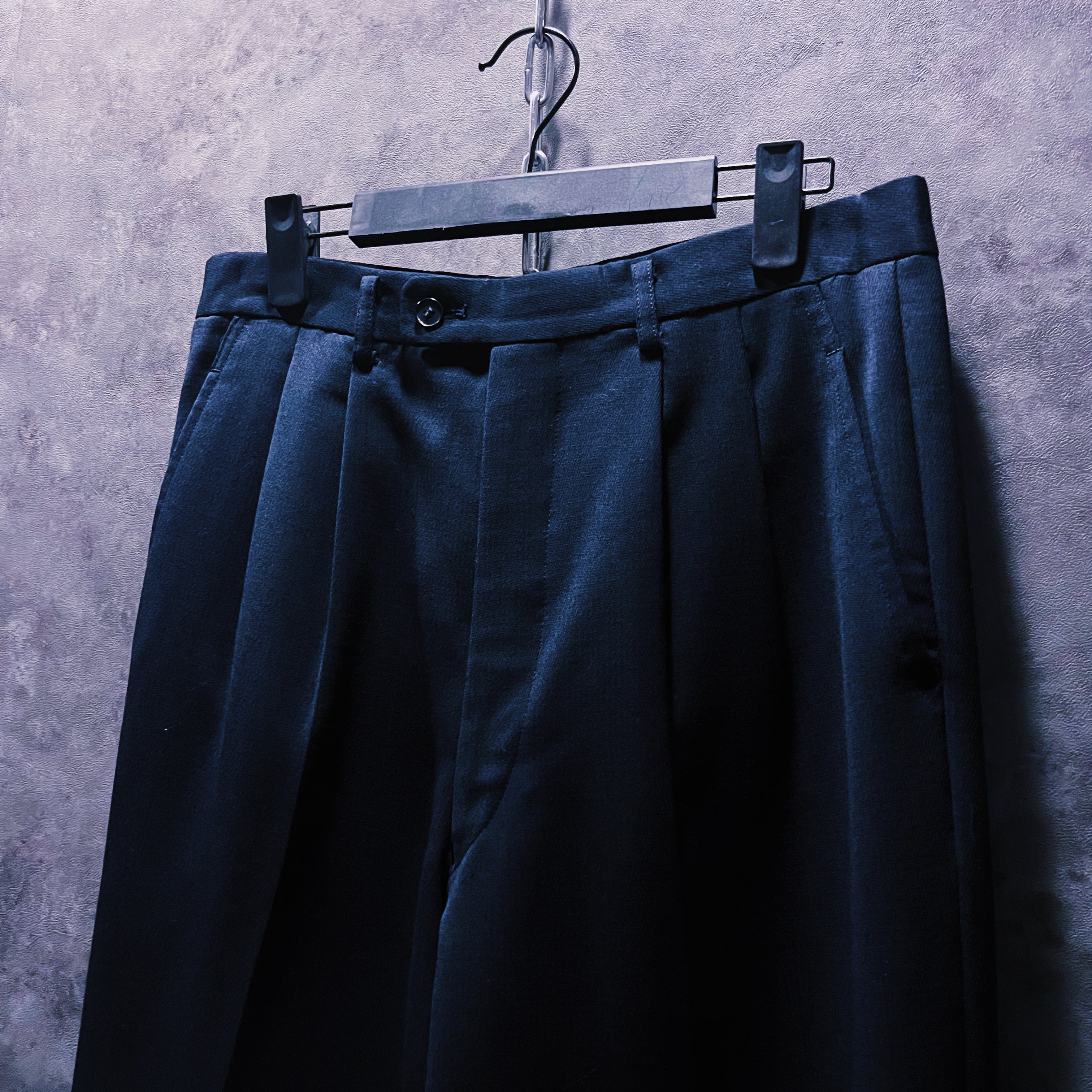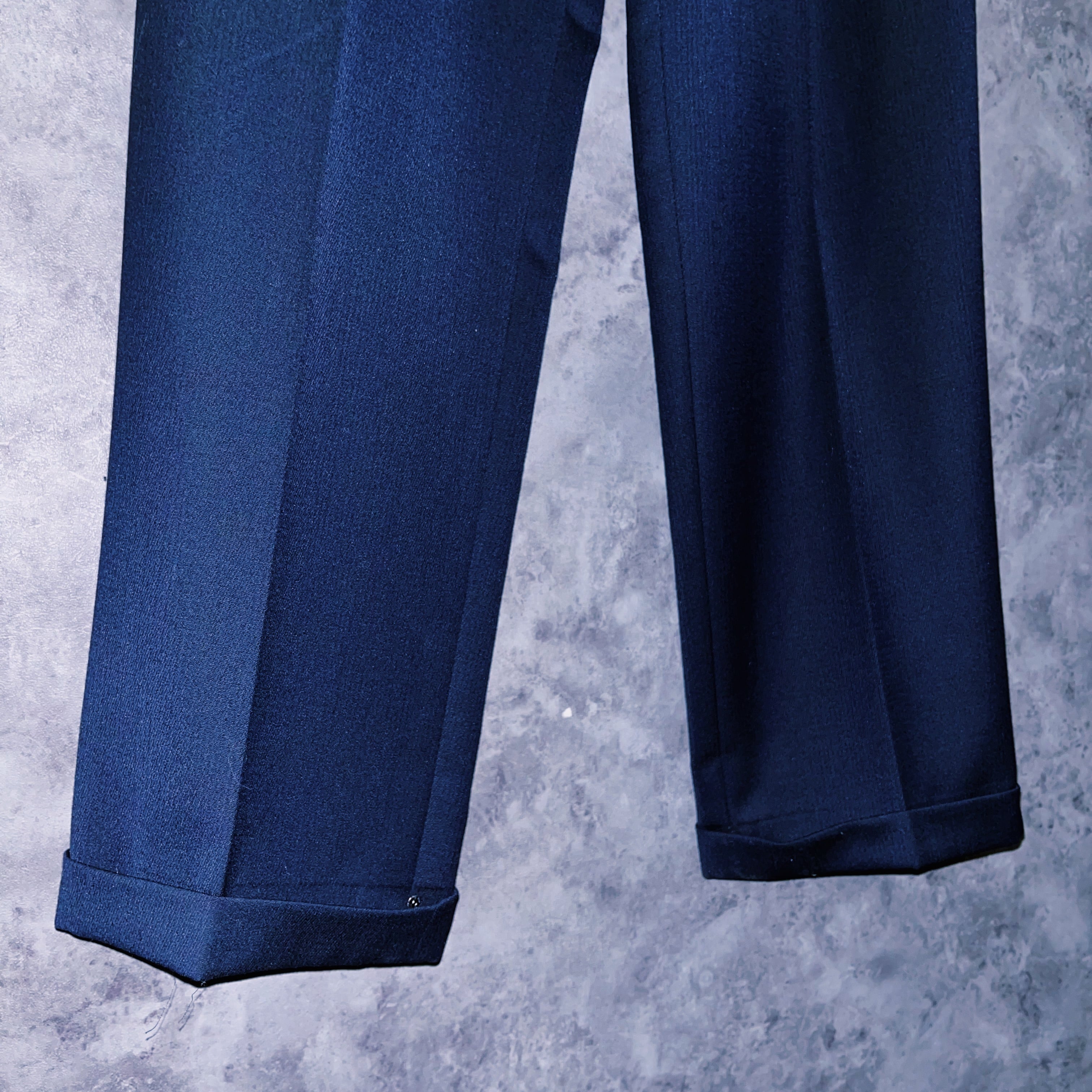 パワーショルダーに加えハードシェイプ、プレスのかかった綺麗なパンツ。すべてが組み合わさった時の完成度は思わず見惚れるほどの形。