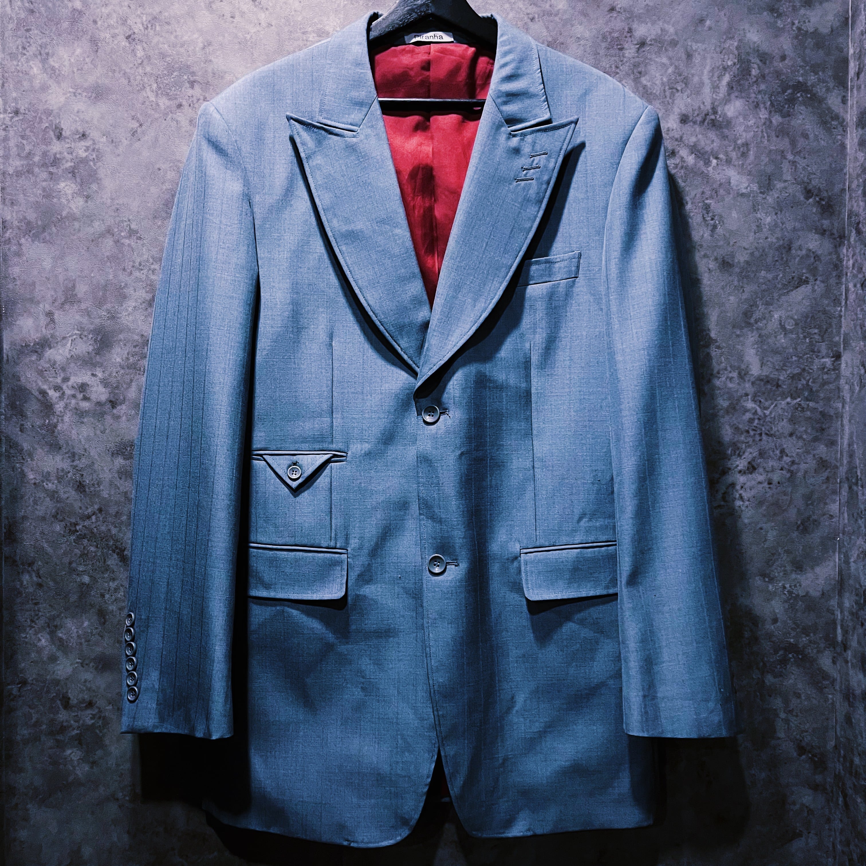 【doppio】90’s vintage fog blue color two botão single breasted set up