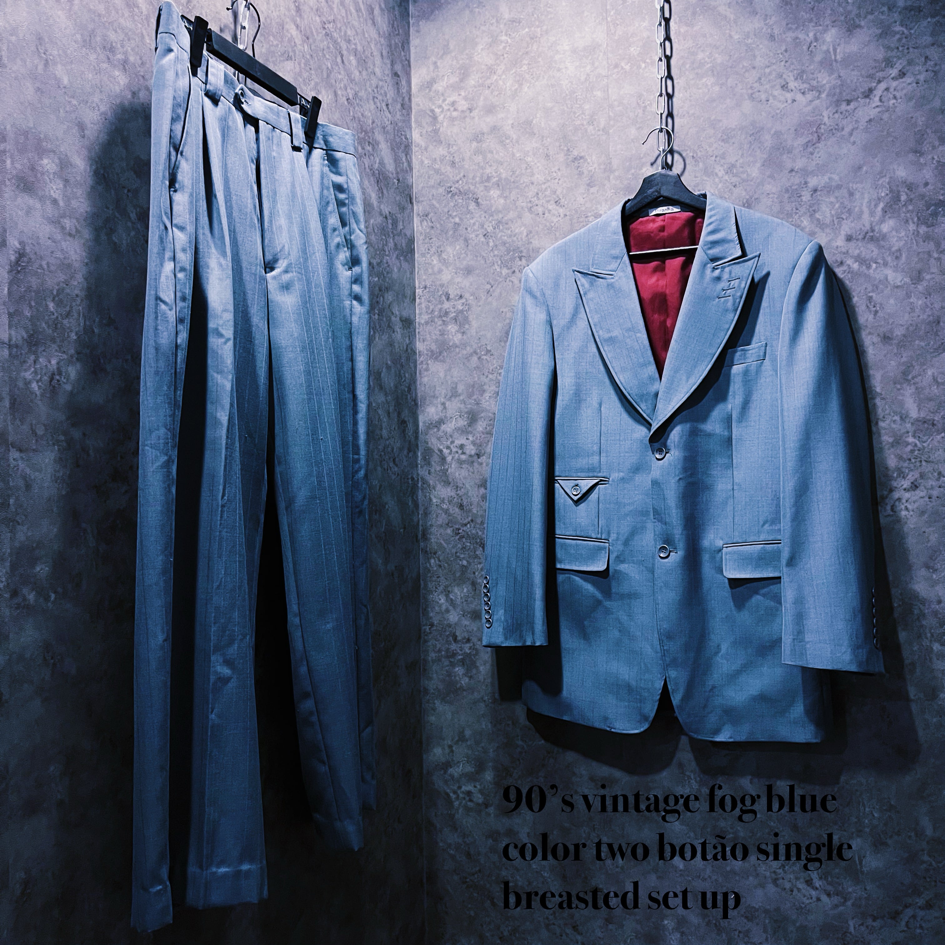 90’sヴィンテージフォグブルーカラーツーボタンシングルブレストセットアップ