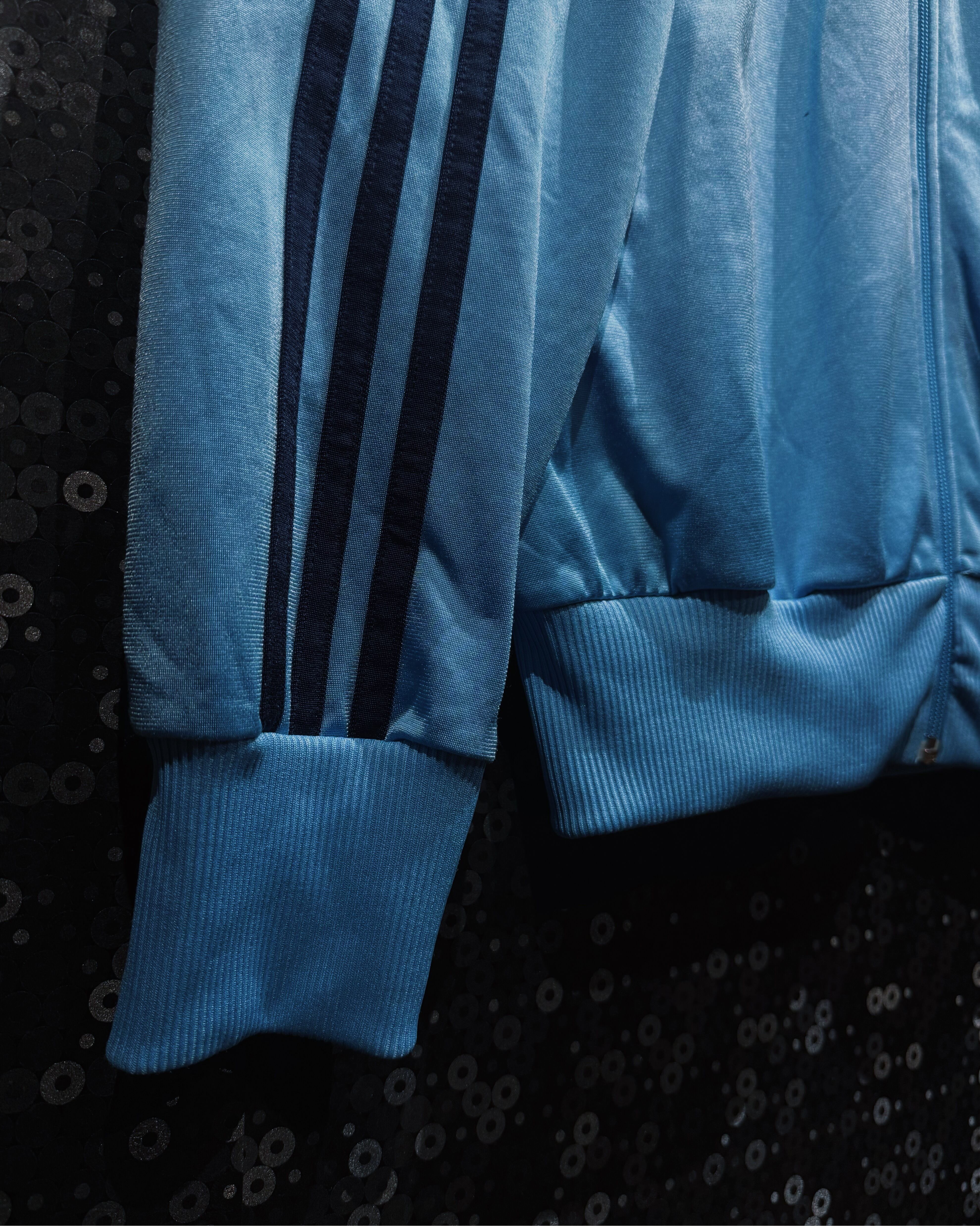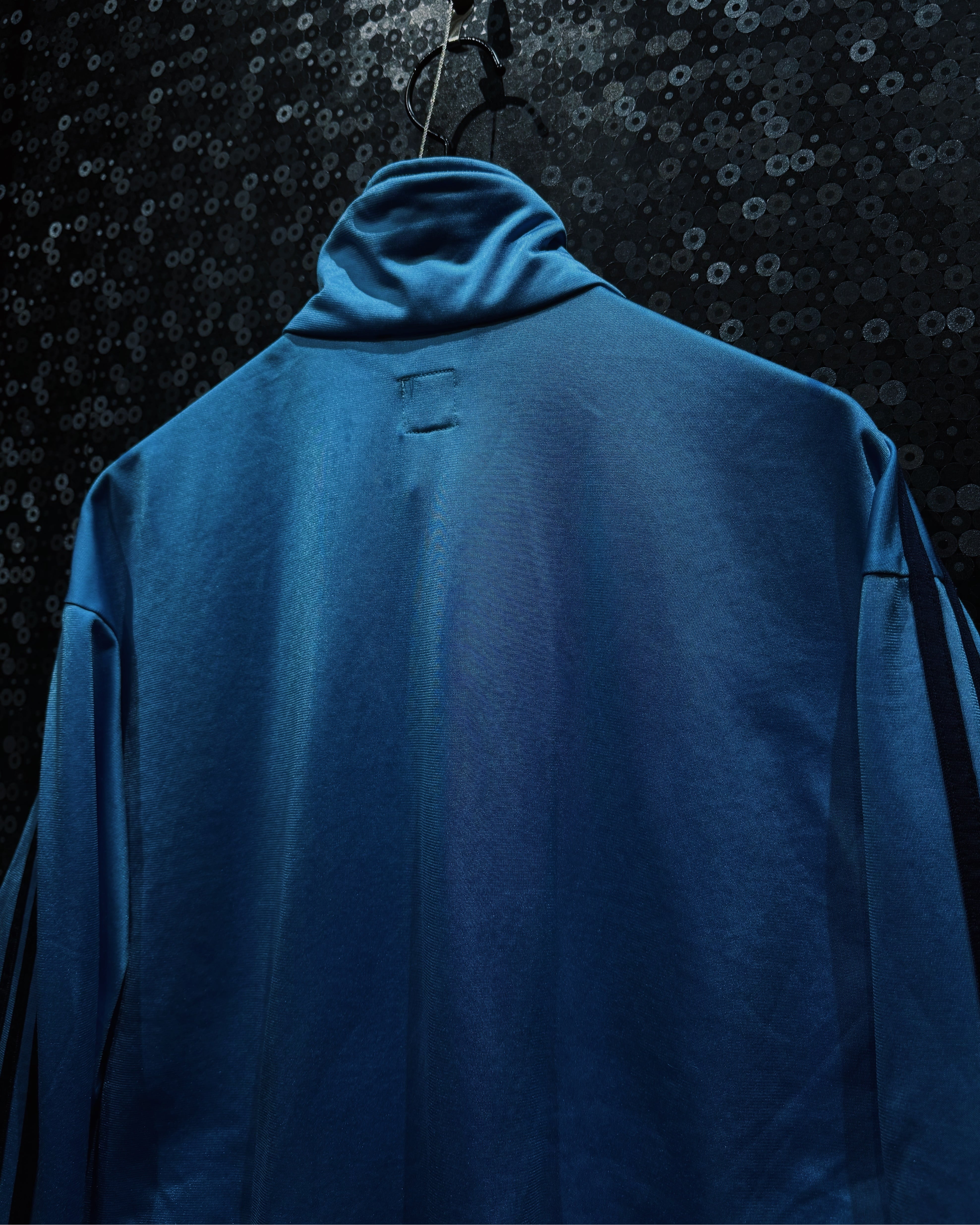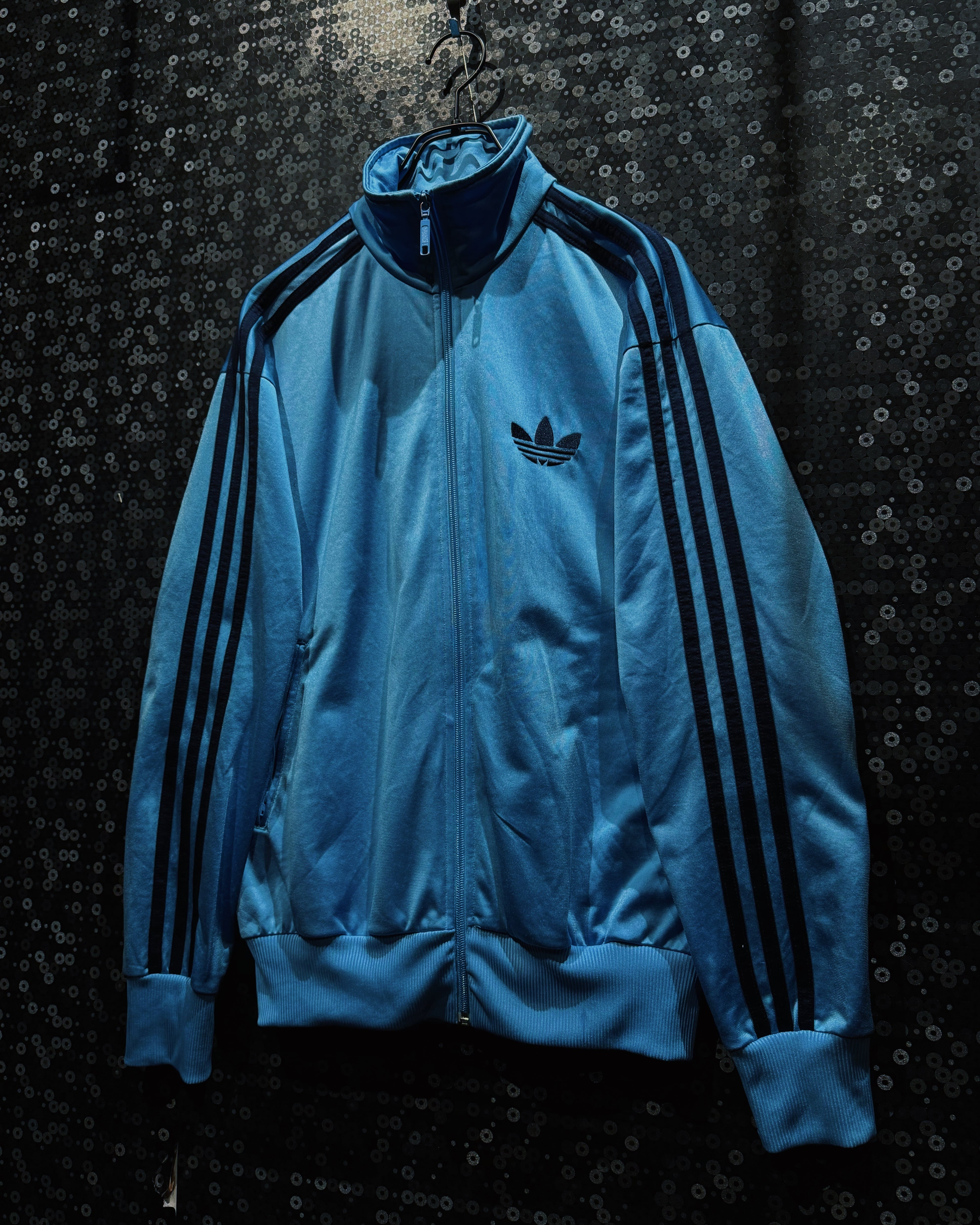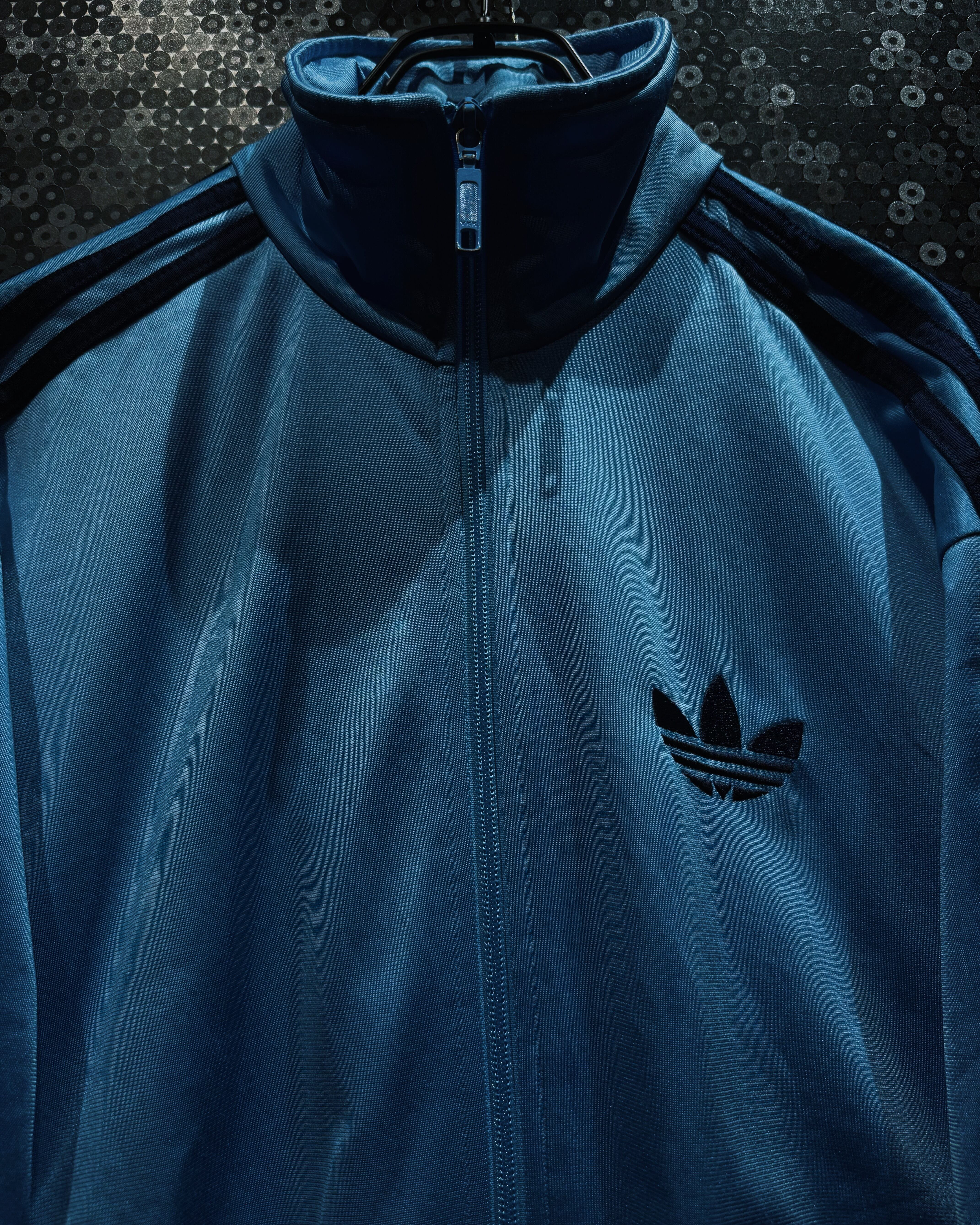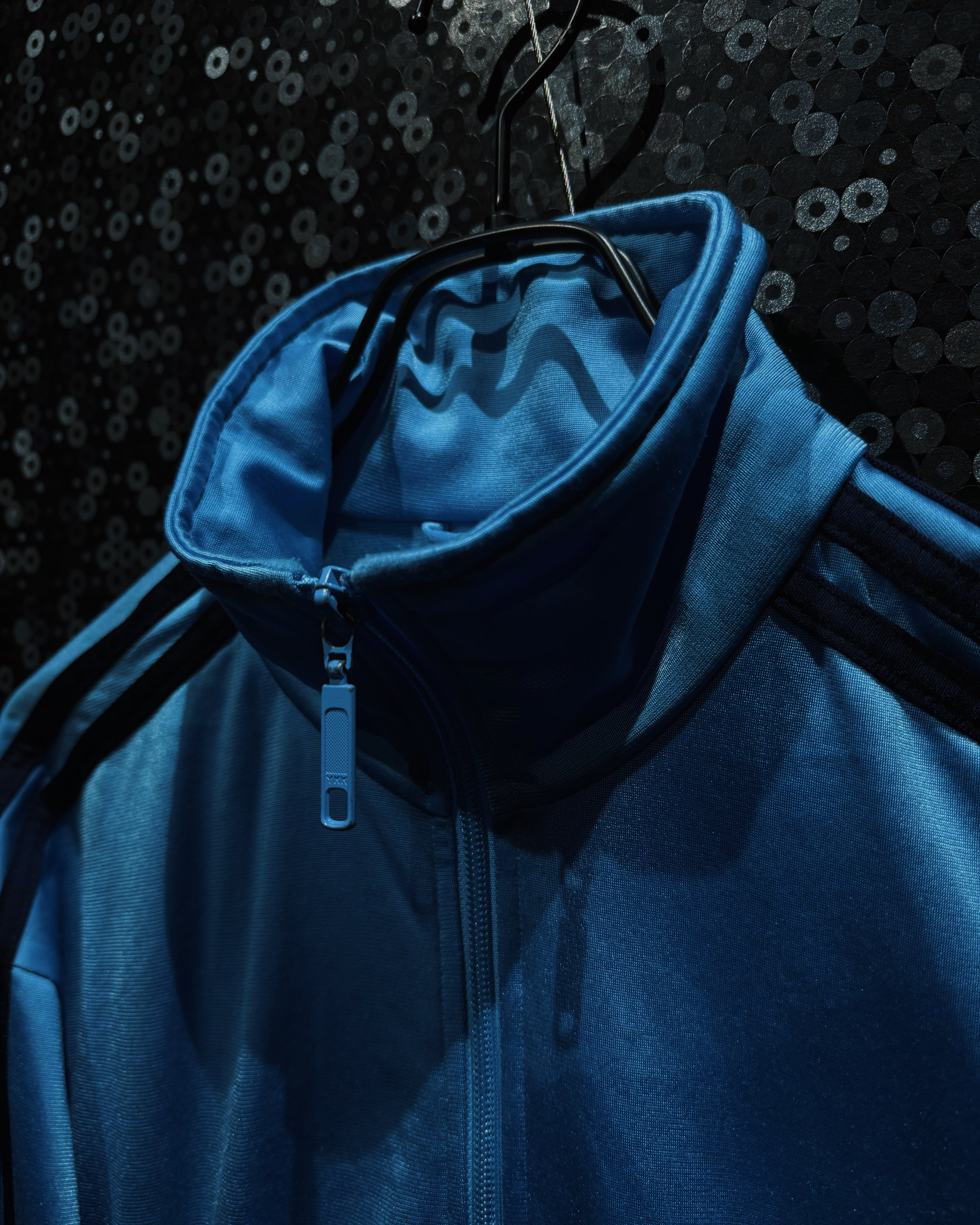 アディダス・オリジナルスを象徴するトレフォイルロゴを胸元に配した、極めてスタンダードかつ完成度の高いトラックジャケット。発色の良いブルーボディに、袖を走るブラックのスリーストライプがしっかりと映え、視覚的にも一目で“adidas”と分かる王道の佇まい。