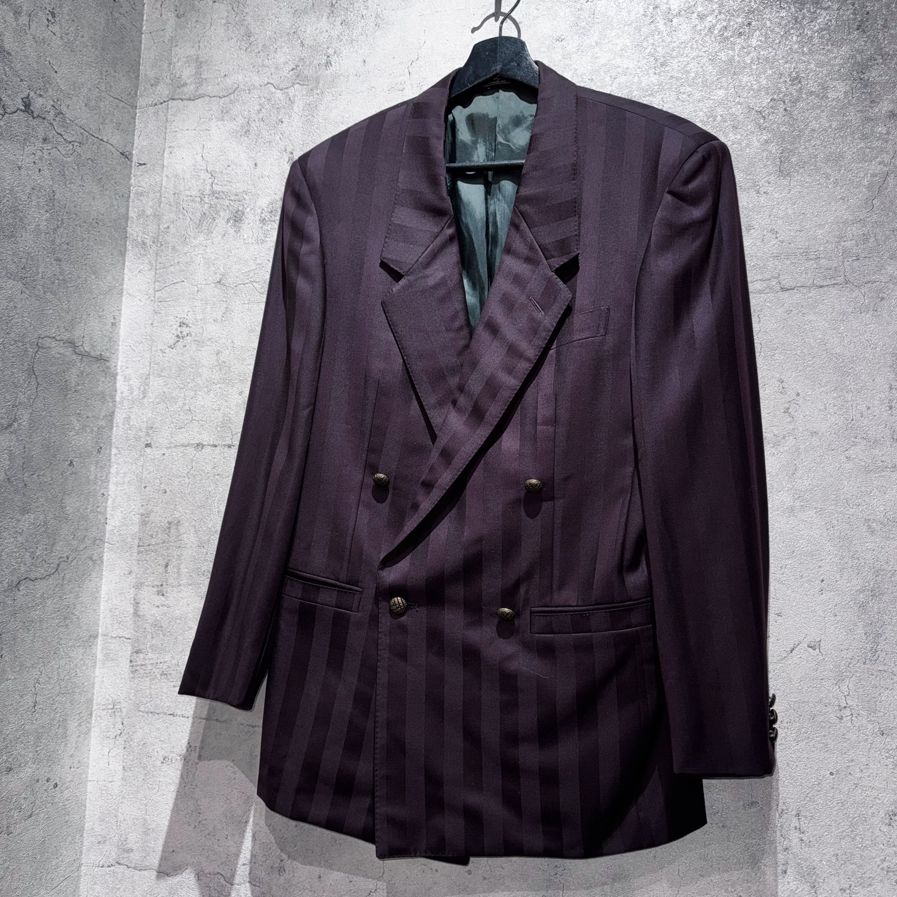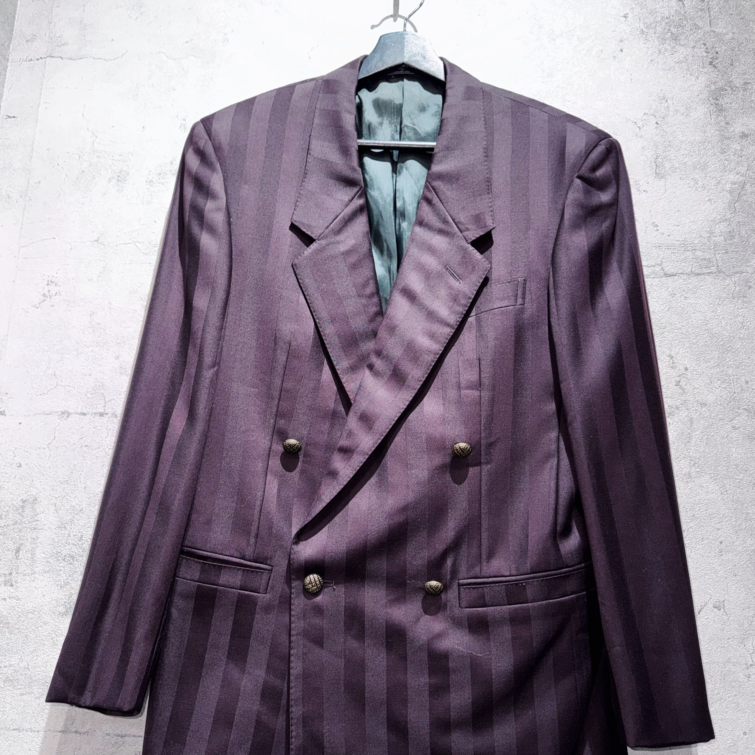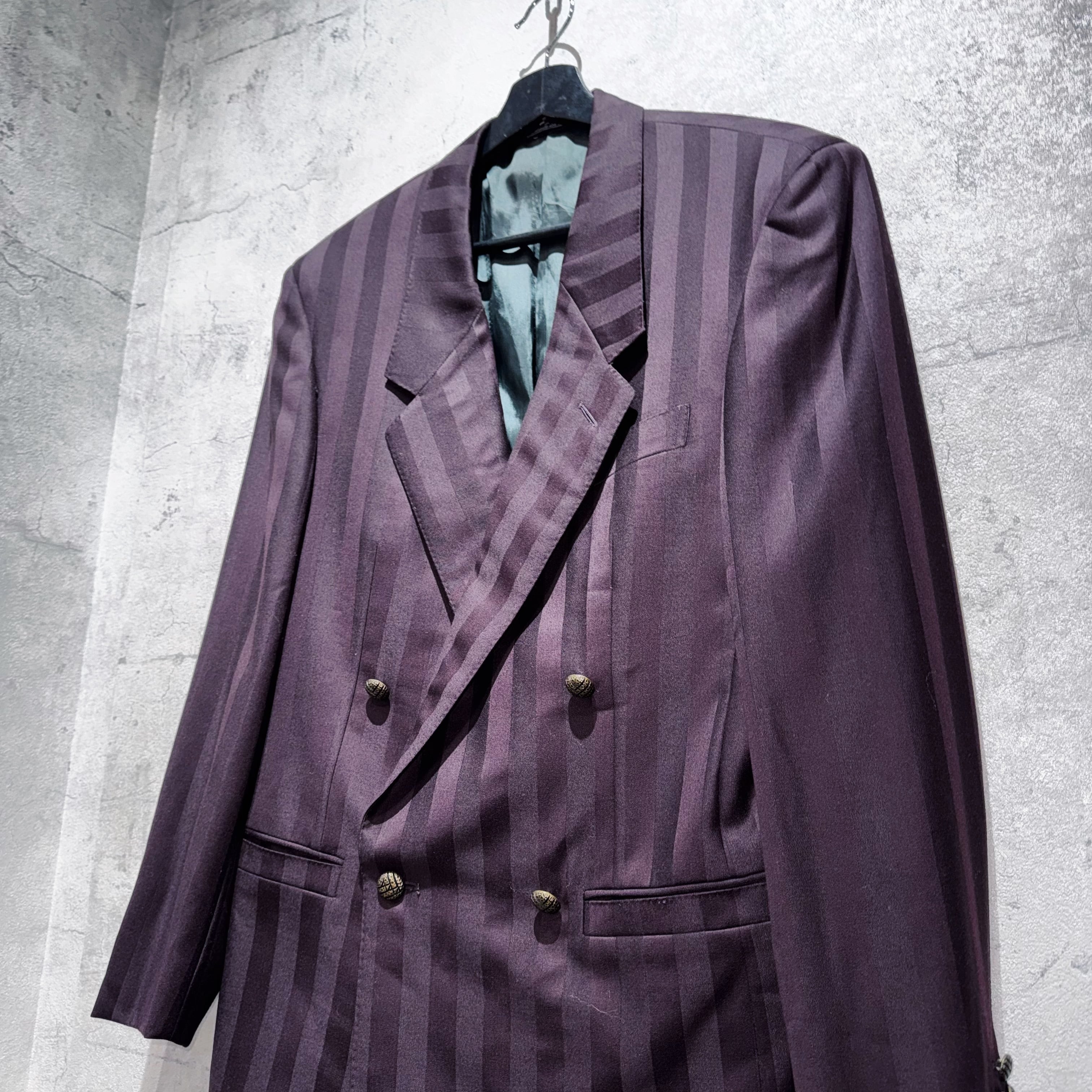 80年代"ジャンニヴェルサーチ"ワインレッドカラーダブルブレストストライプセットアップ