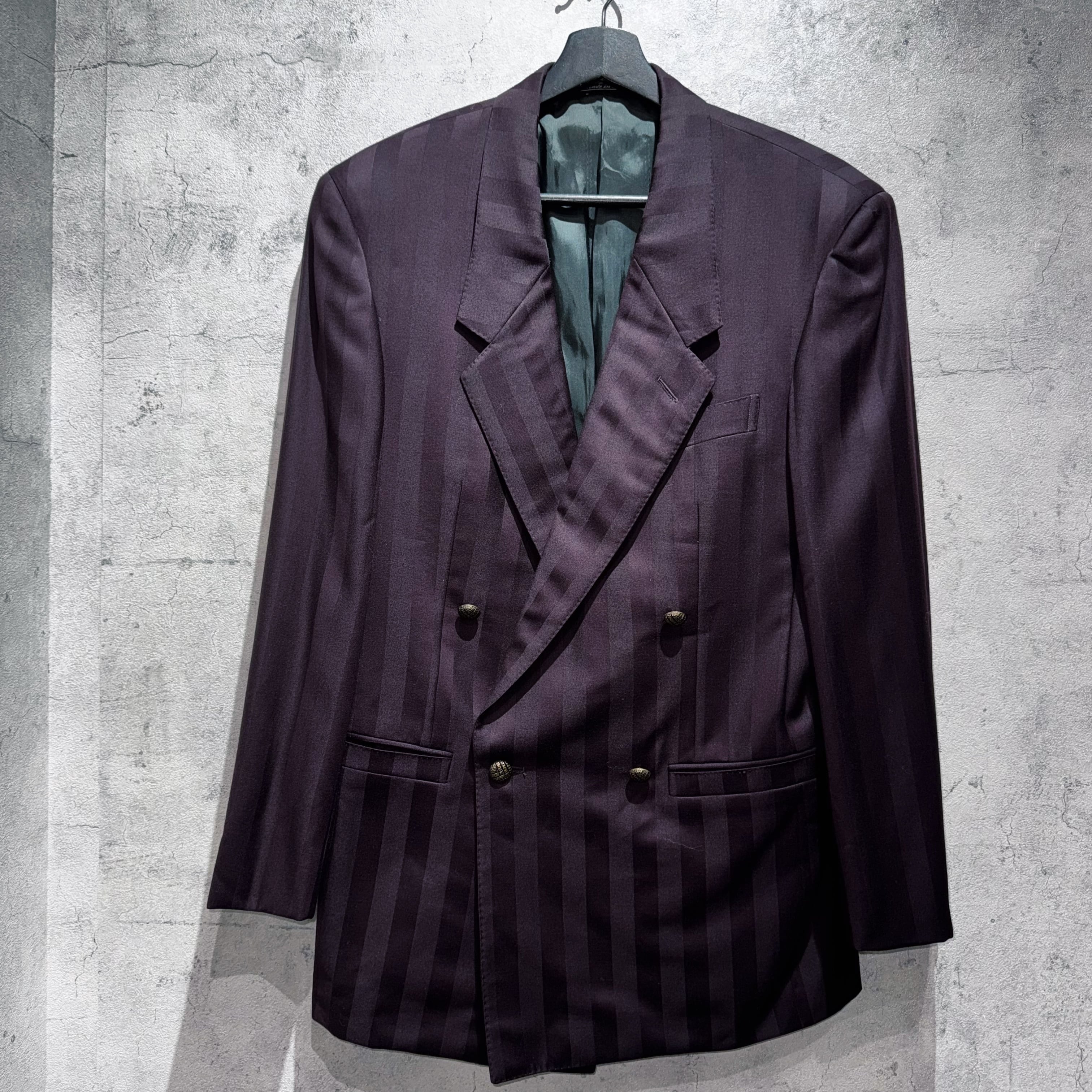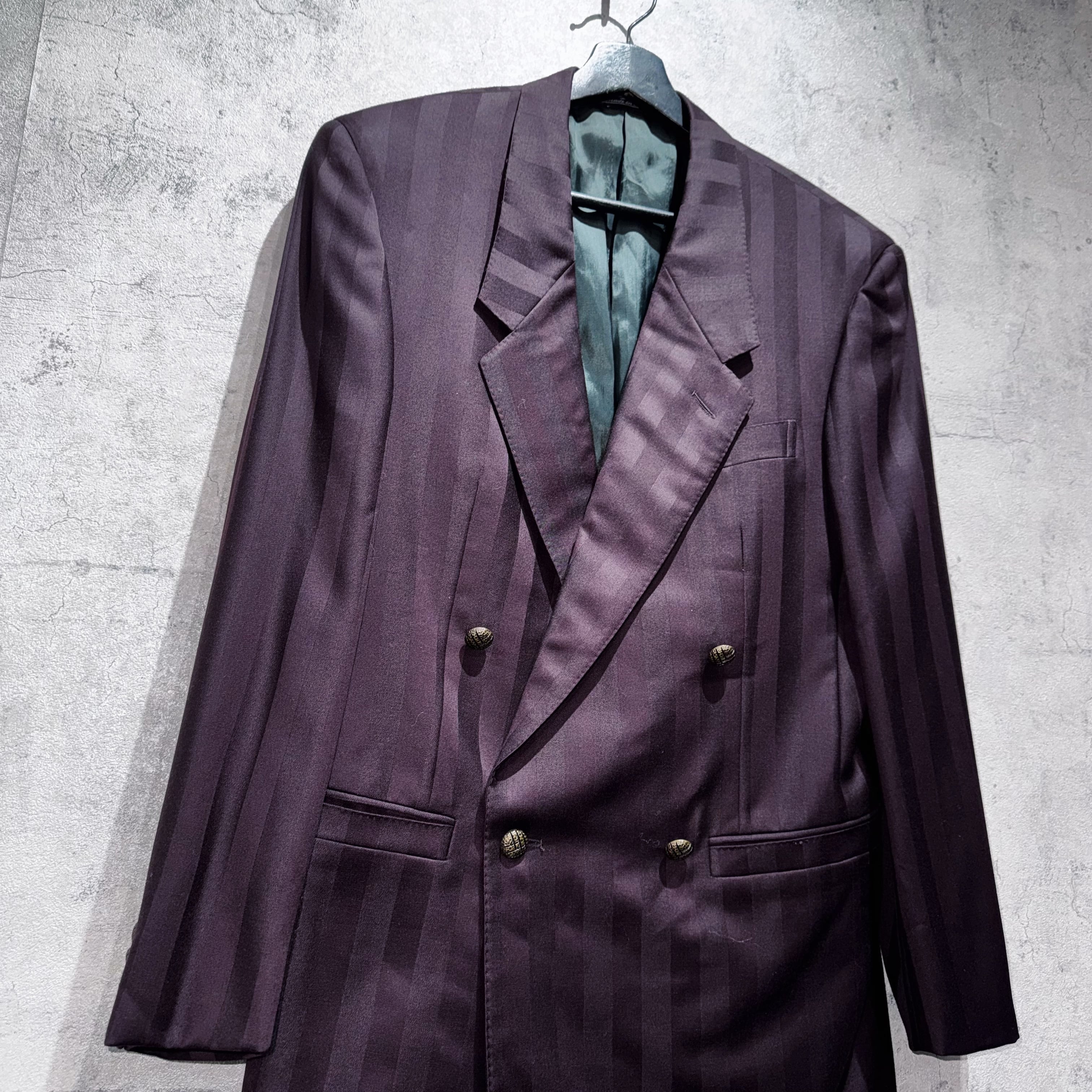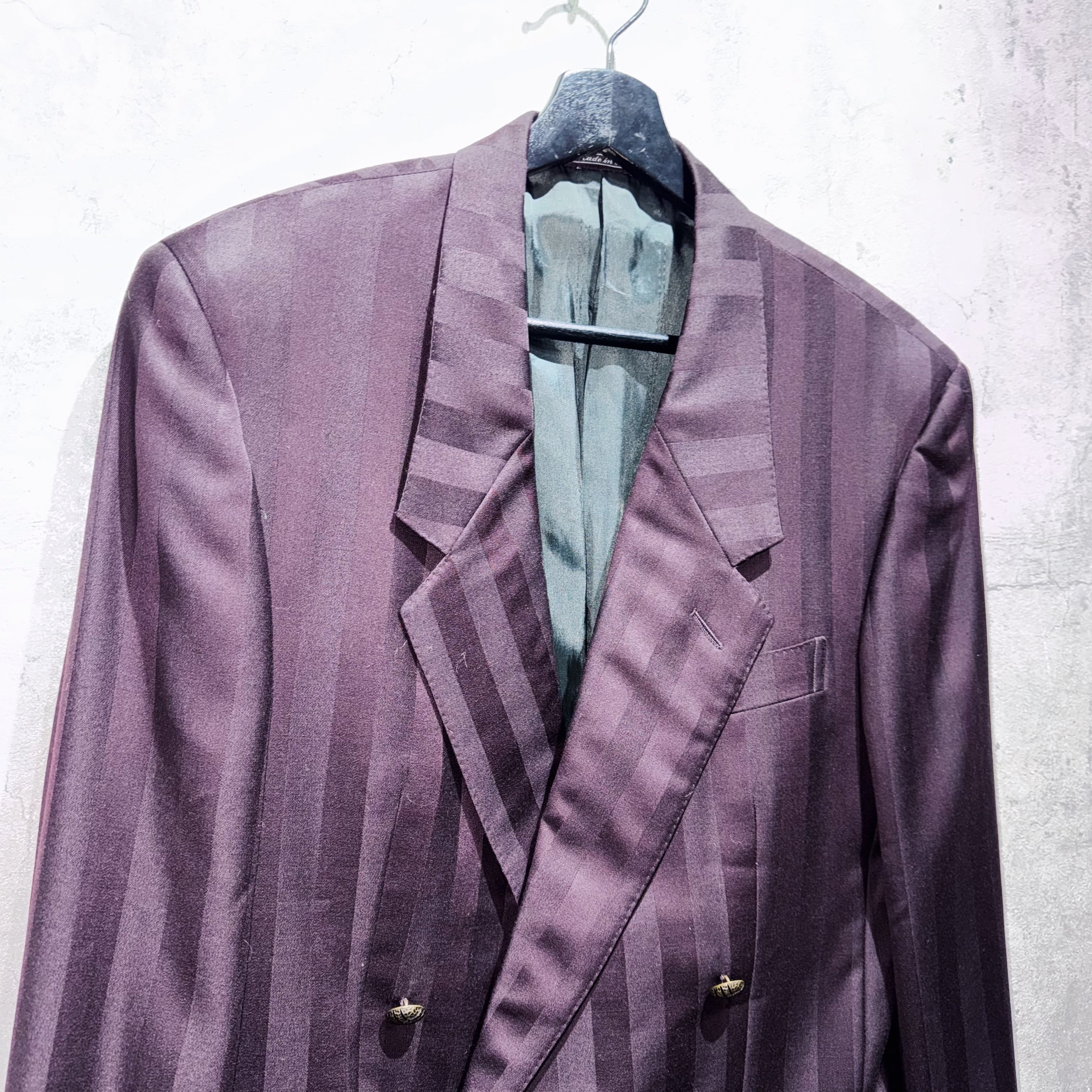 80年代"ジャンニヴェルサーチ"ワインレッドカラーダブルブレストストライプセットアップ