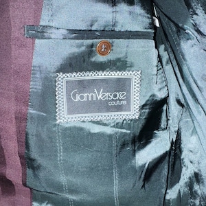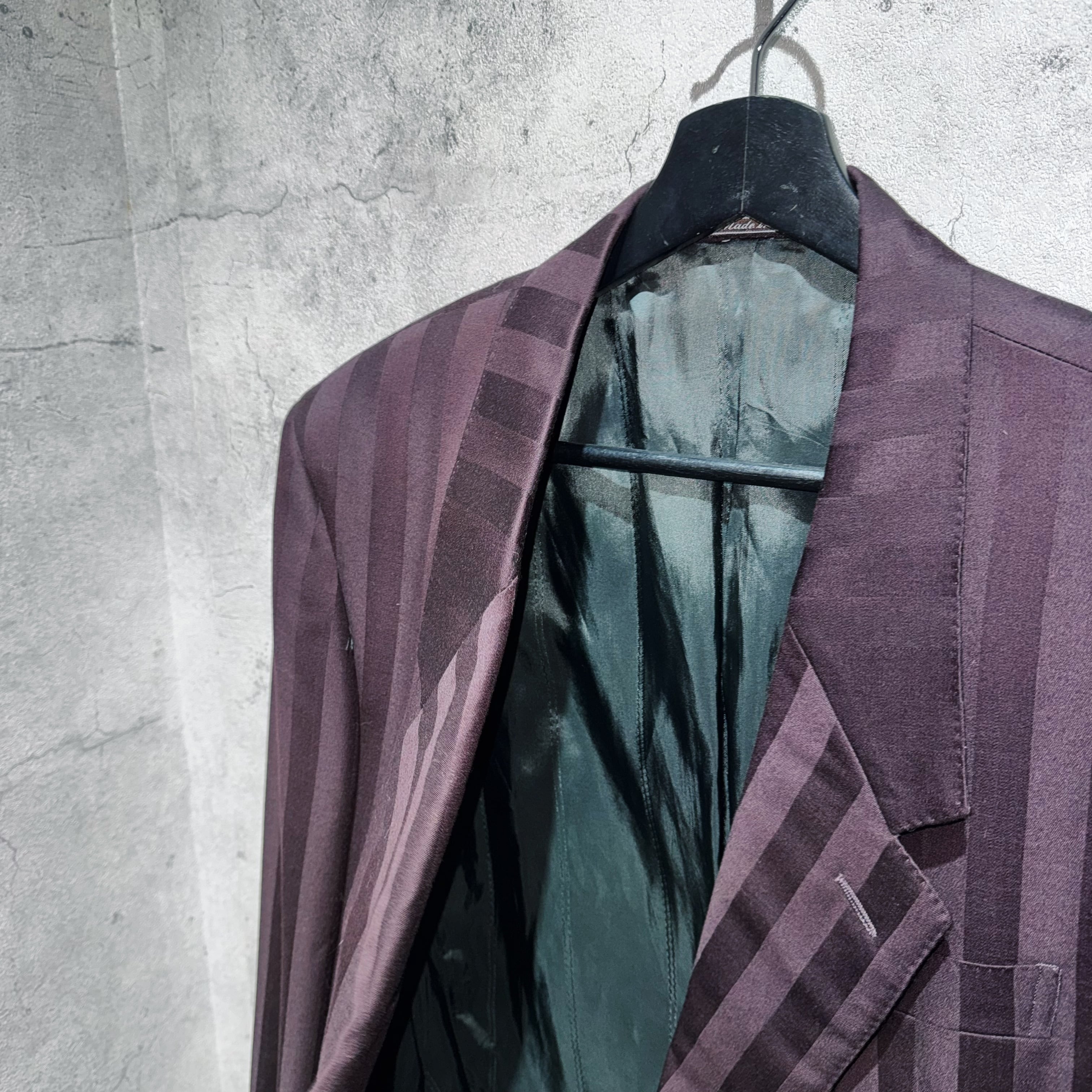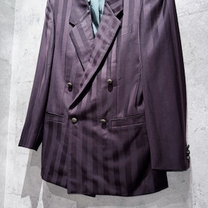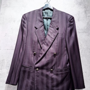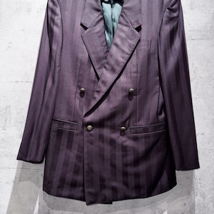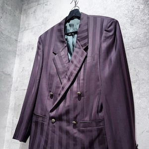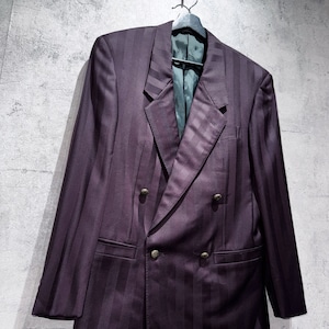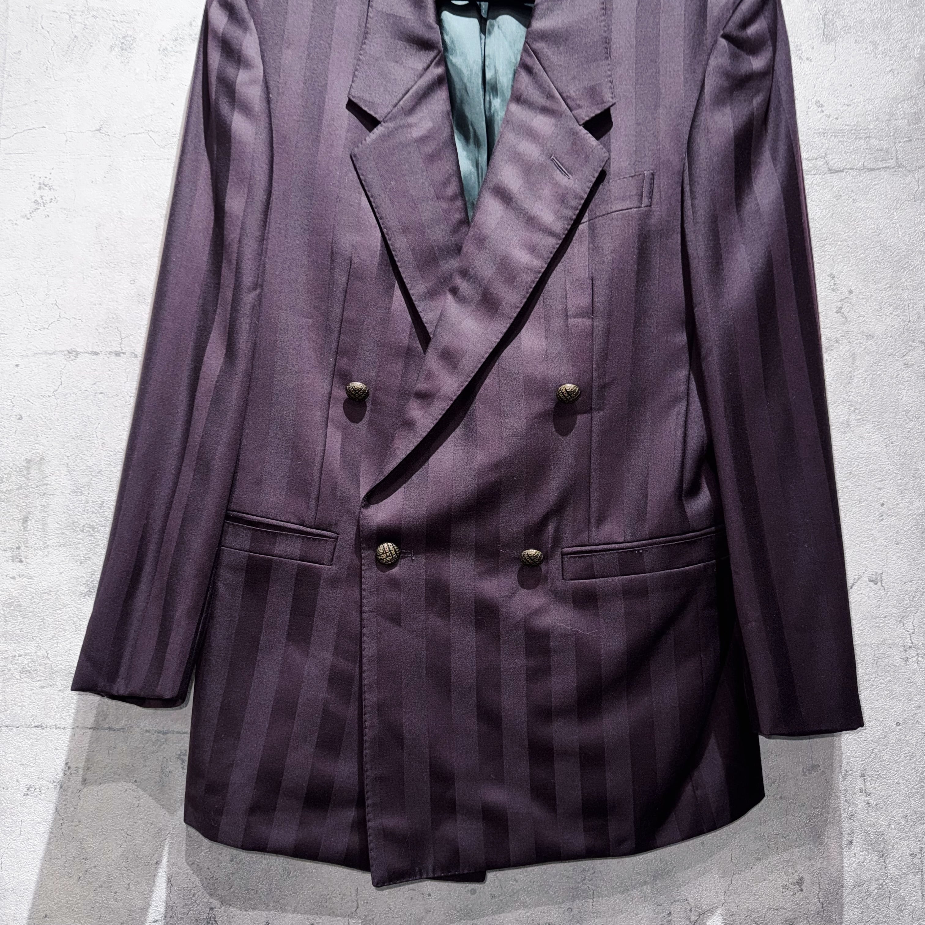 80's"GIANNI VERSACE"wine-red color double breasted stripe set up