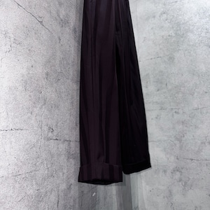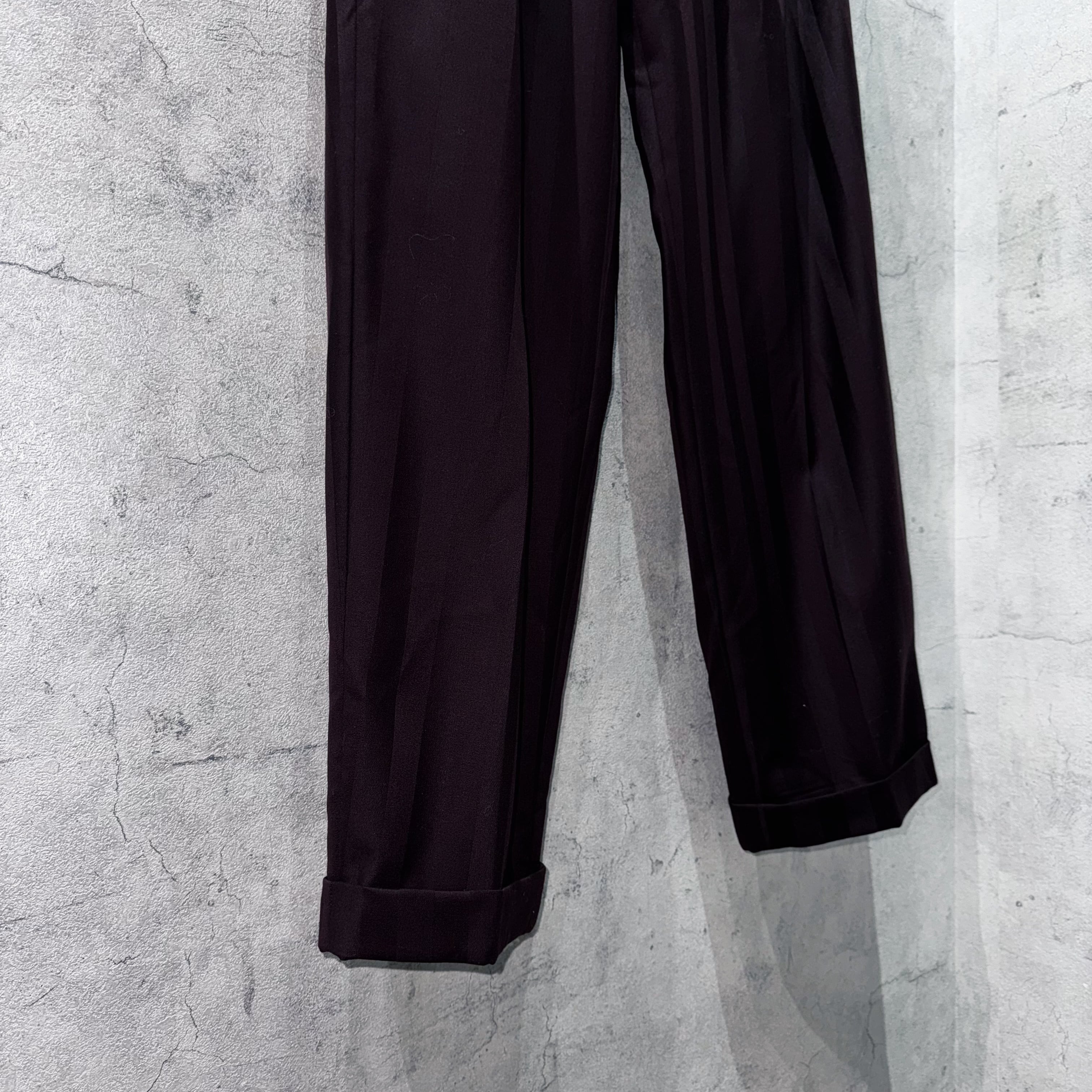 ヴェルサーチらしくジャケットはパワーショルダーでゆとりのあるサイジング、パンツはワイドシルエットと着用に生み出されるソフトシルエットはまさにミラノスタイル。