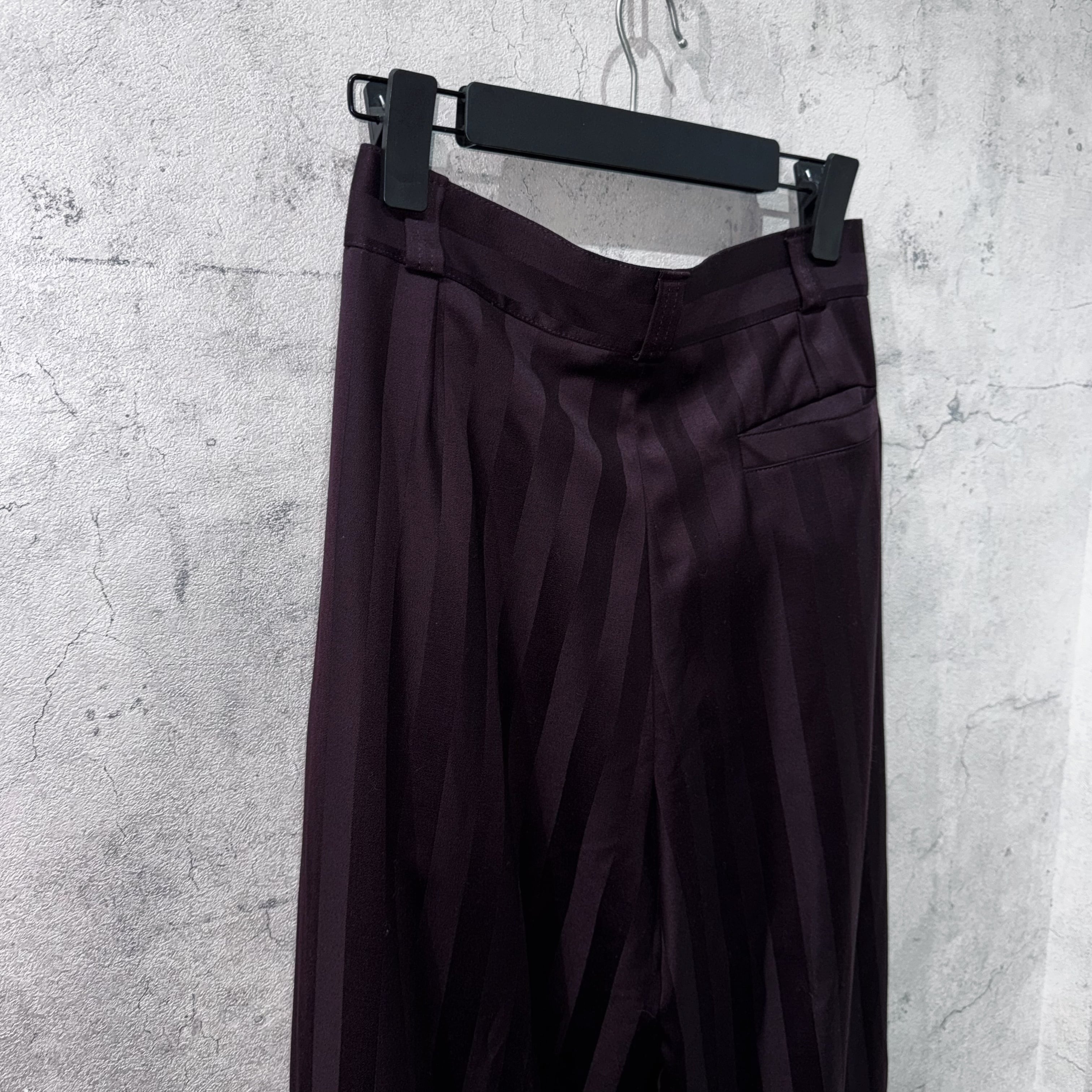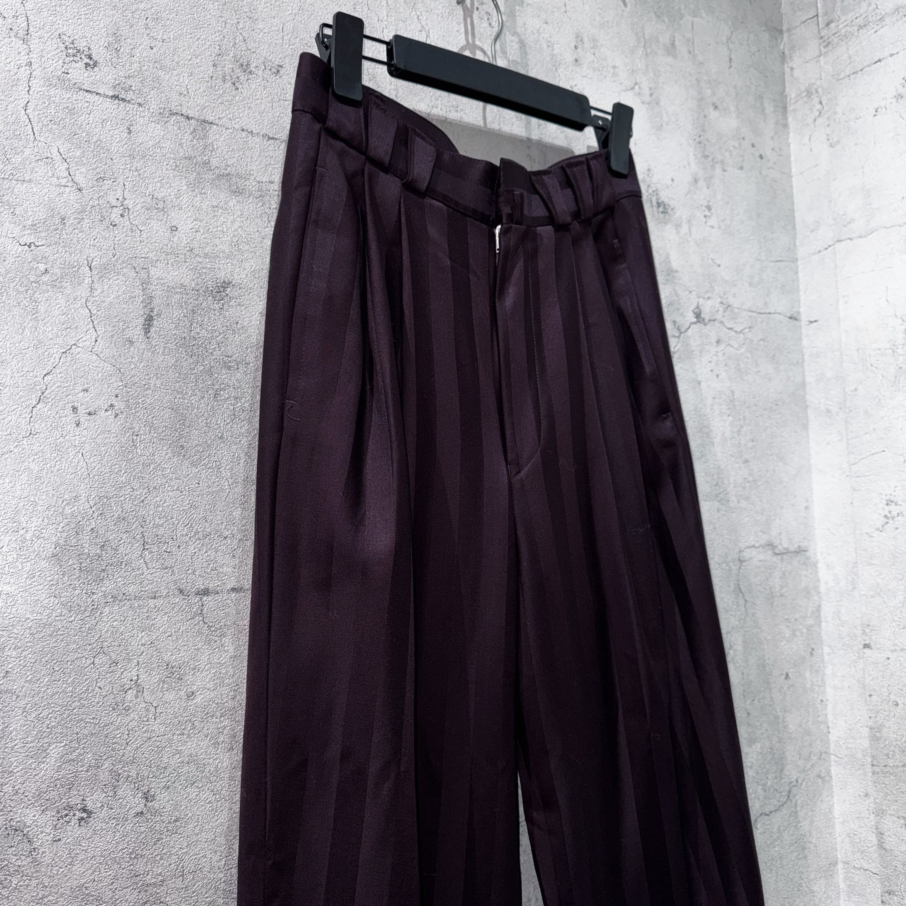 今回はそんなブランドから当店でかなり人気の高いワインレッドカラーでご用意。最高品質のウールを採用することで程よく美しい光沢を放ち、ストライプも載せることで紳士的な佇まいに。