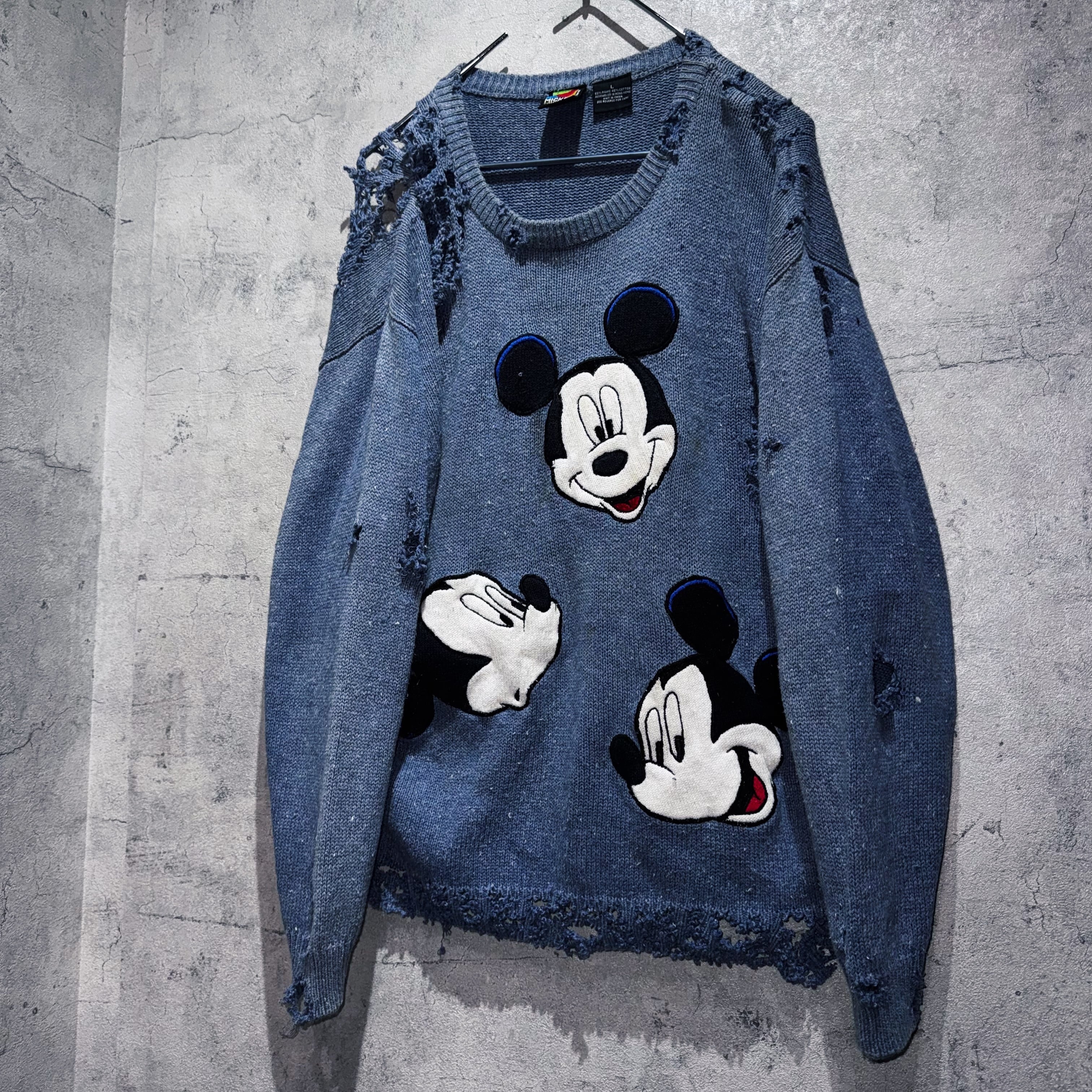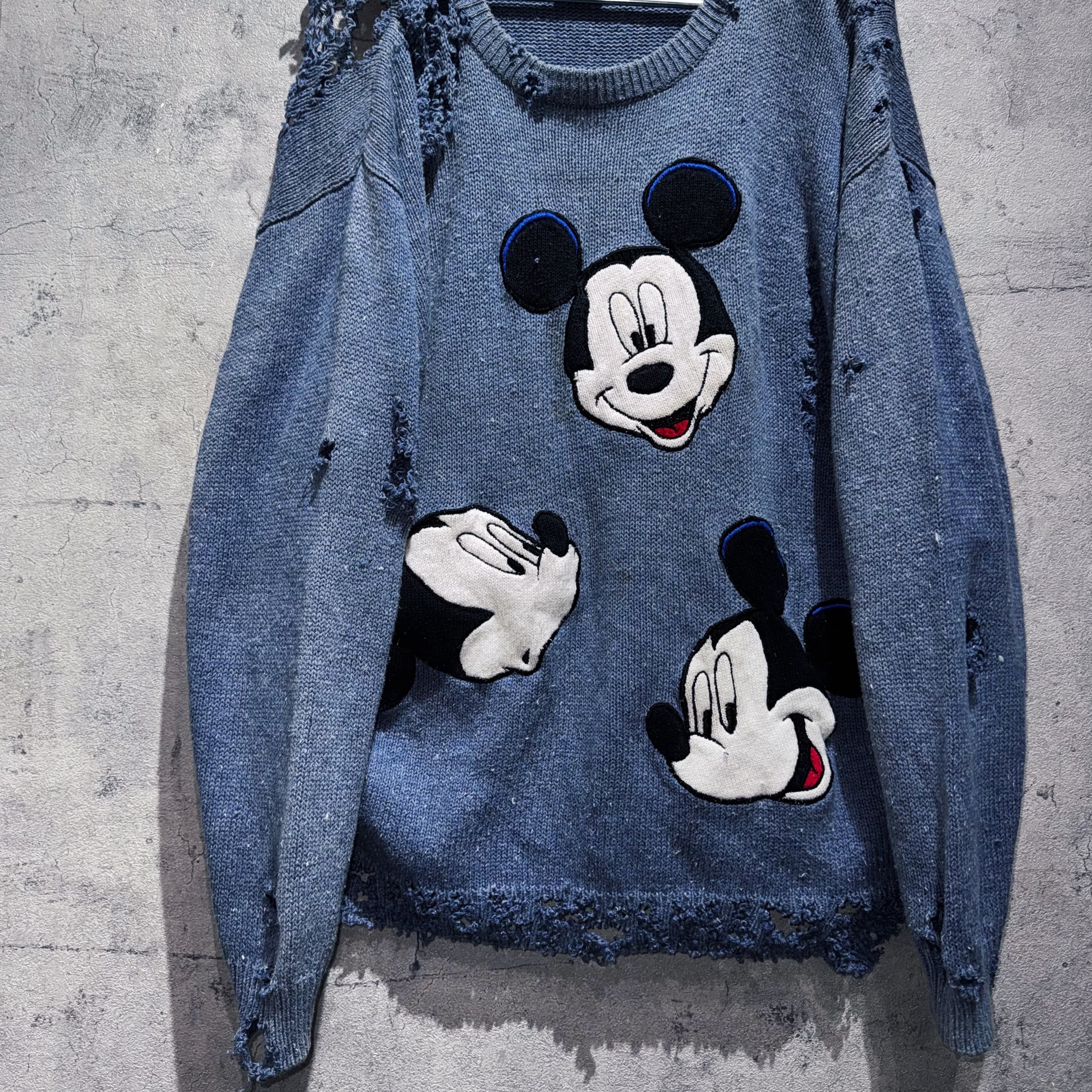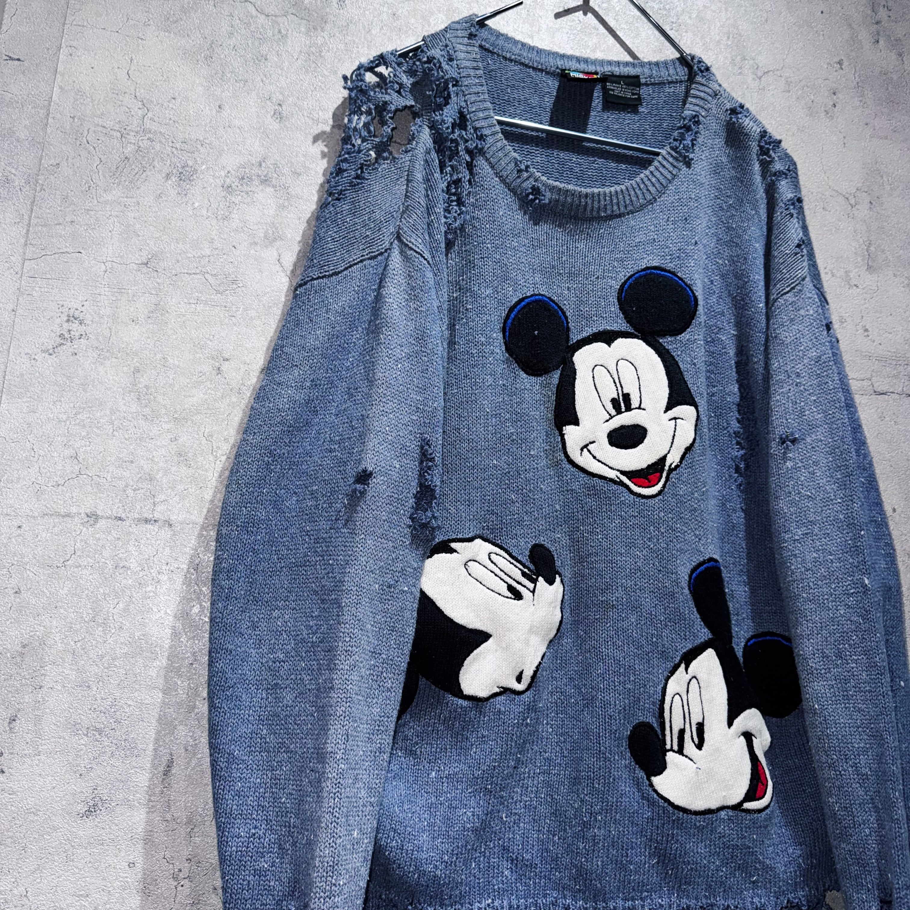 90's"Disney"Mickey Mouse wappen design boro custom knit