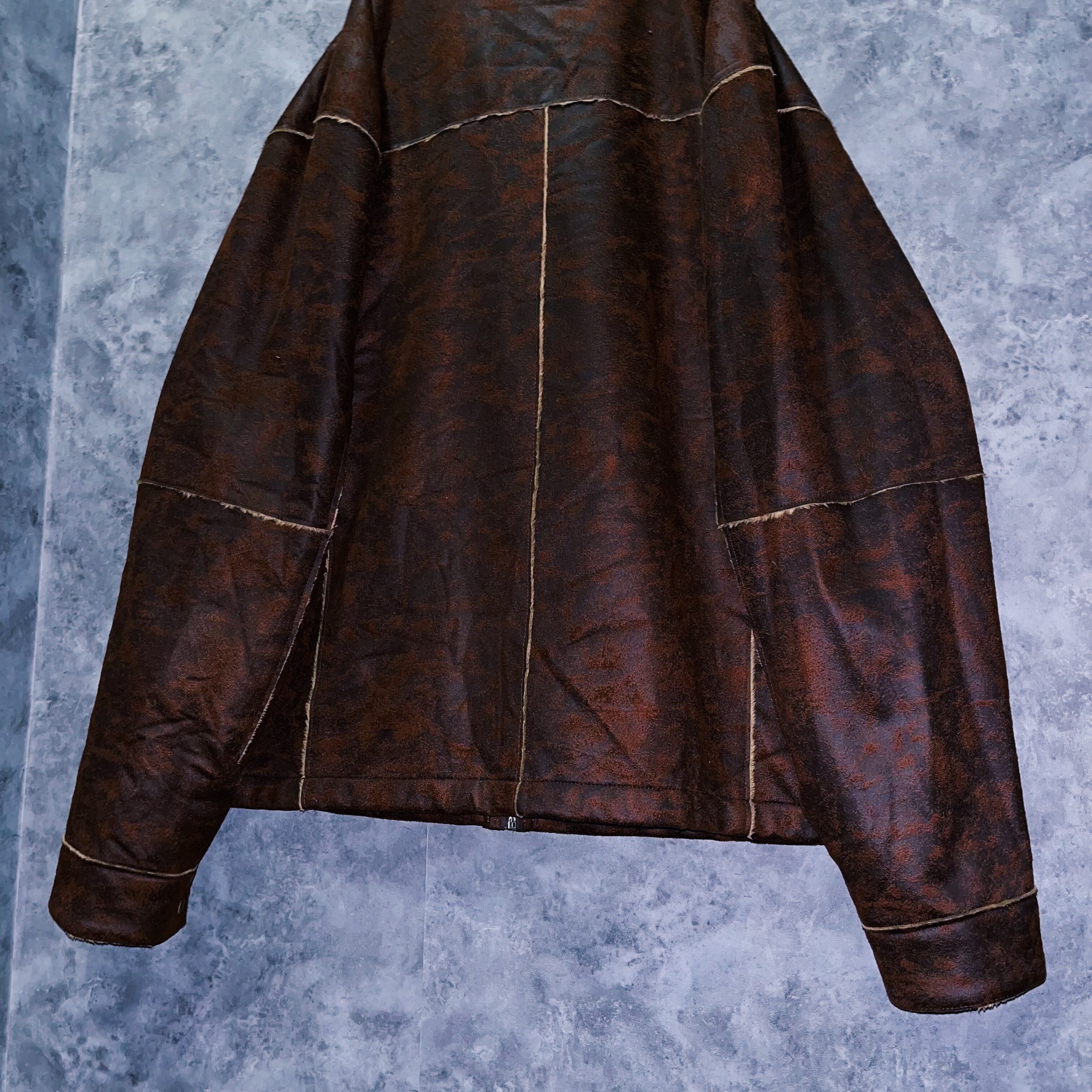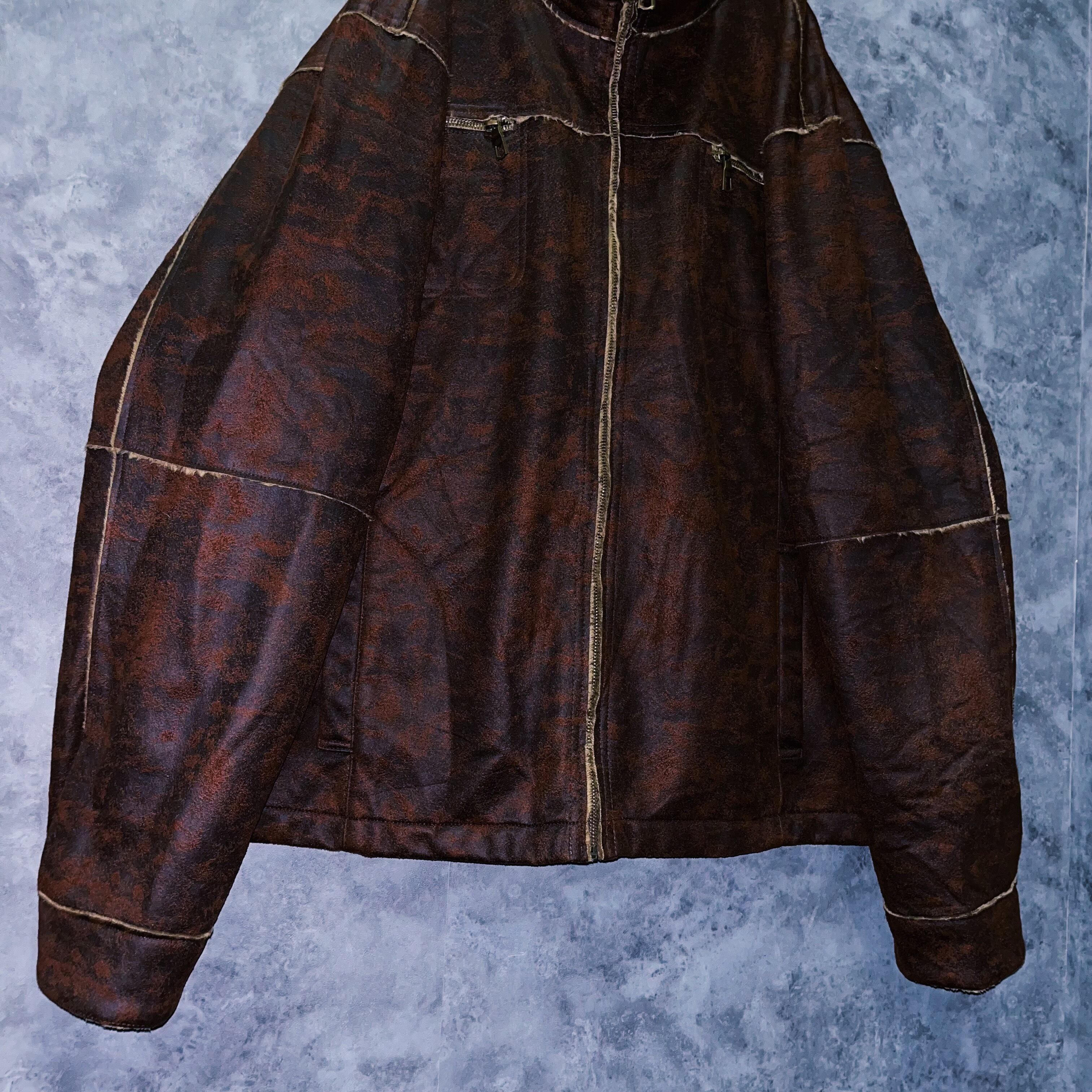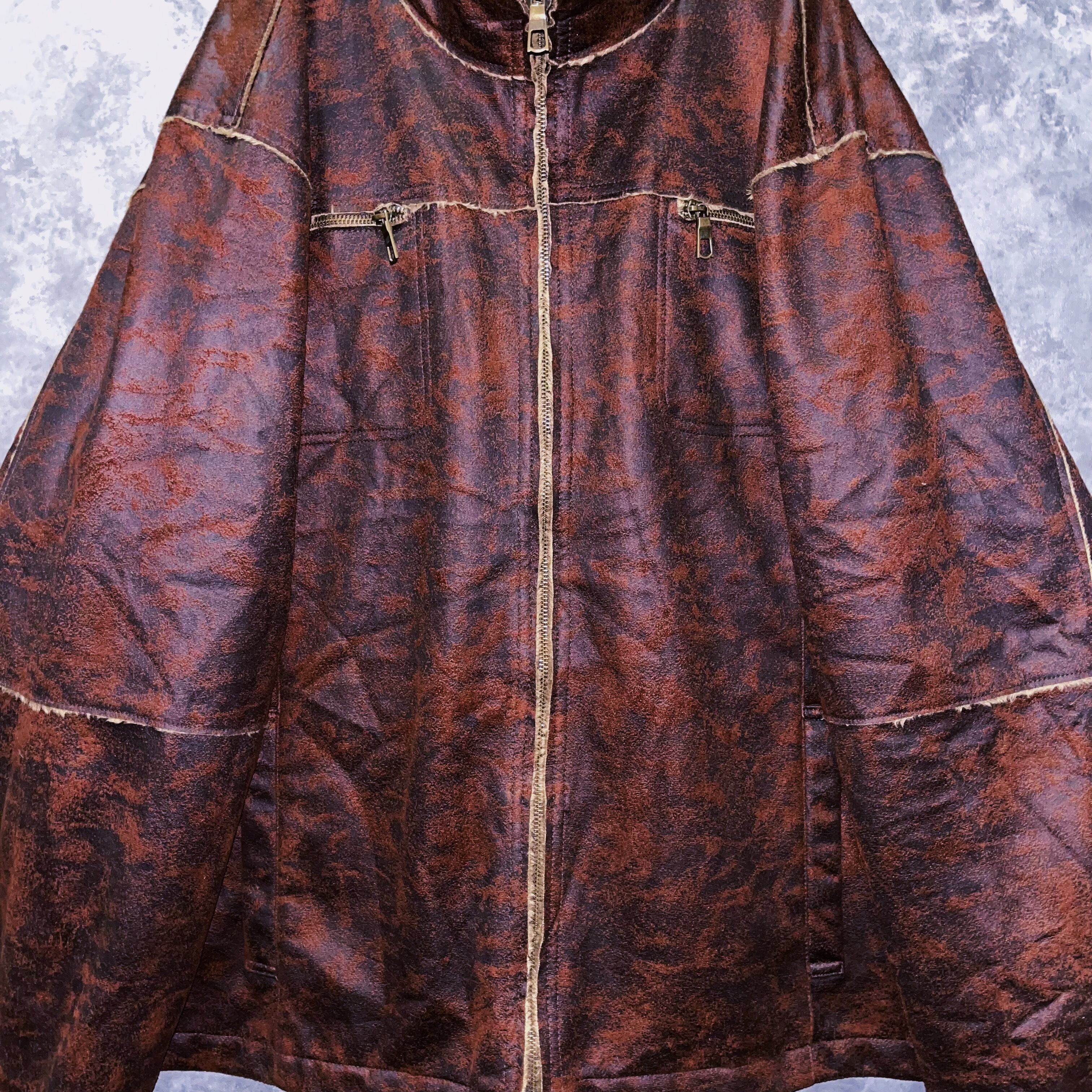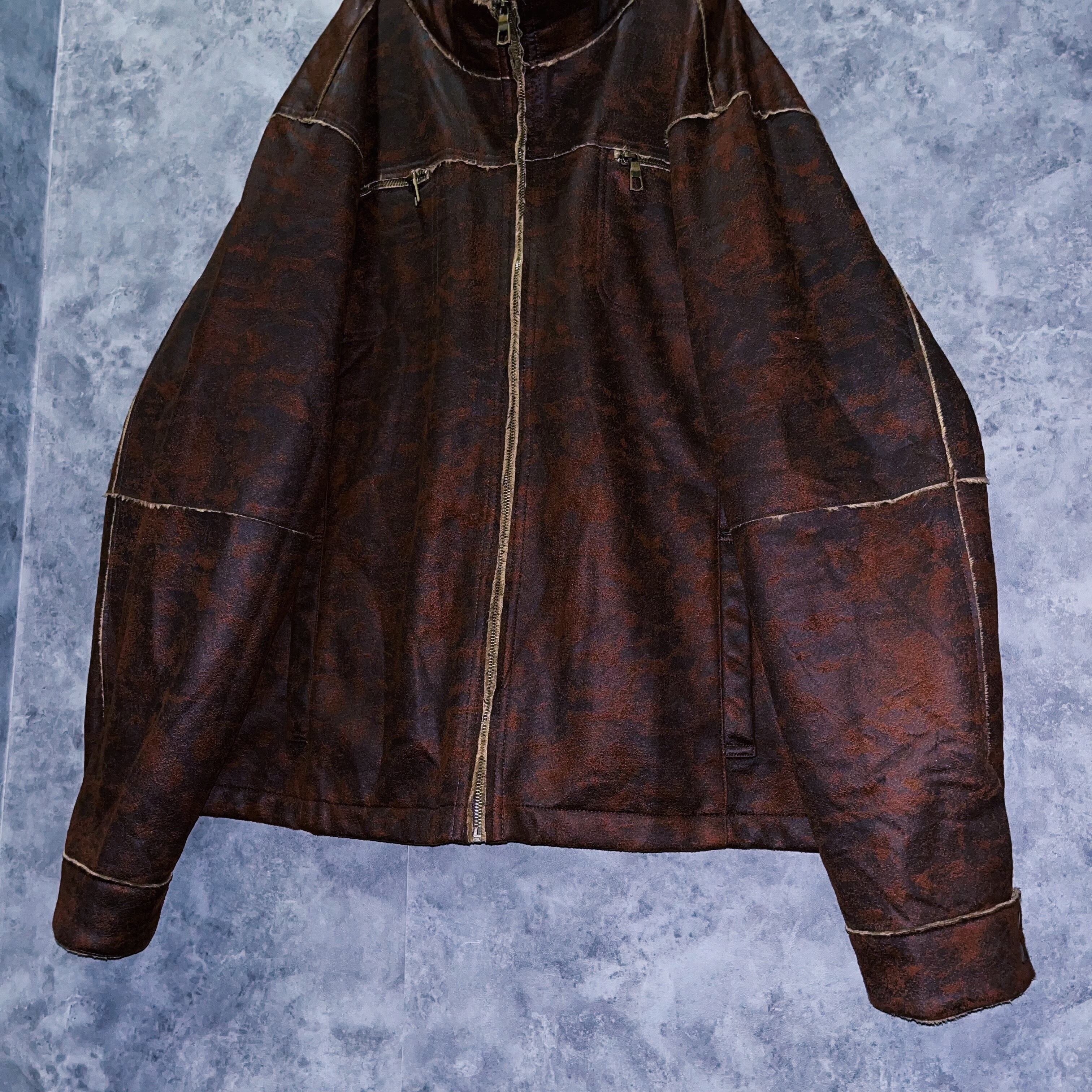 ヴィンテージカットオフデザインブラウンカラーレザージップアップジャケット