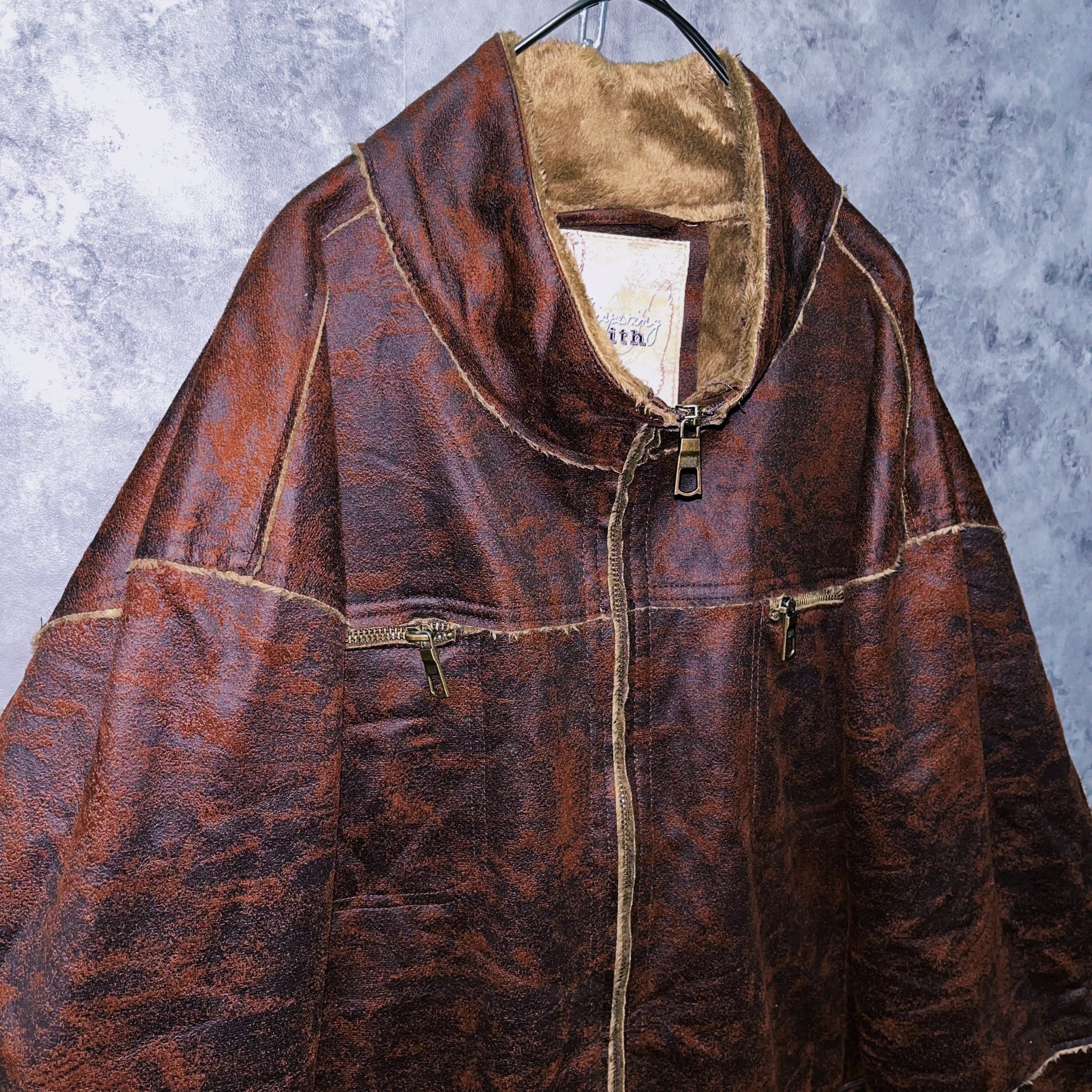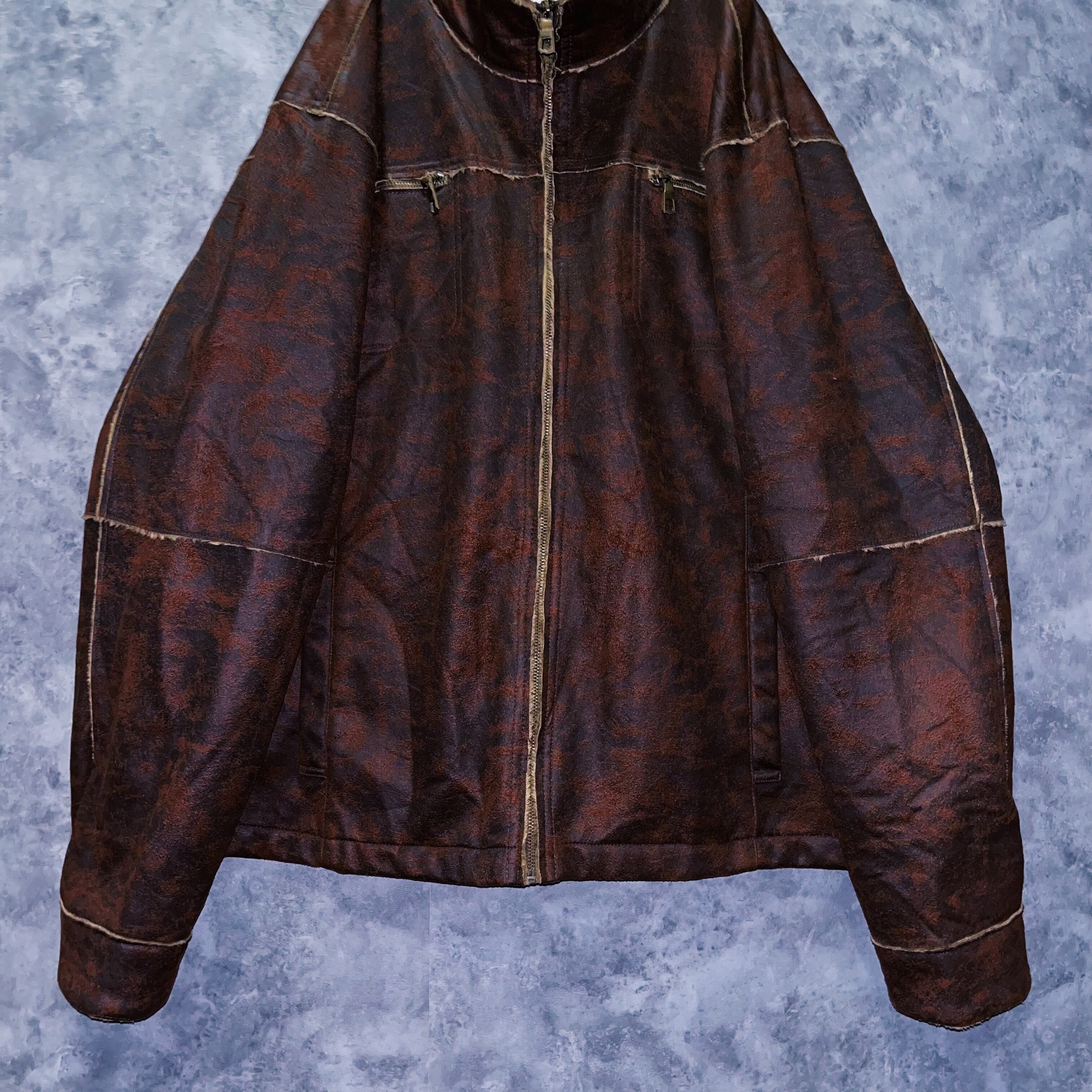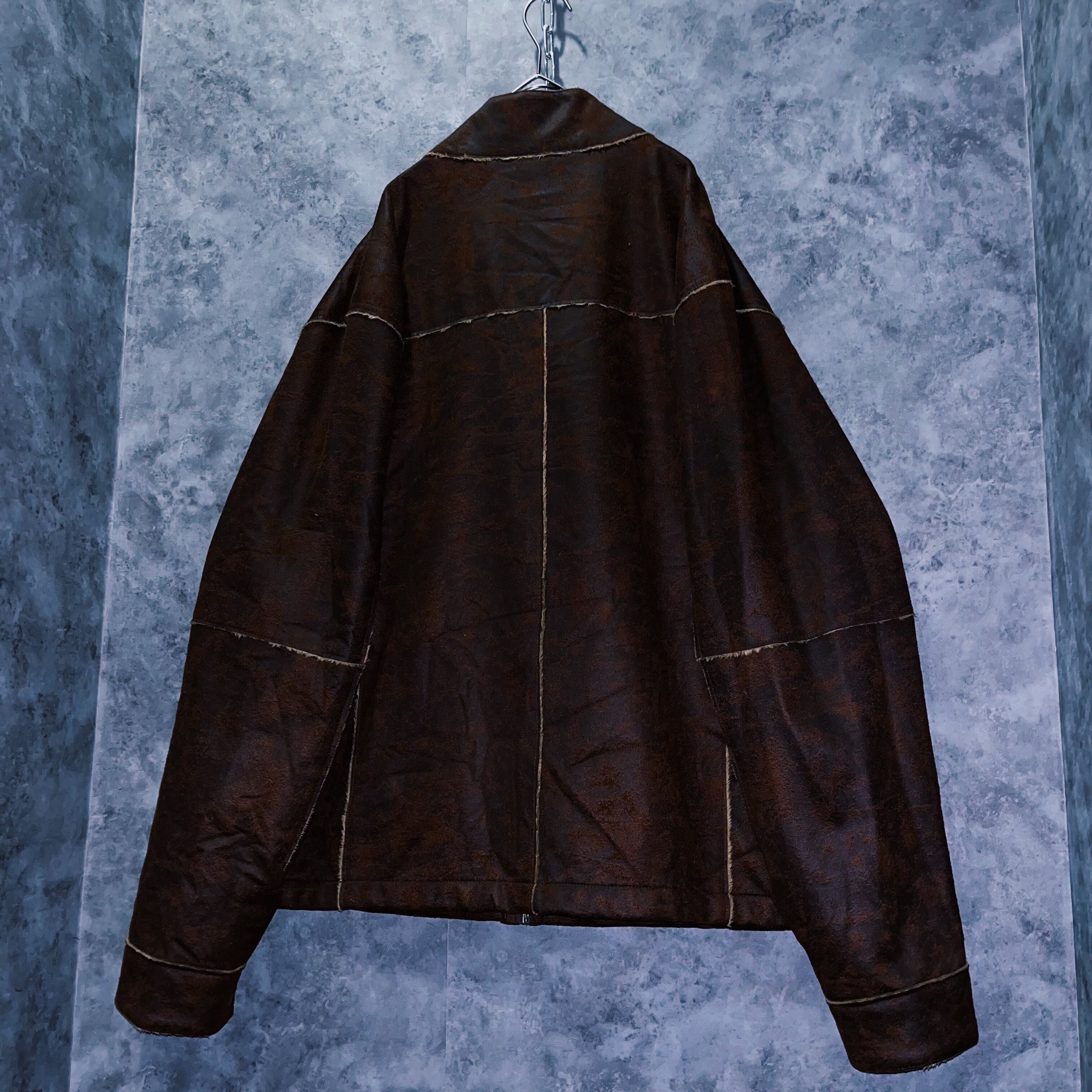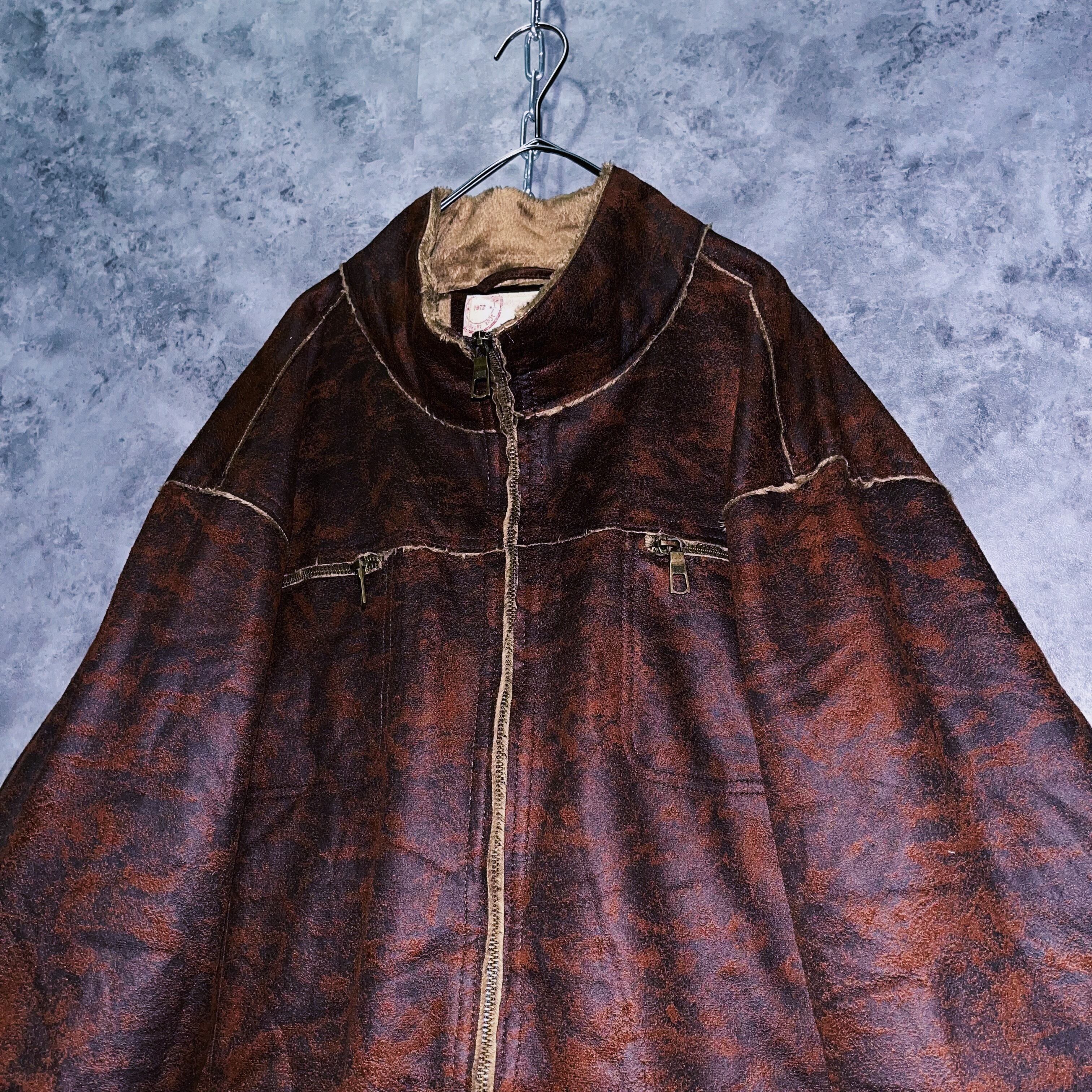 ヴィンテージカットオフデザインブラウンカラーレザージップアップジャケット
