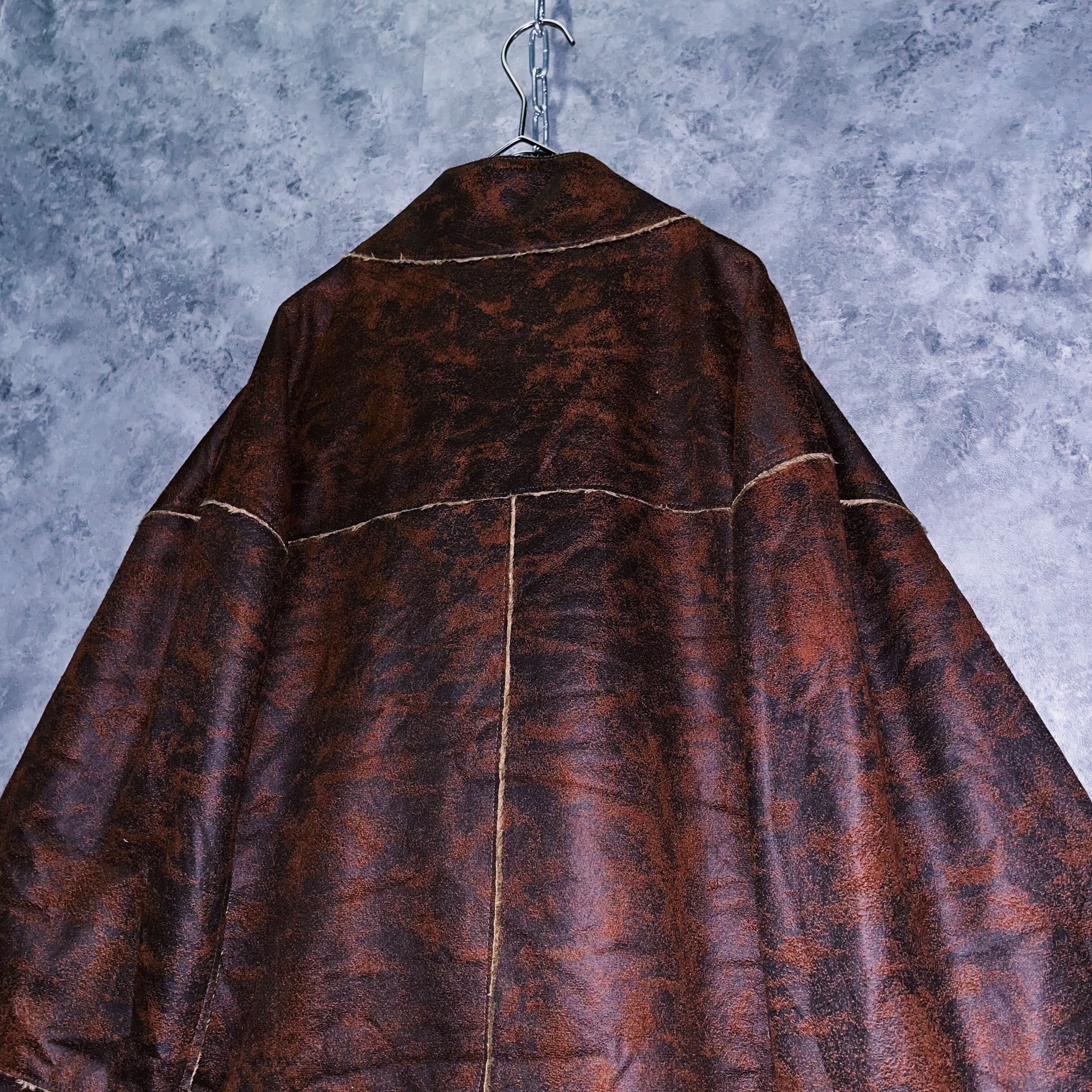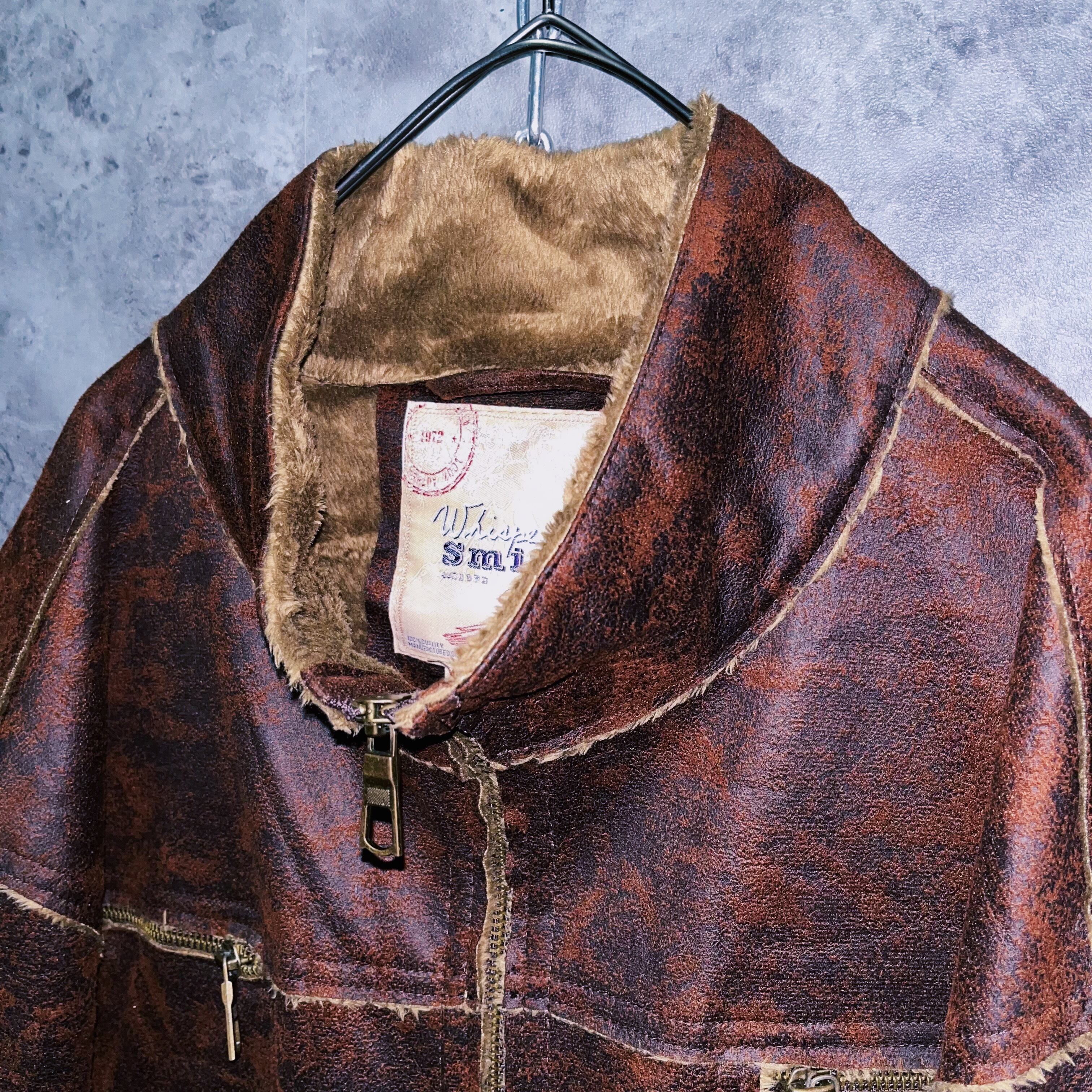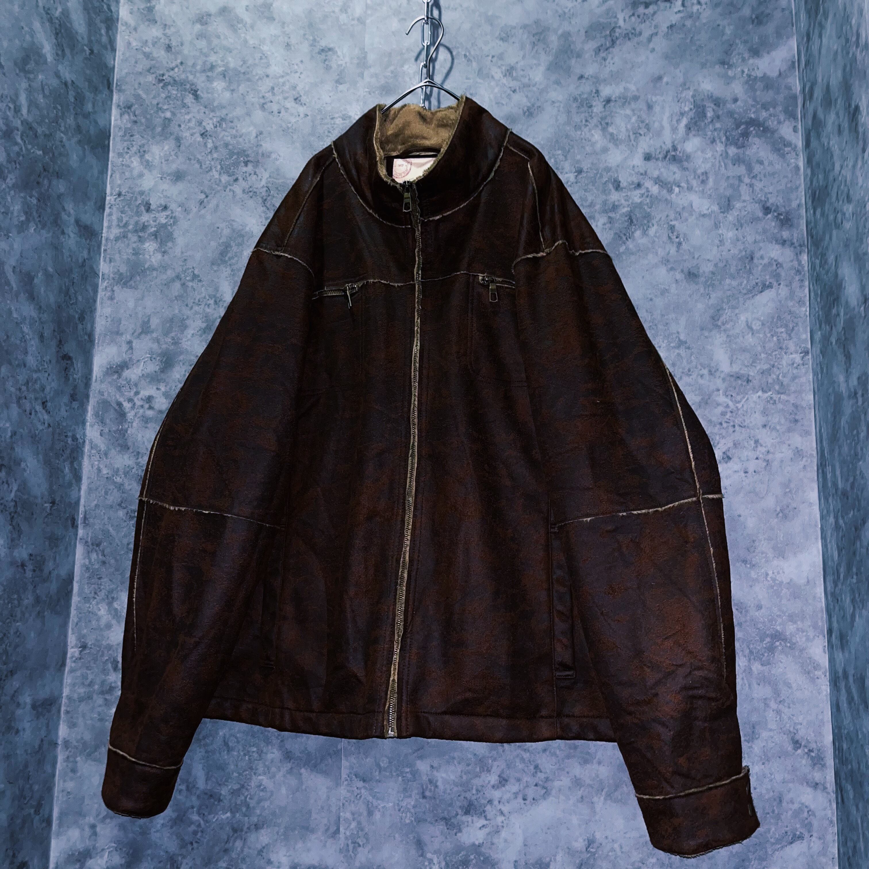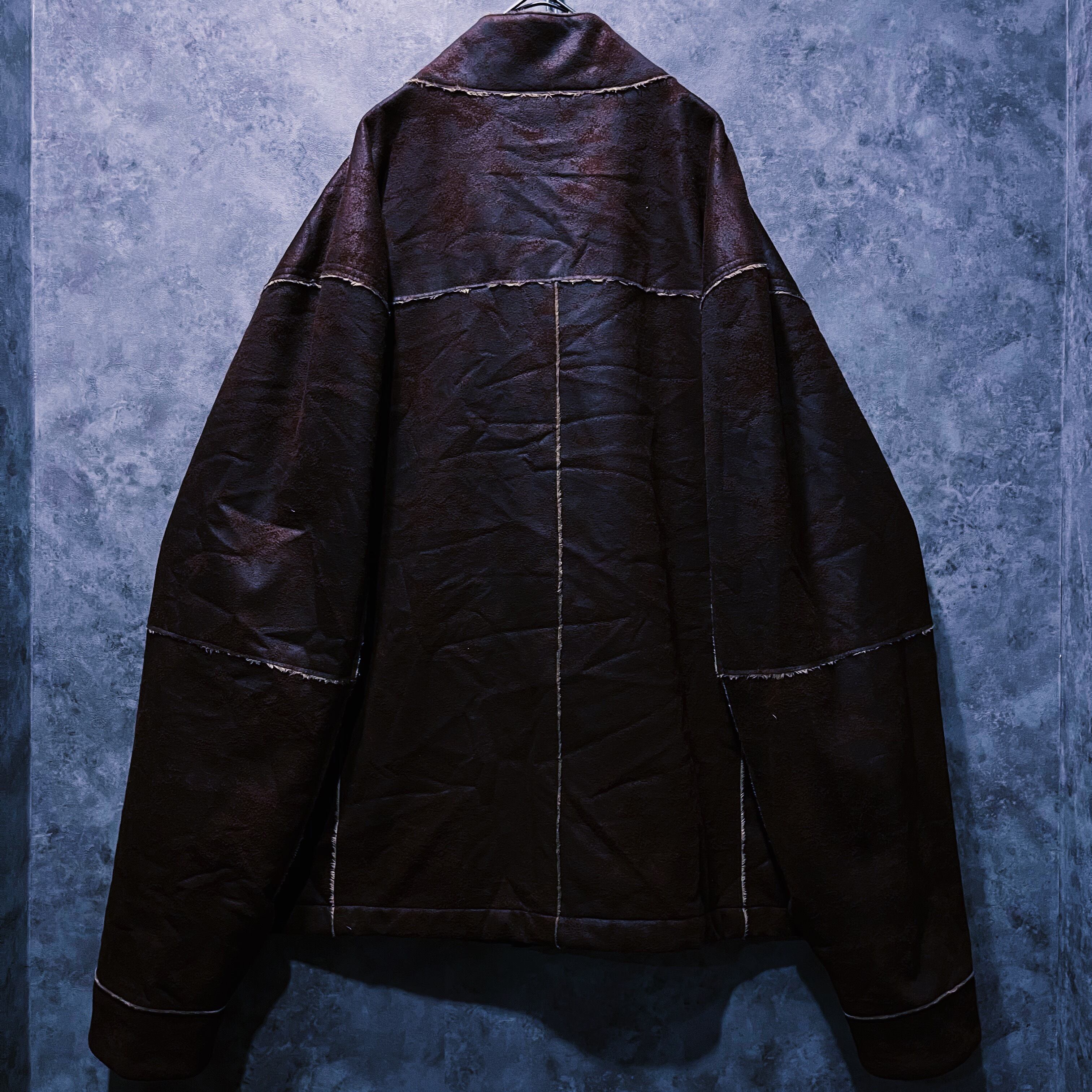 ヴィンテージカットオフデザインブラウンカラーレザージップアップジャケット