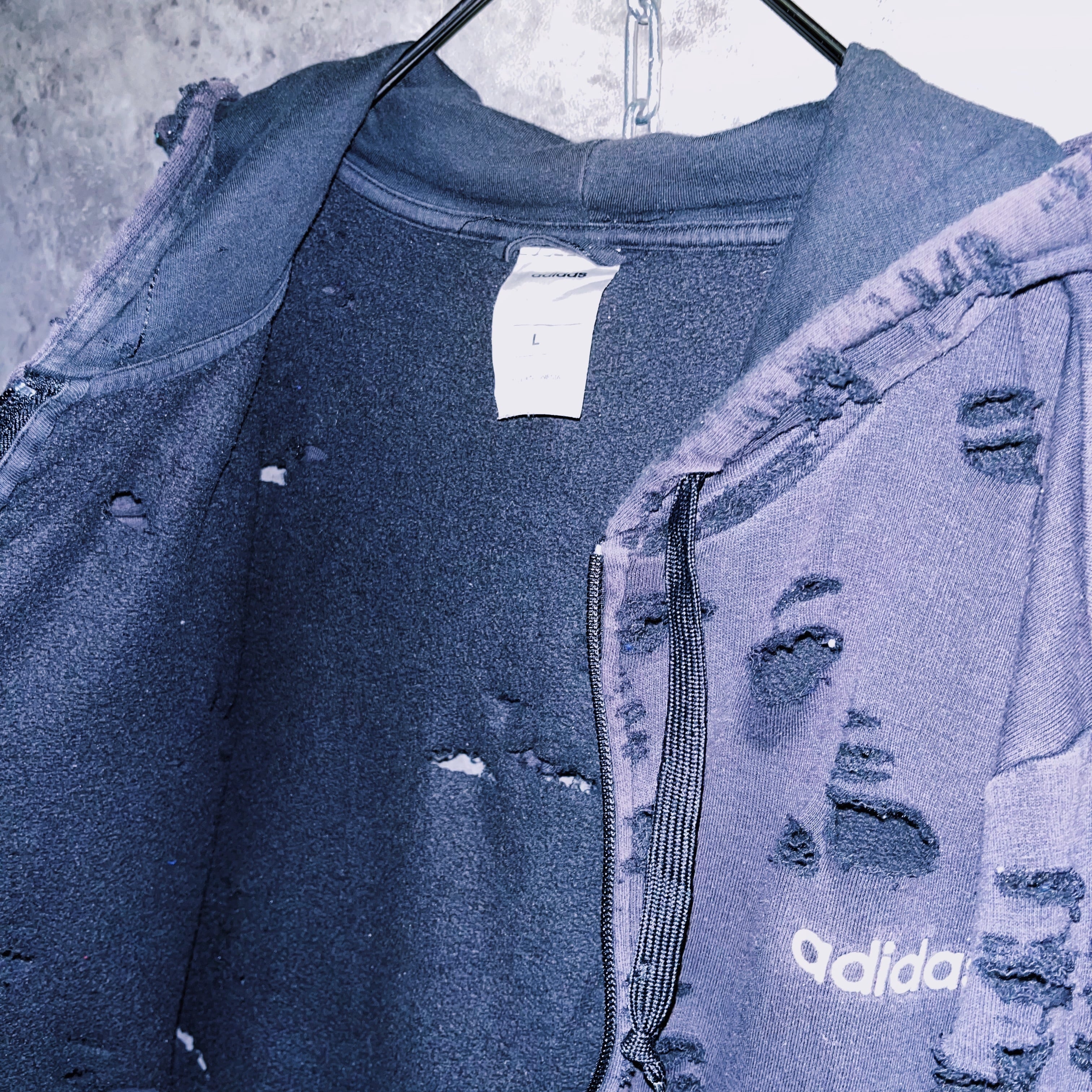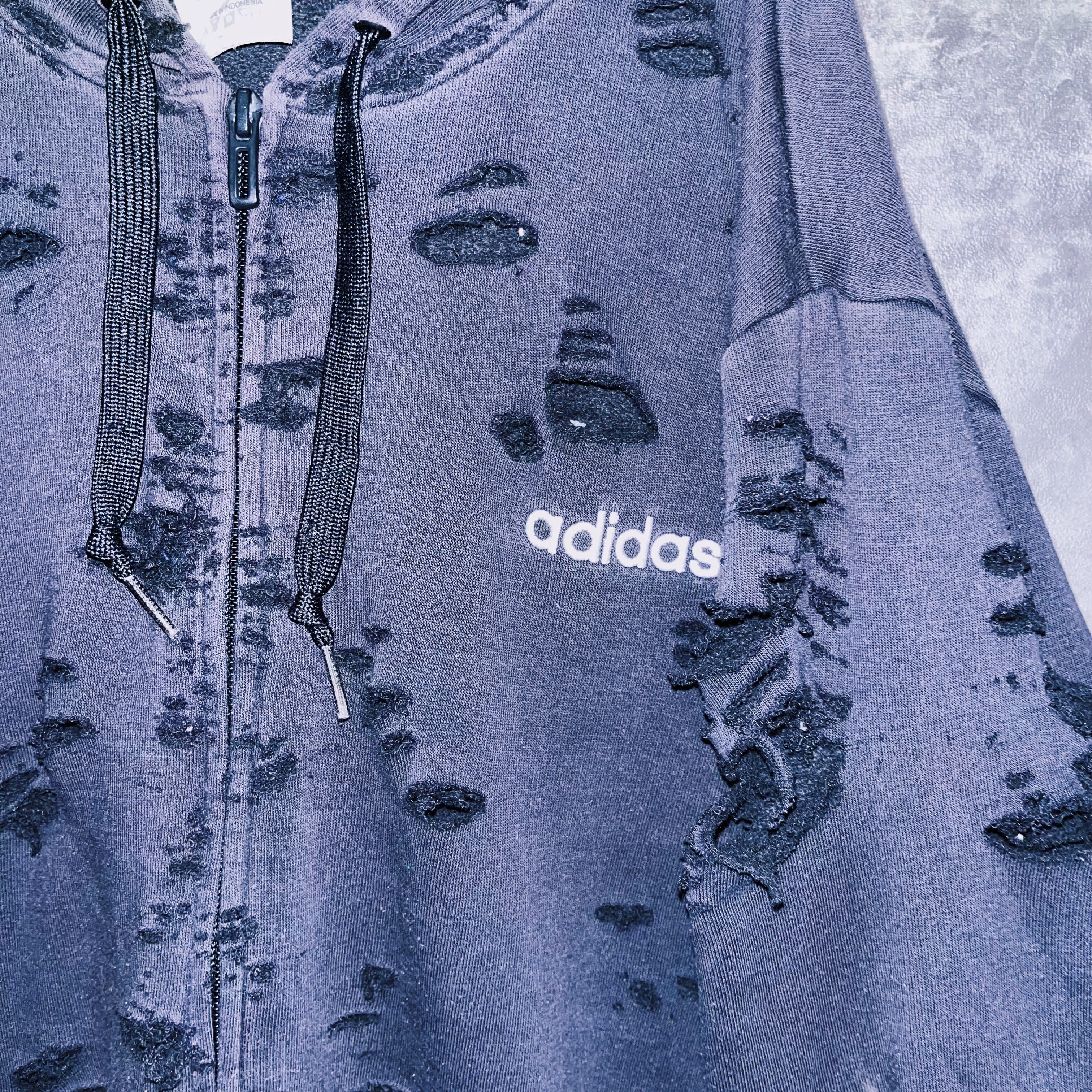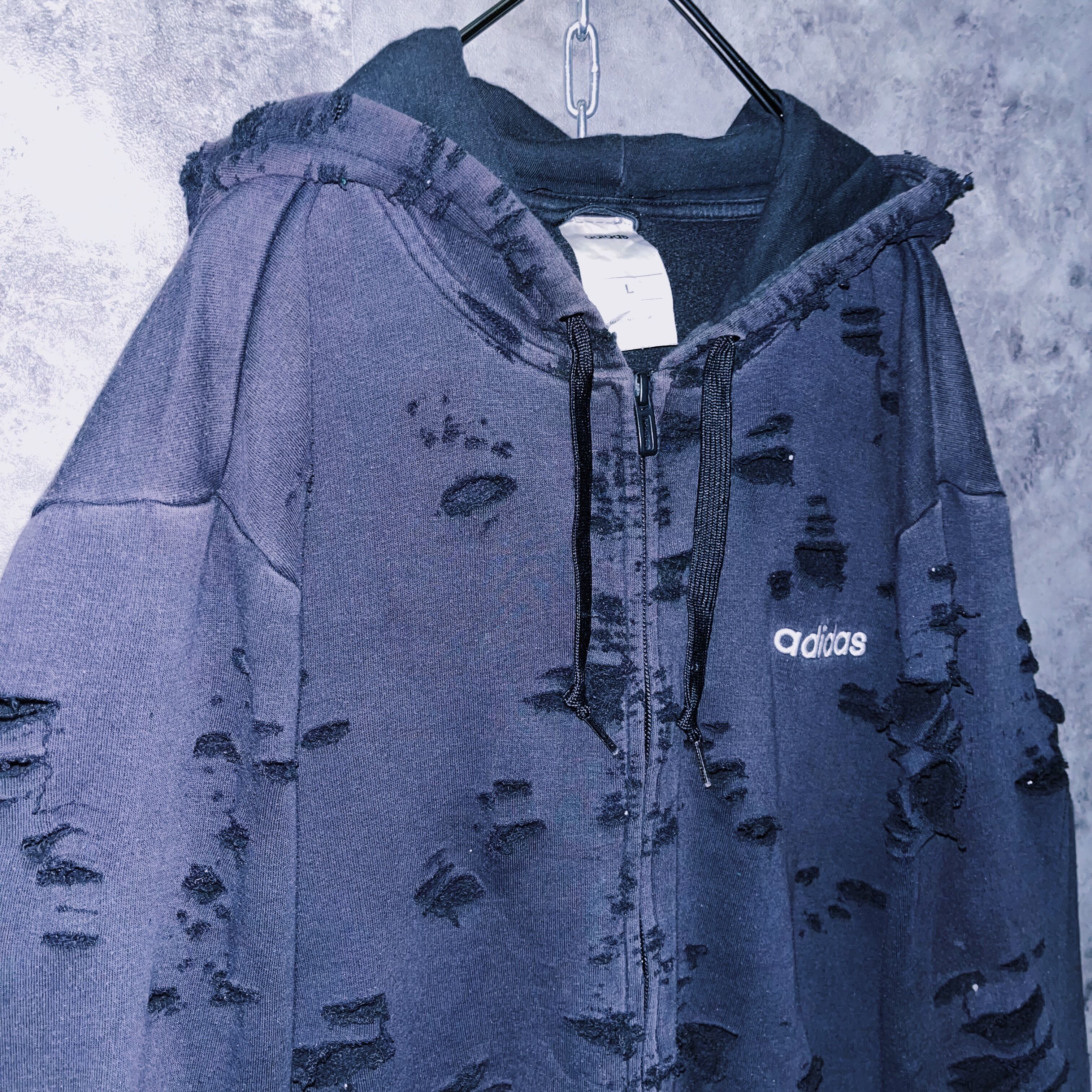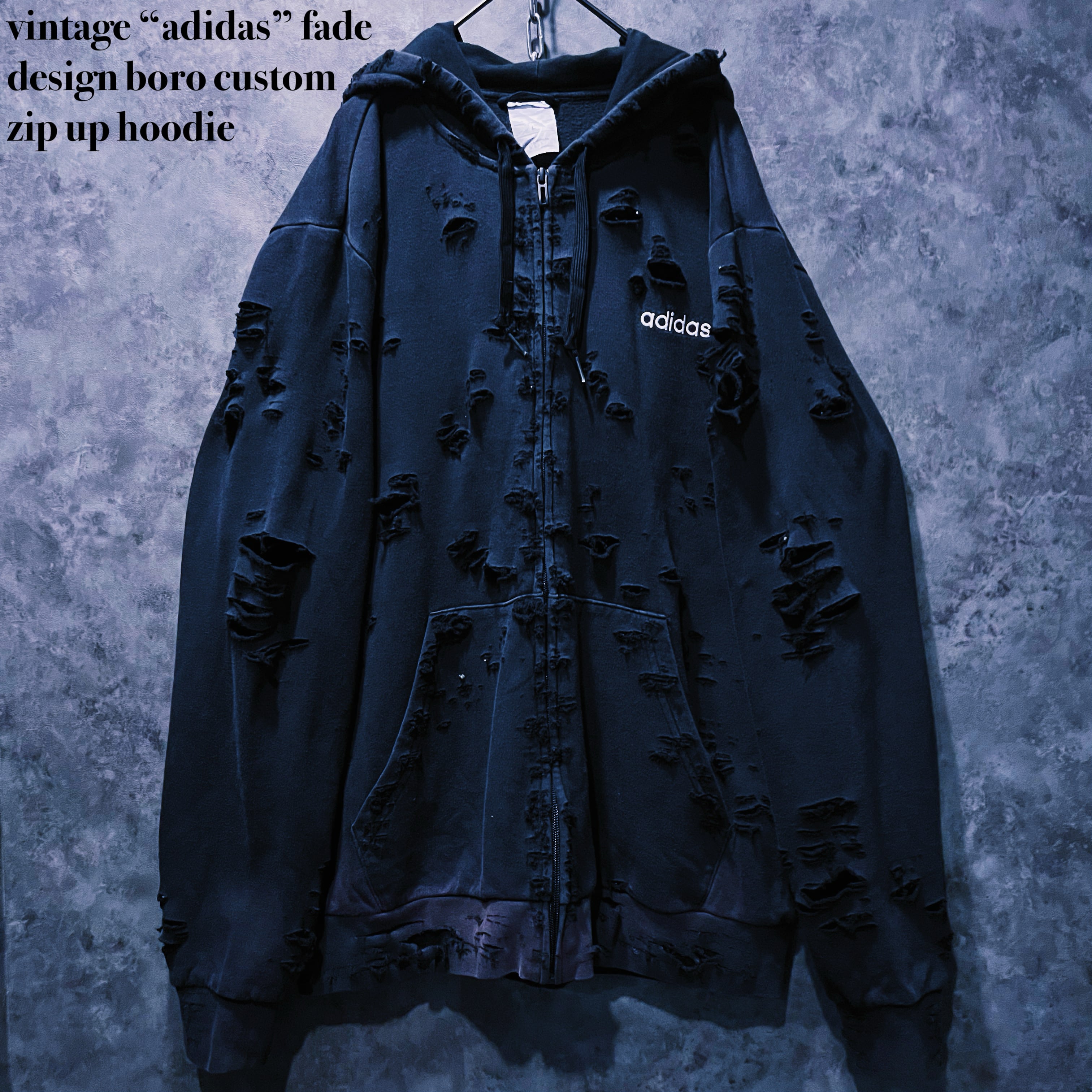 ヴィンテージ“adidas”フェードデザインボロカスタムジップアップフーディ