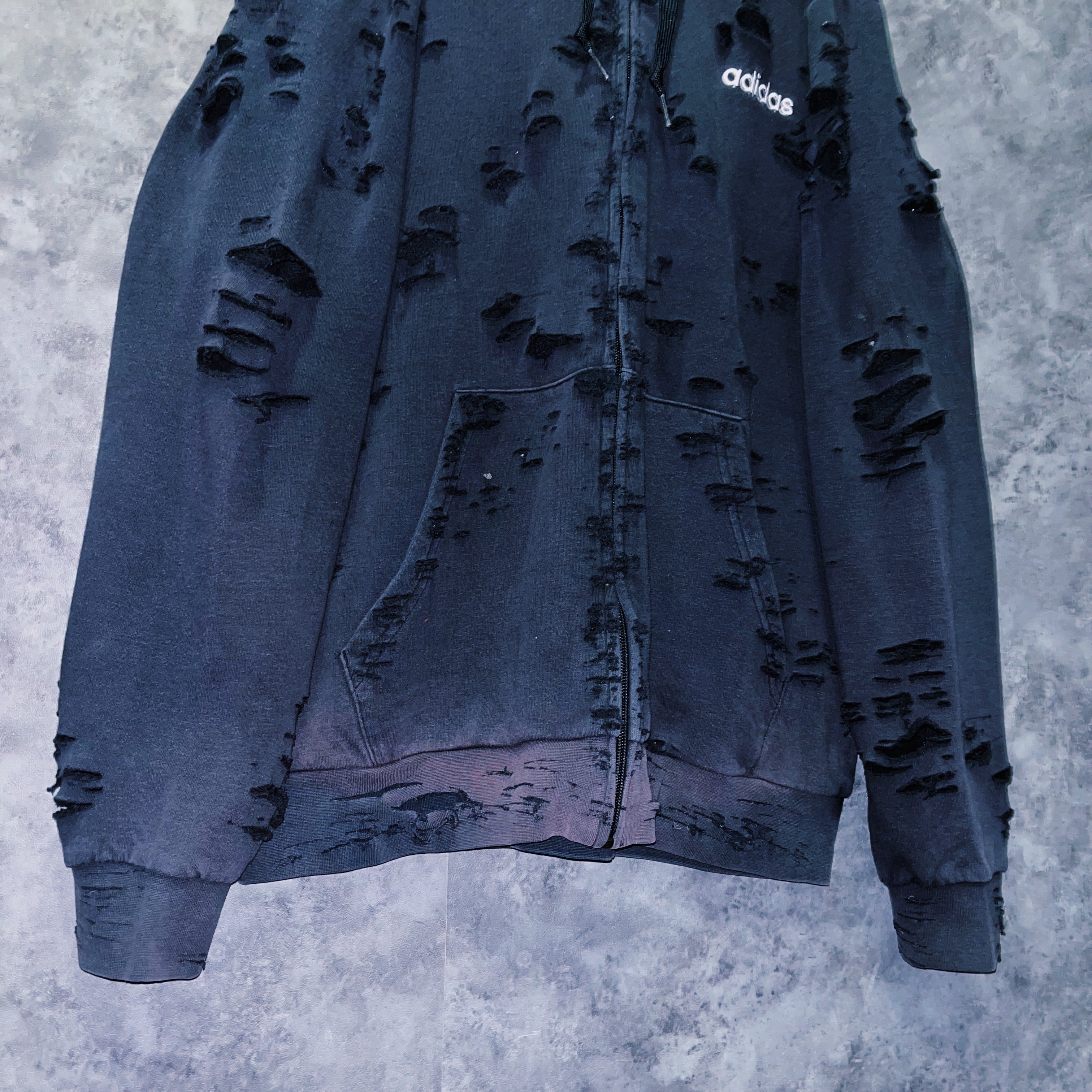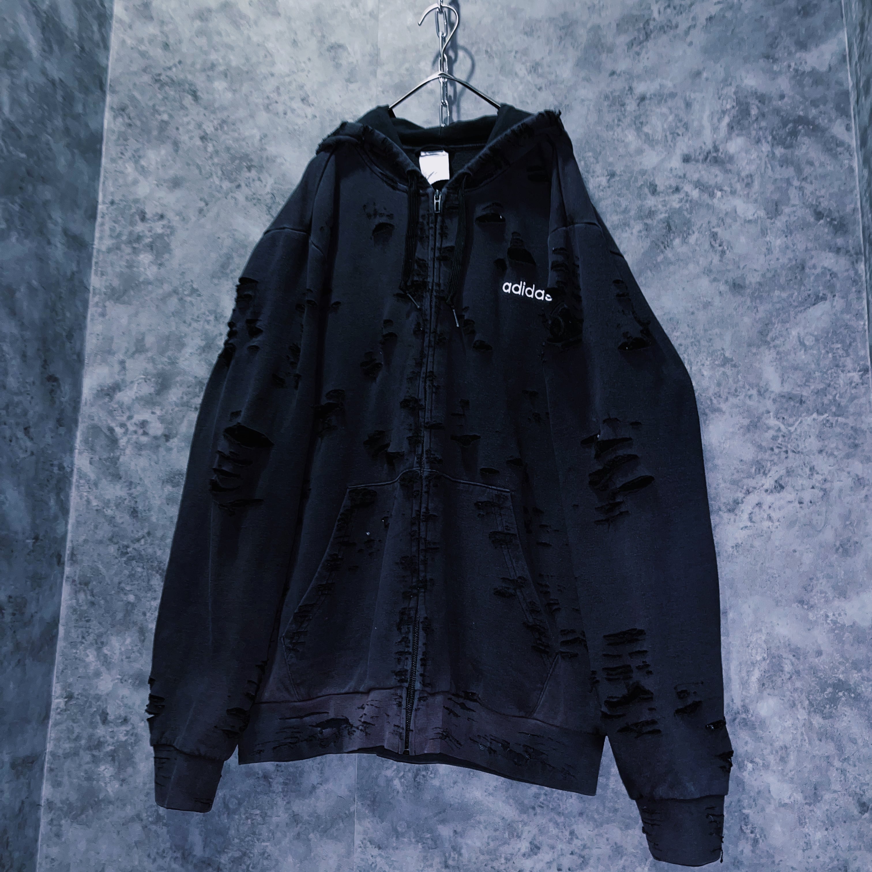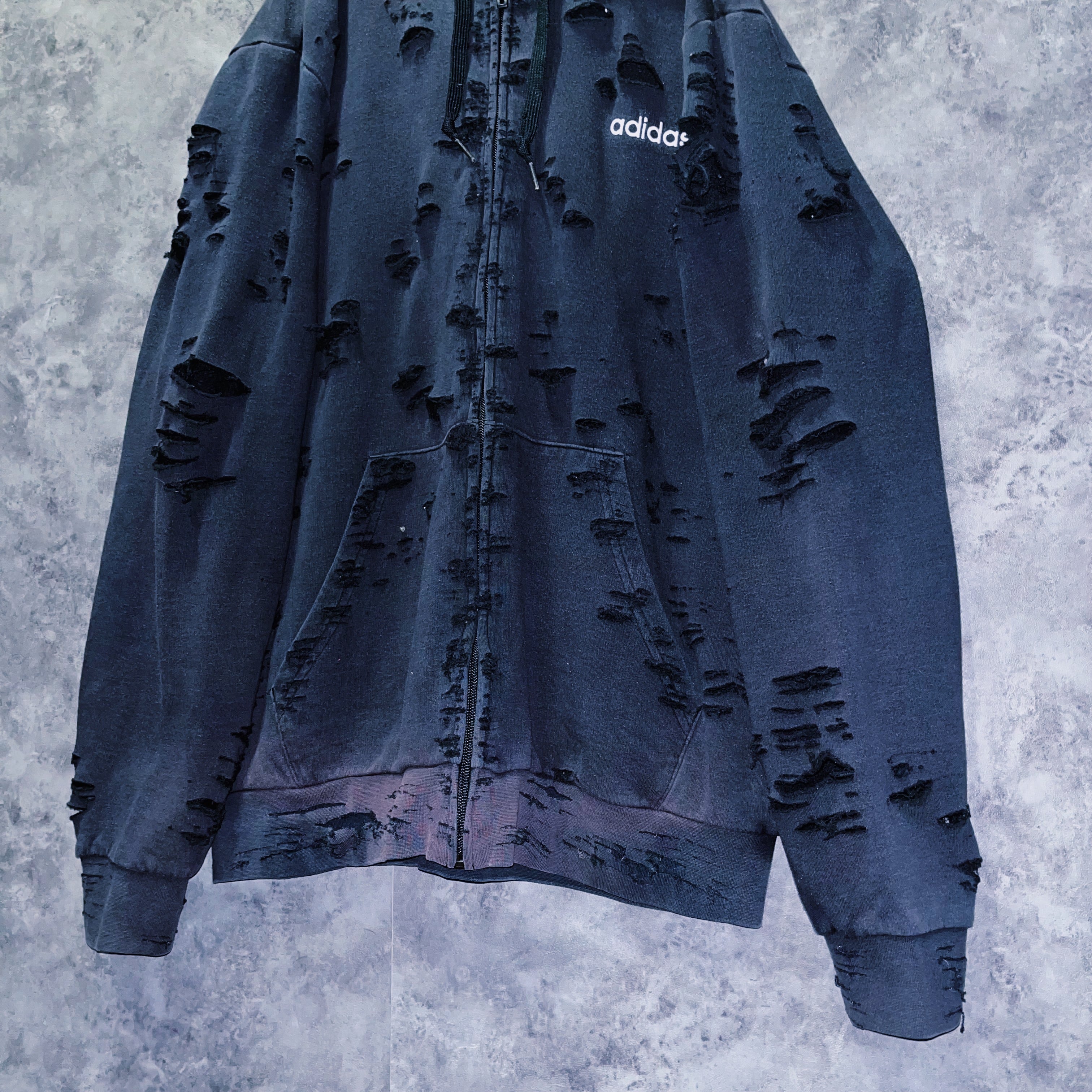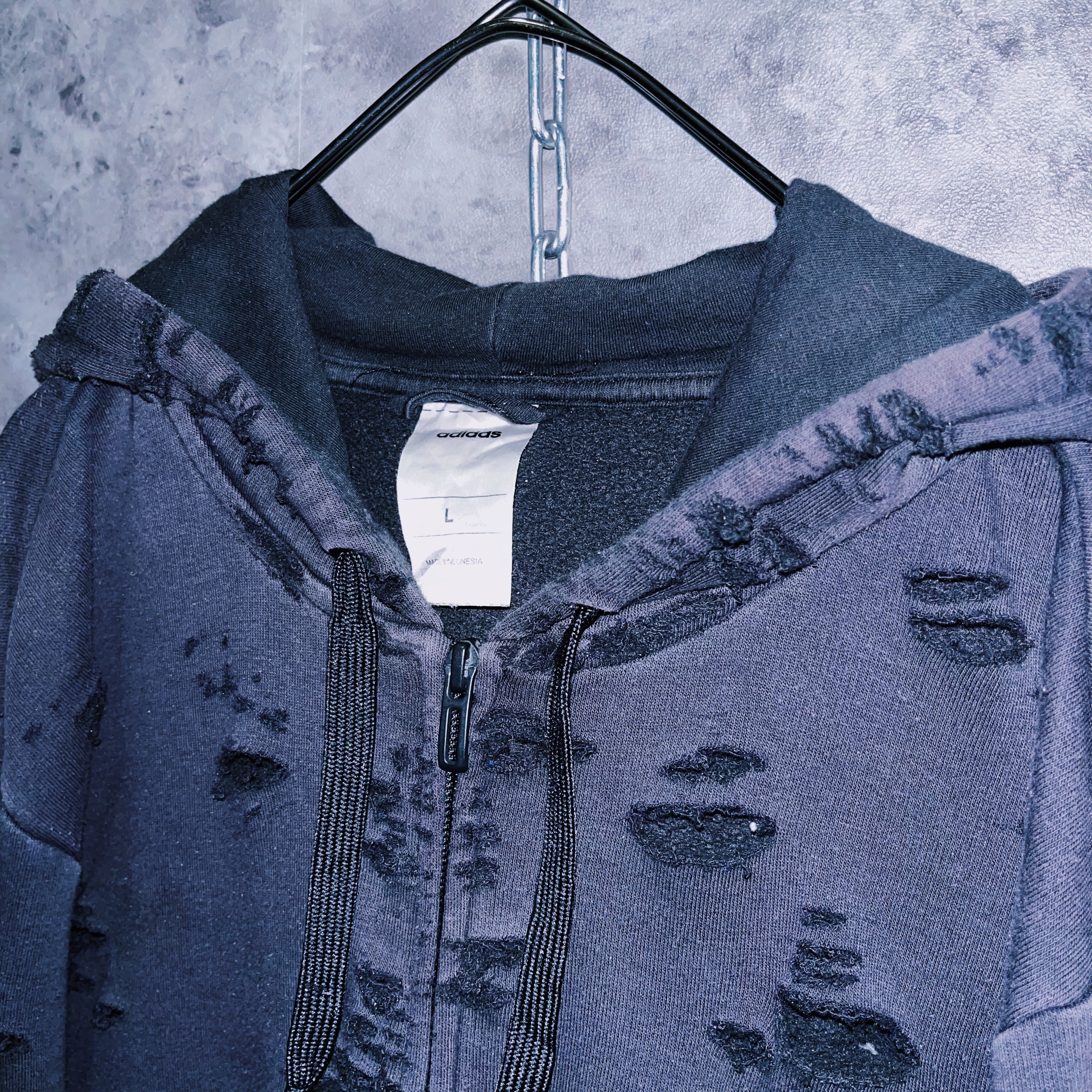 ヴィンテージ“adidas”フェードデザインボロカスタムジップアップフーディ