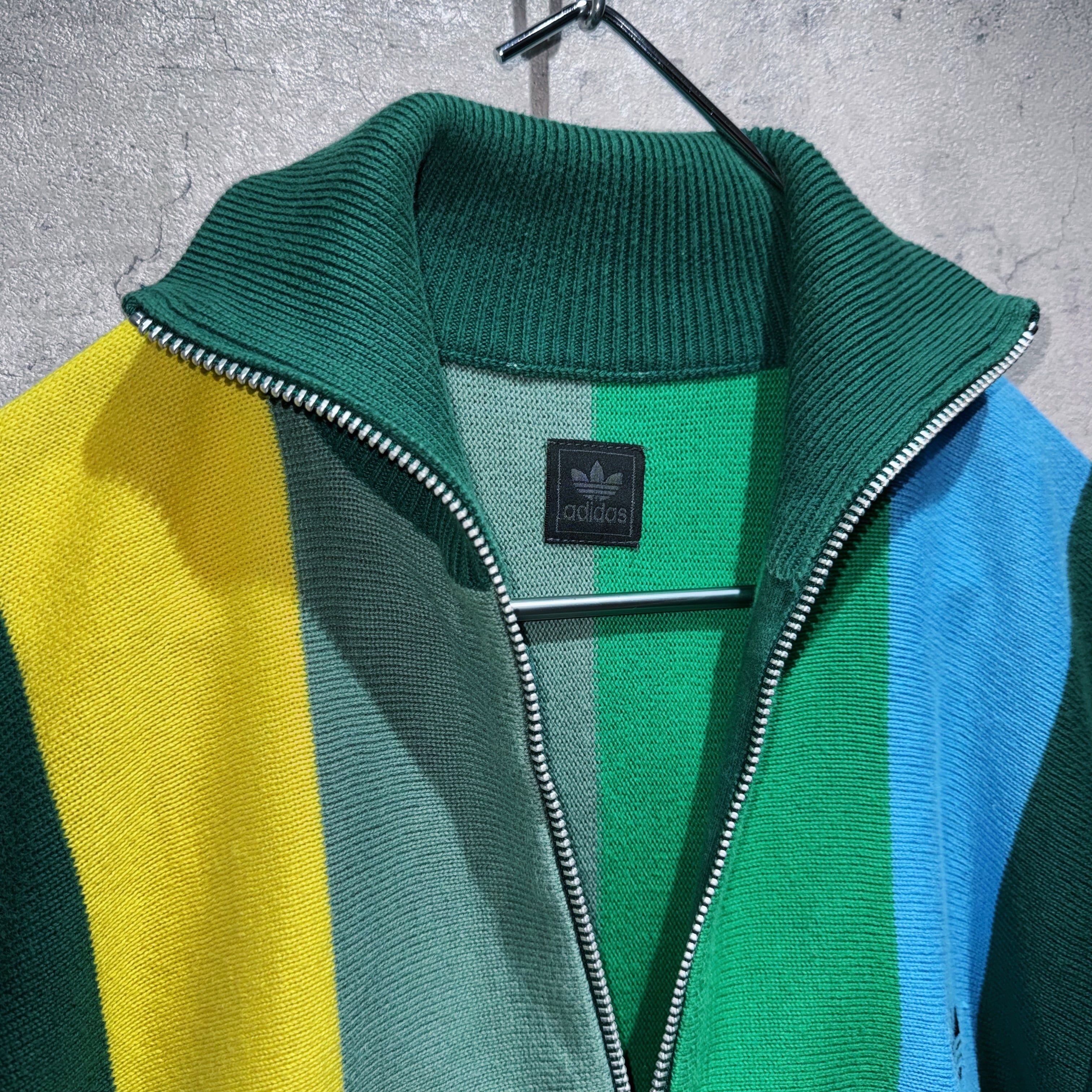 当店の代名詞でもあるヴィンテージアディダス。定番といえばトラックジャケットですが、今回はなかなかお目にかかれないニットトラックジャケットをご紹介。