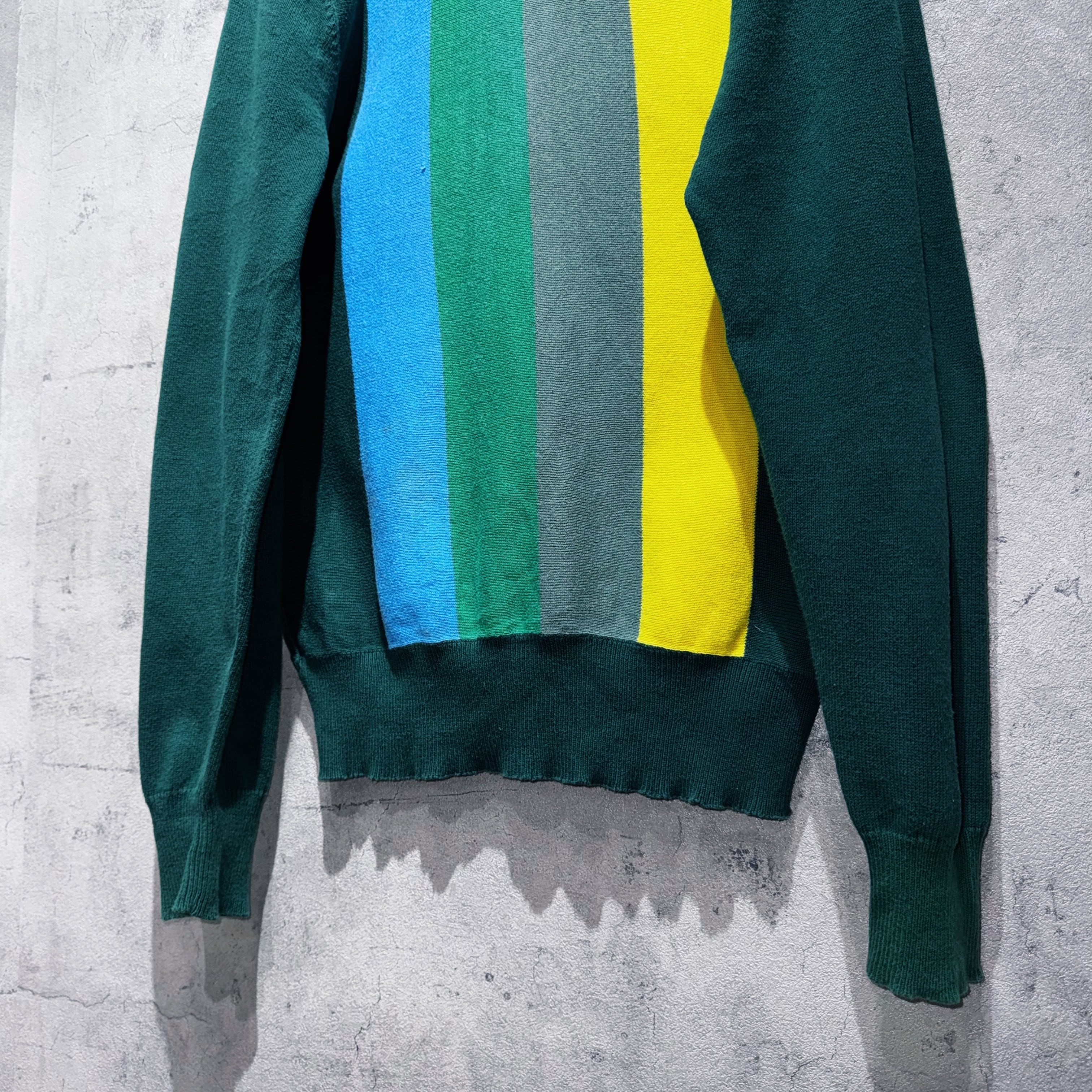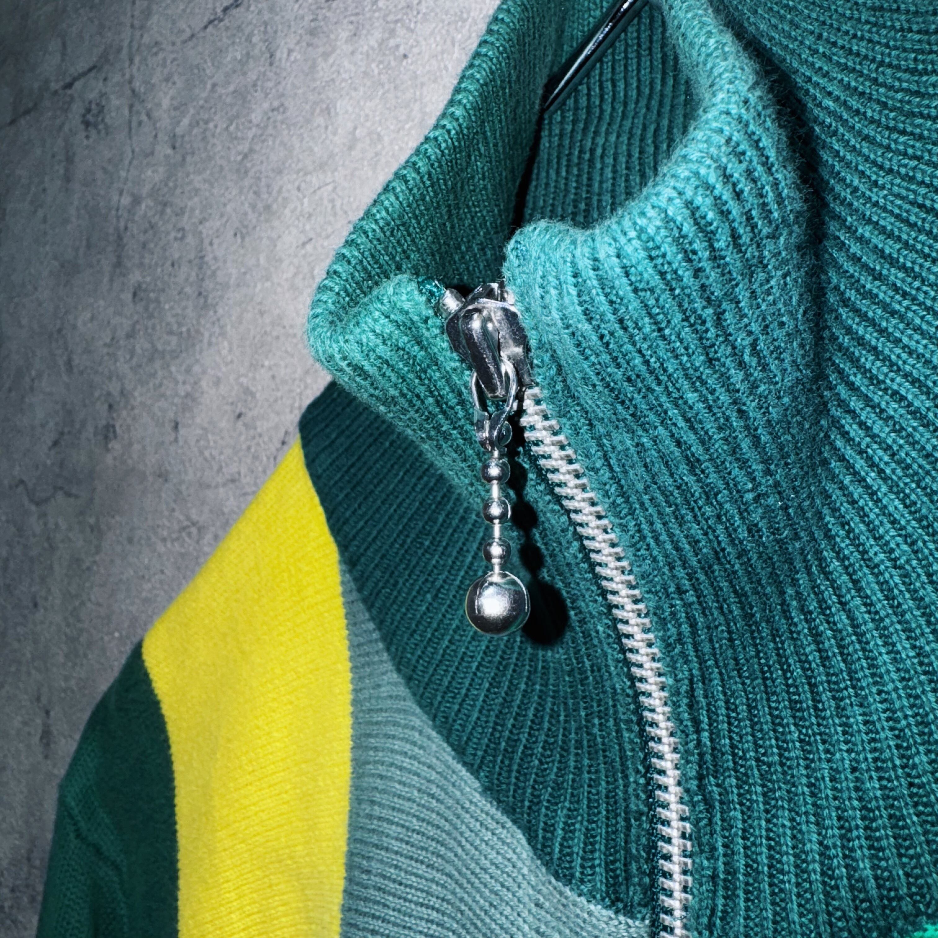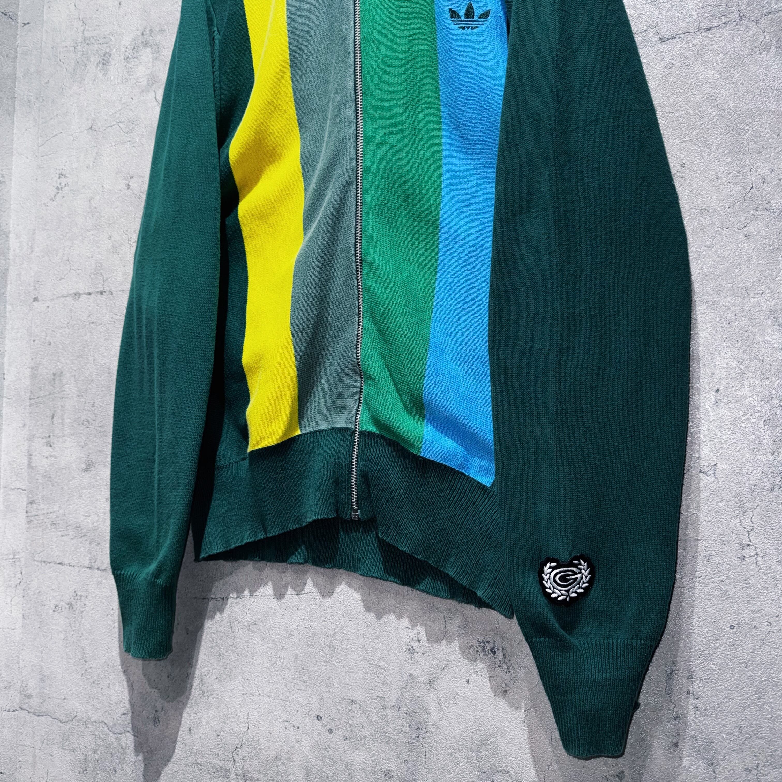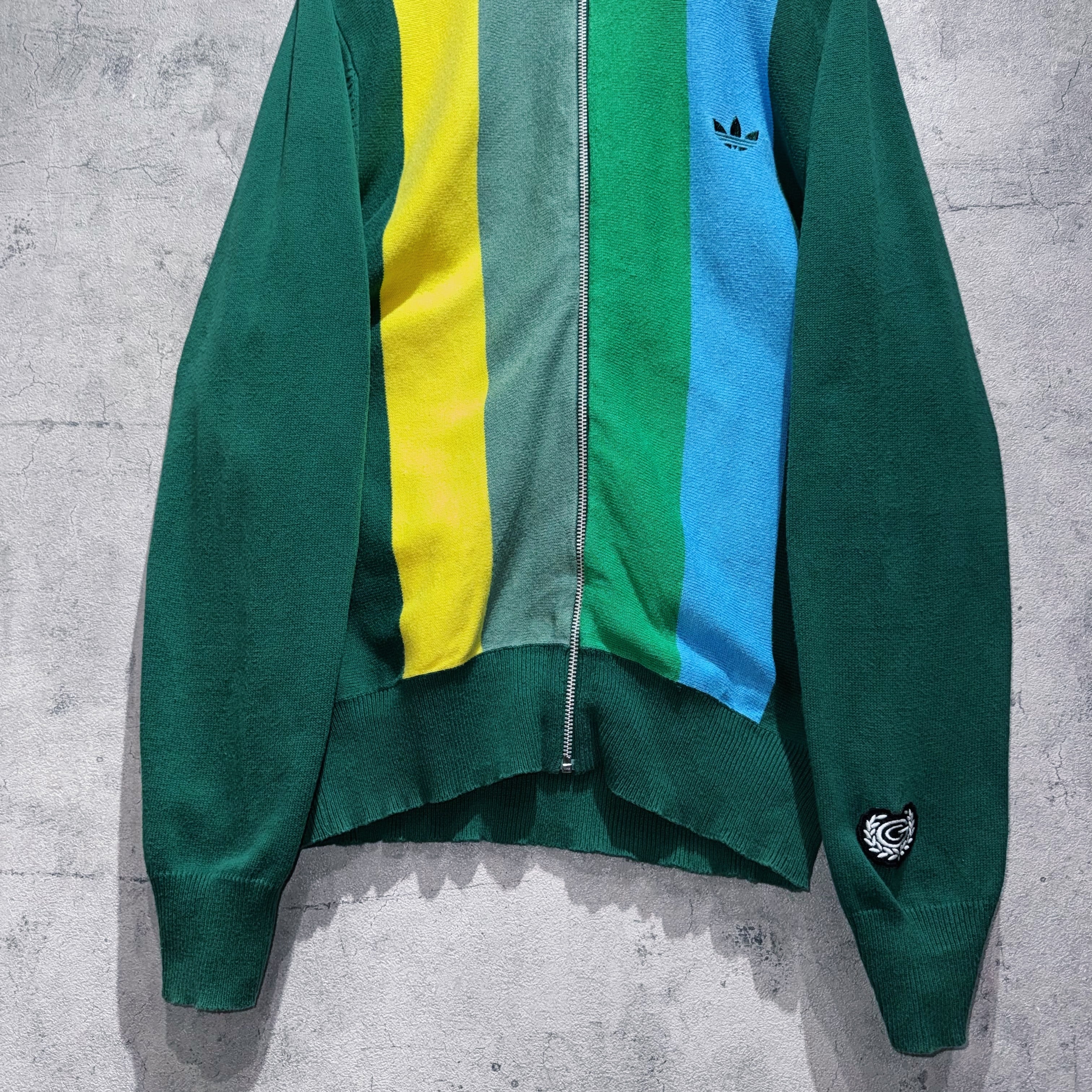 グリーン、ロイヤルグリーン、モスグリーン、ブルー、イエローの5色がスイッチングしたカラーリングが素晴らしいニットトラックジャケット。