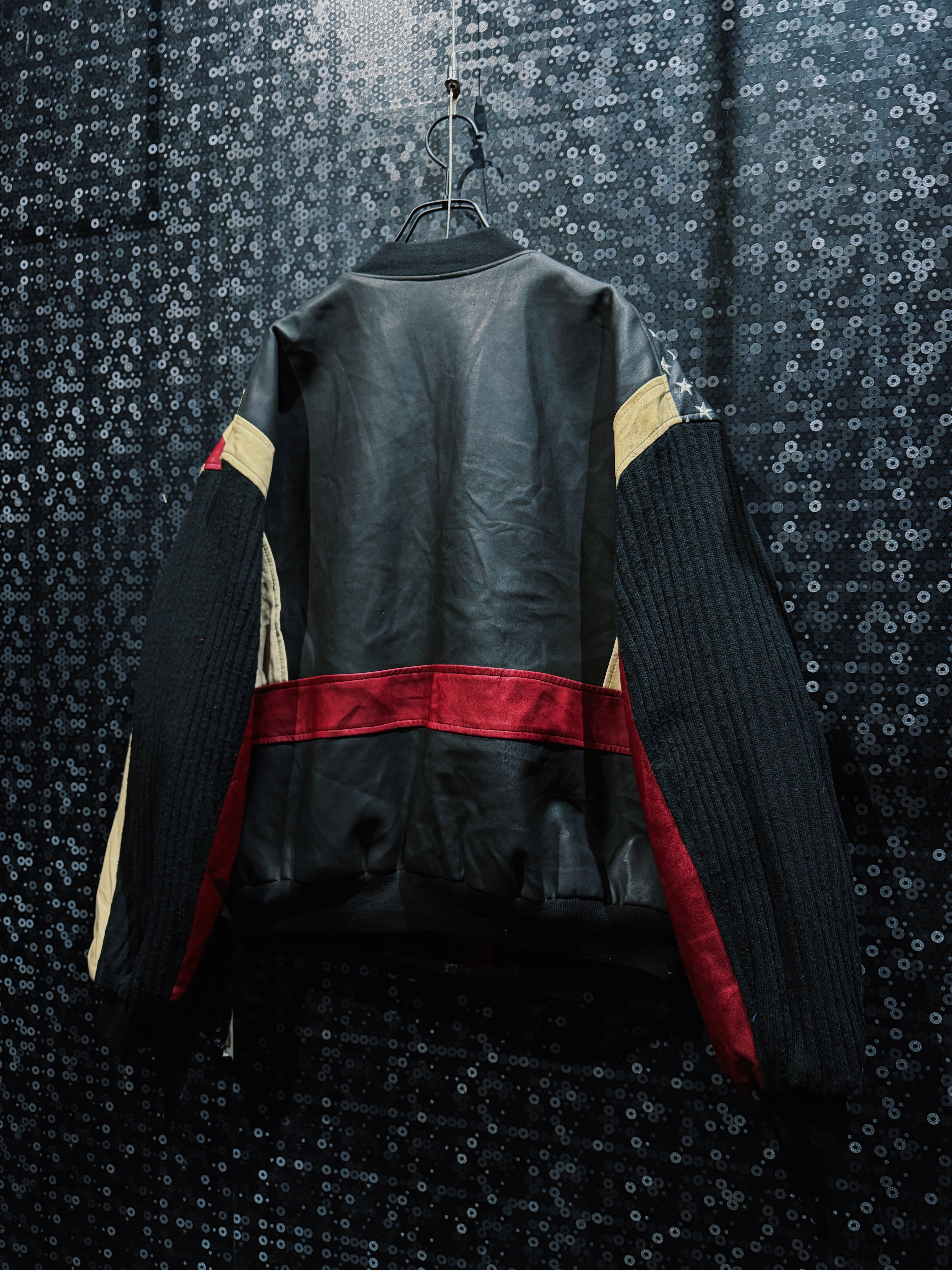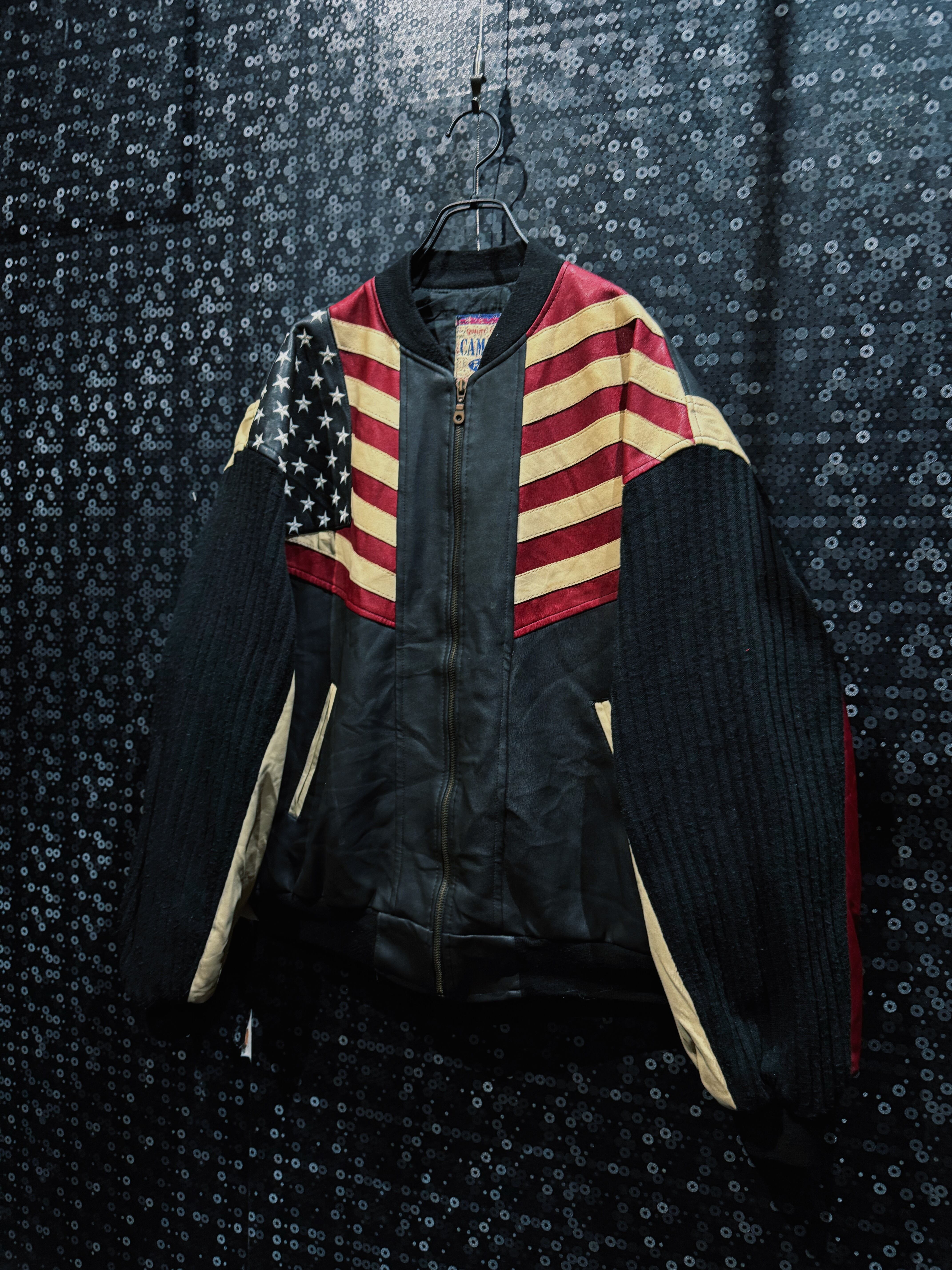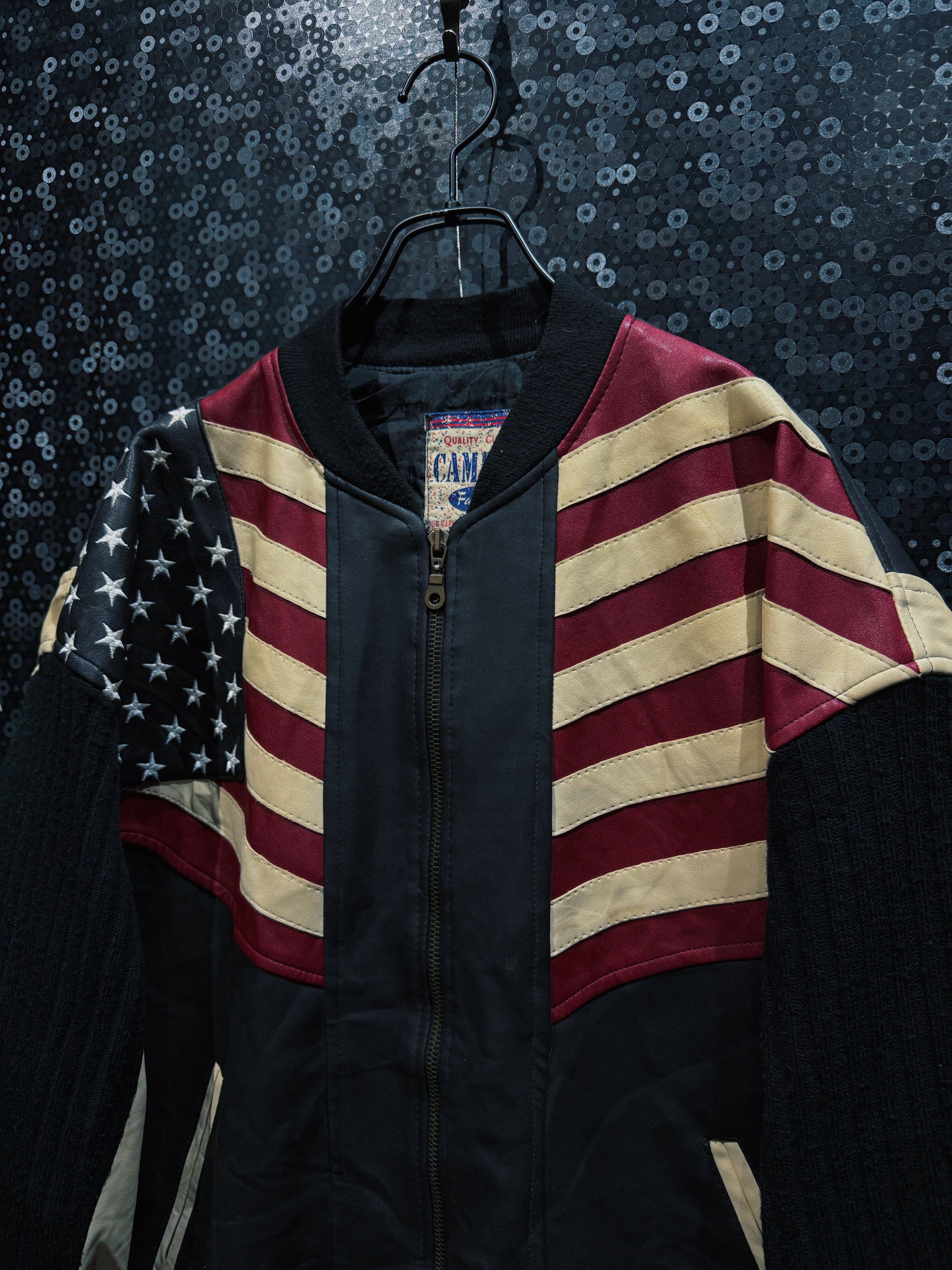 【ÆIEM】“CAMPACT” vintage American flag leather × knit switching bomber jacket