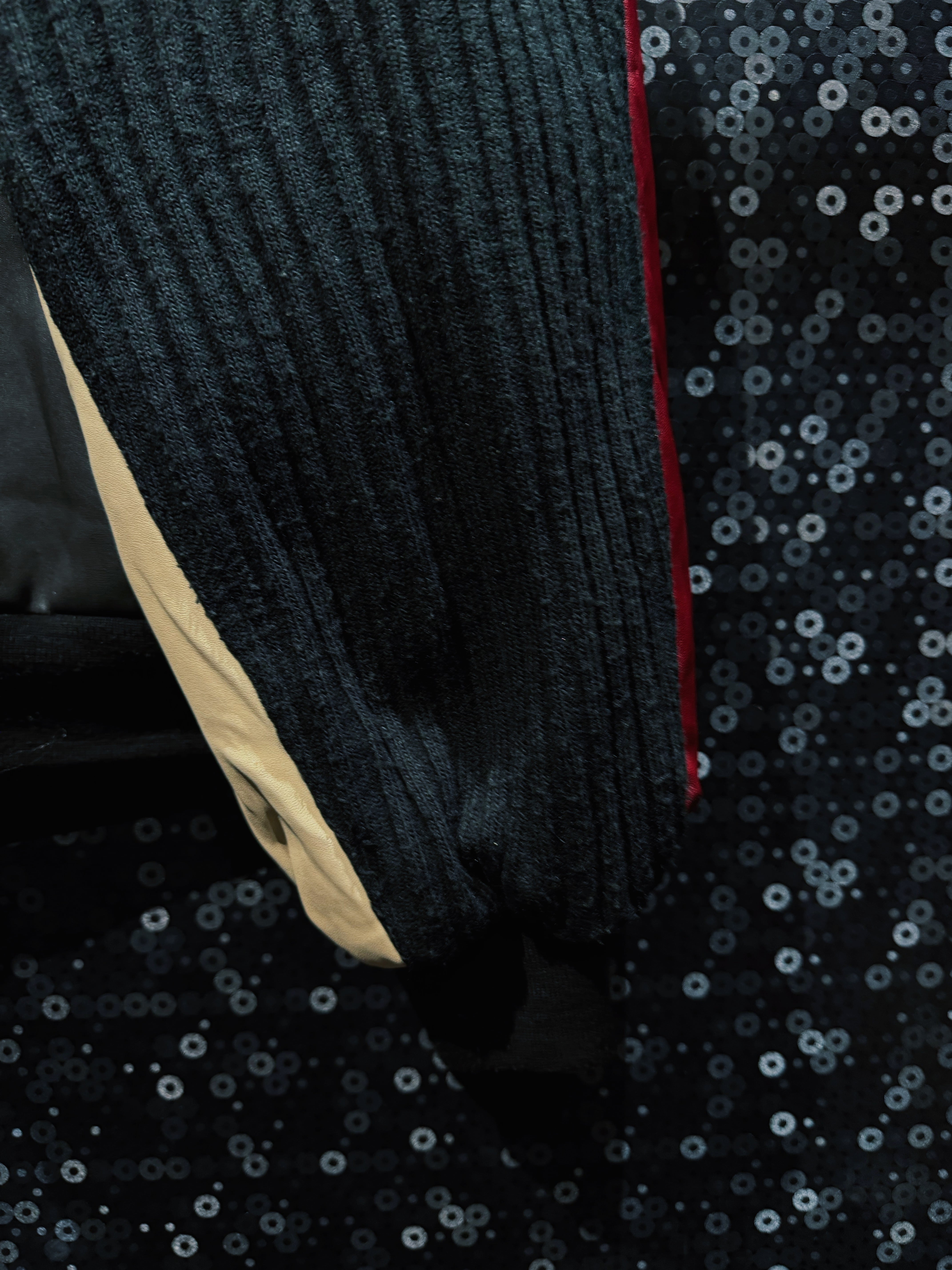 袖部分にはリブニットを採用したレザー×ニットのスイッチング仕様で、視覚的なコントラストと可動性を両立。インナーはキルティングライニングとなっており、防寒性と重量感のあるクラシックな着心地を備えている。