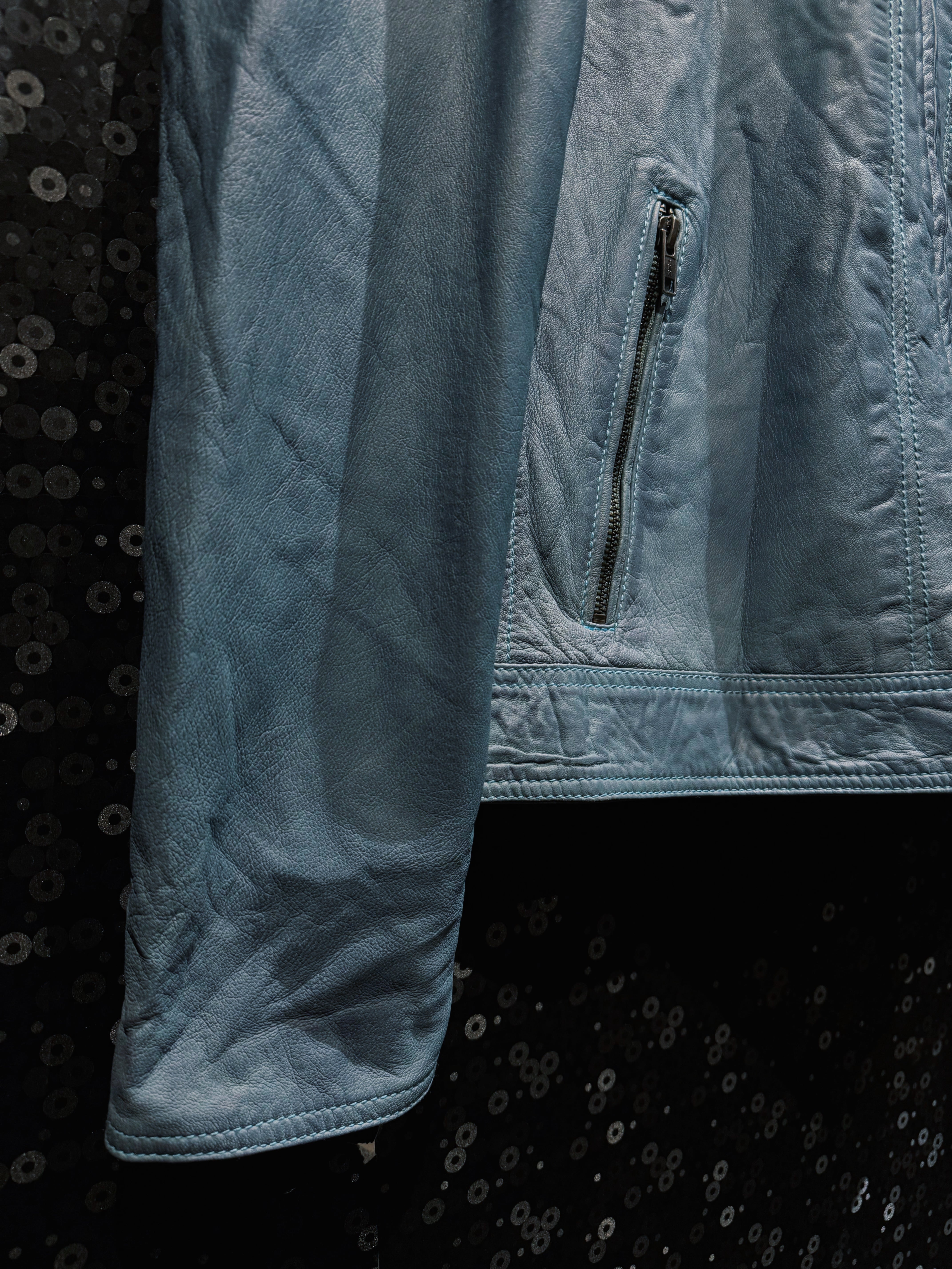【ÆIEM】"max"vintage pale blue leather stand collar riders jacket