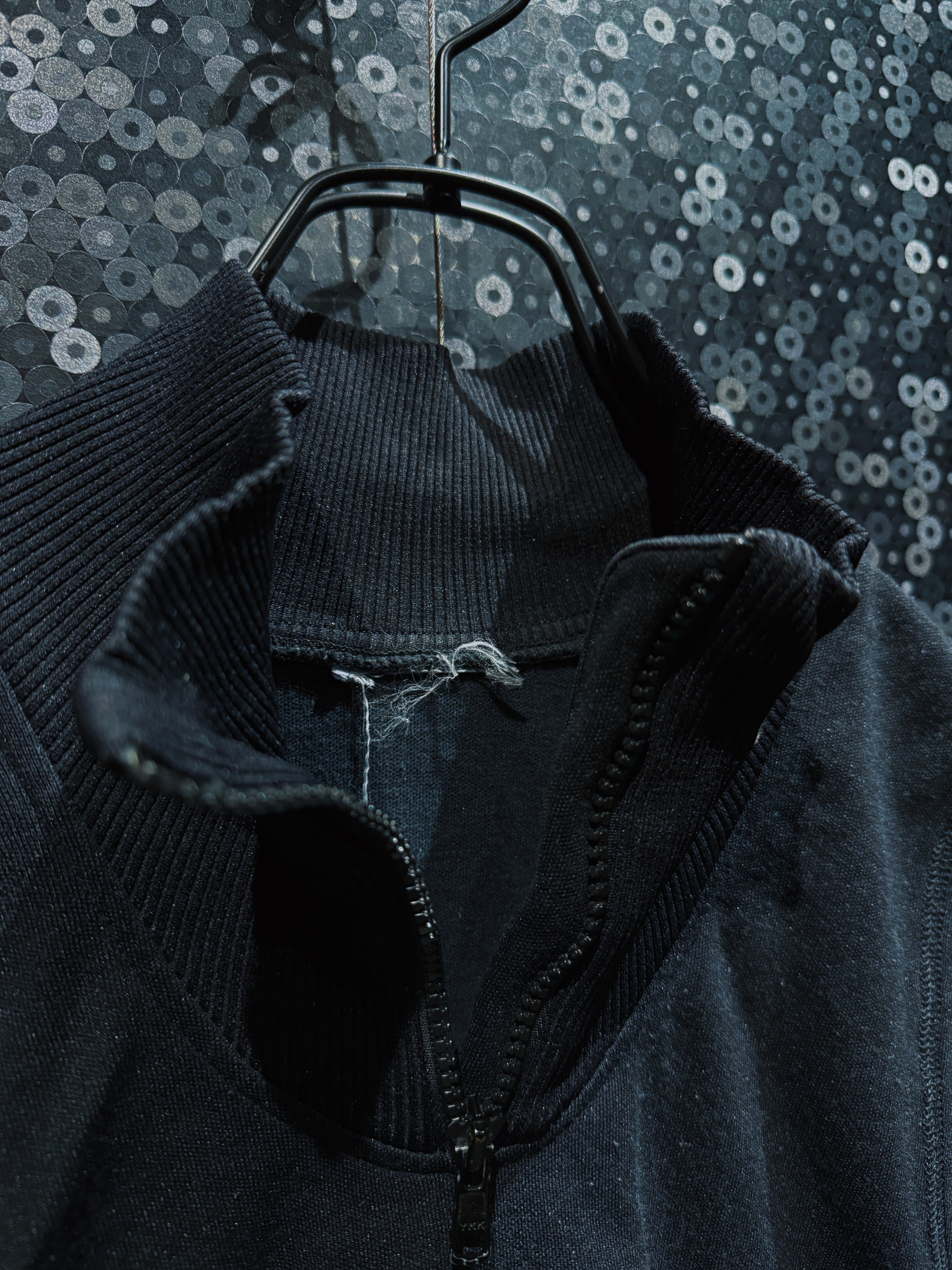 首元はハーフジップ仕様で、立ち襟のボリュームと開閉による表情変化も楽しめる。