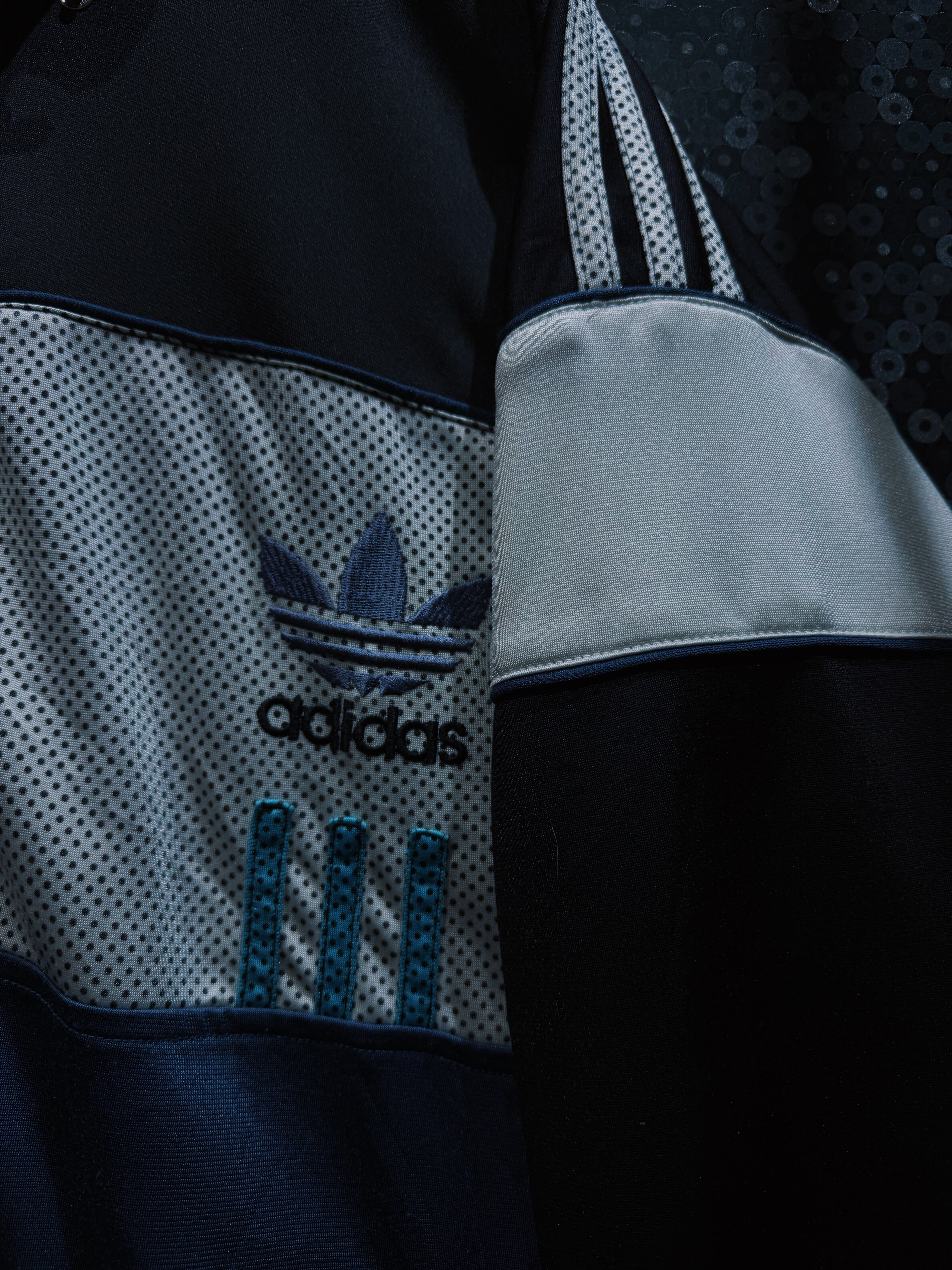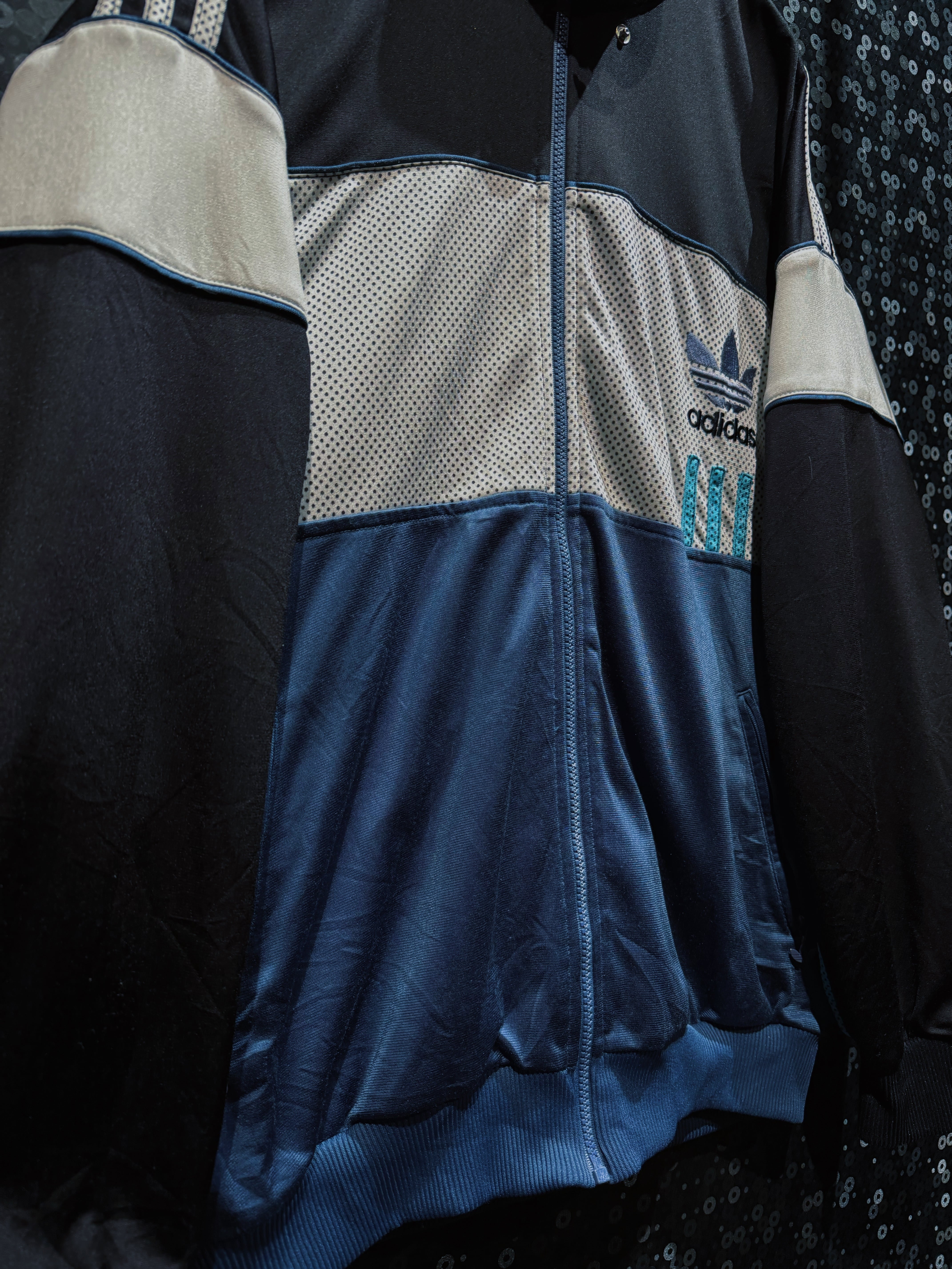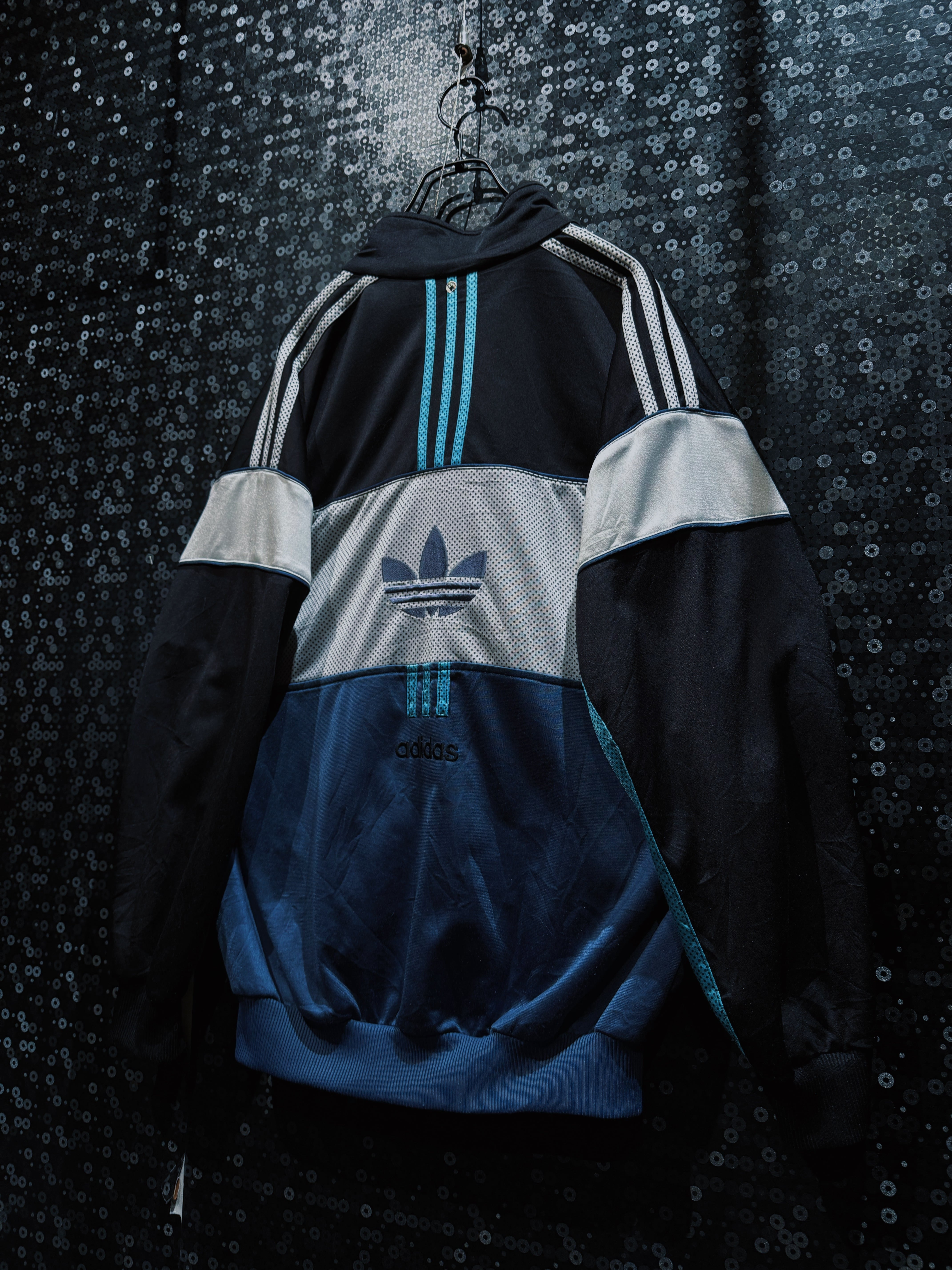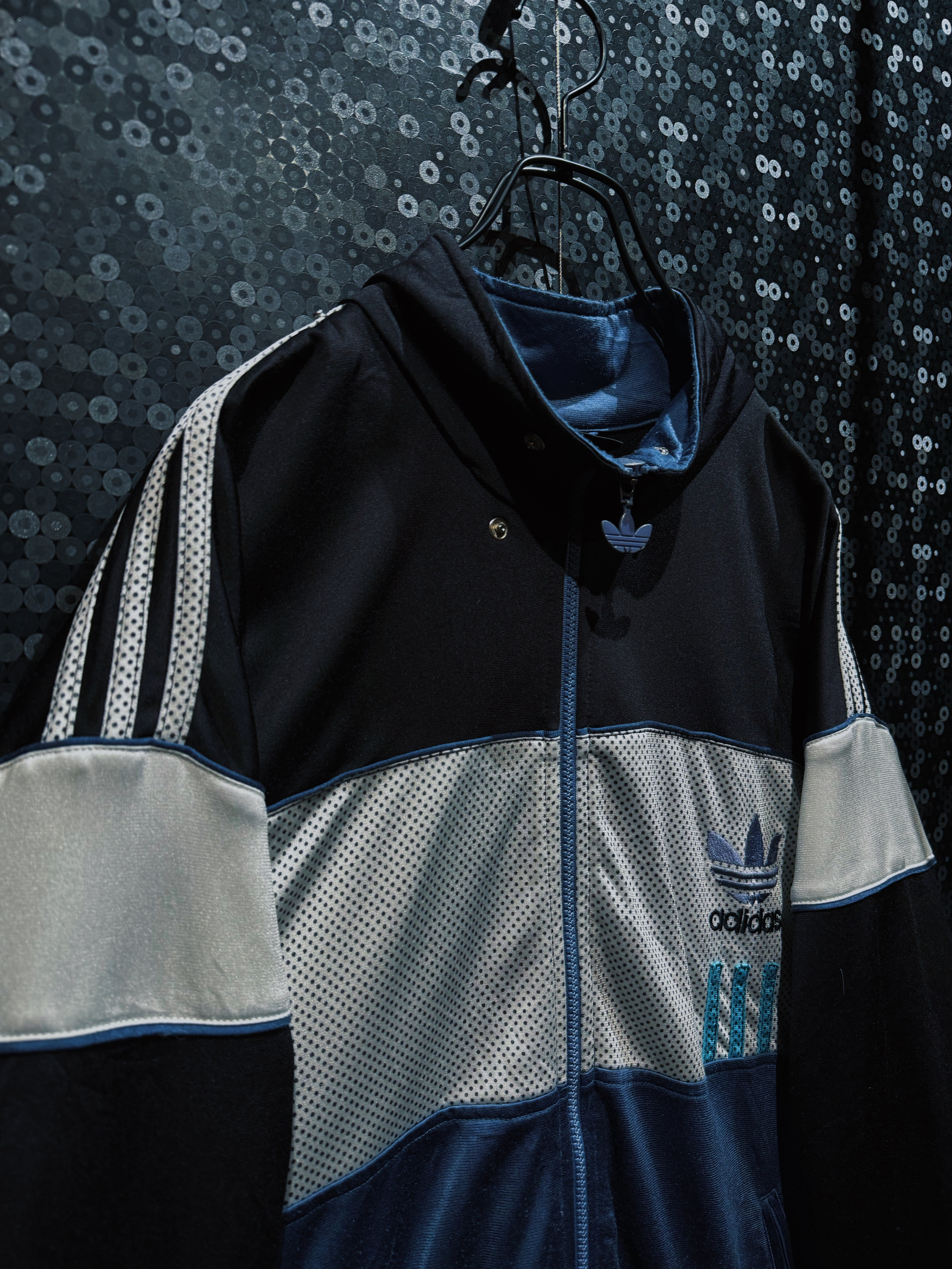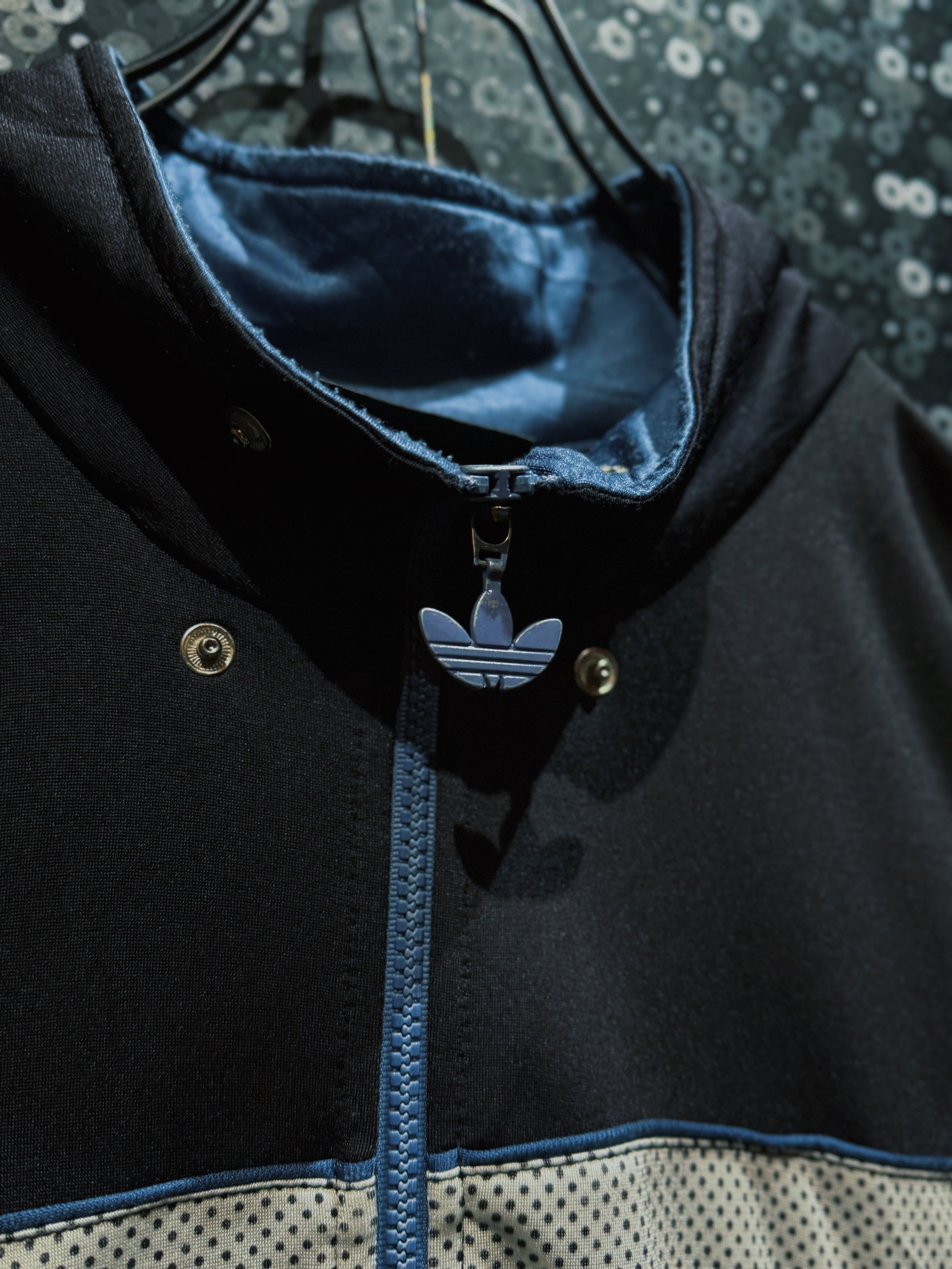 ブラックを基調に、メッシュ素材と光沢感のあるファブリックを大胆に切り替えた、adidas originalsの個性が強く表れたトラックジャケット。