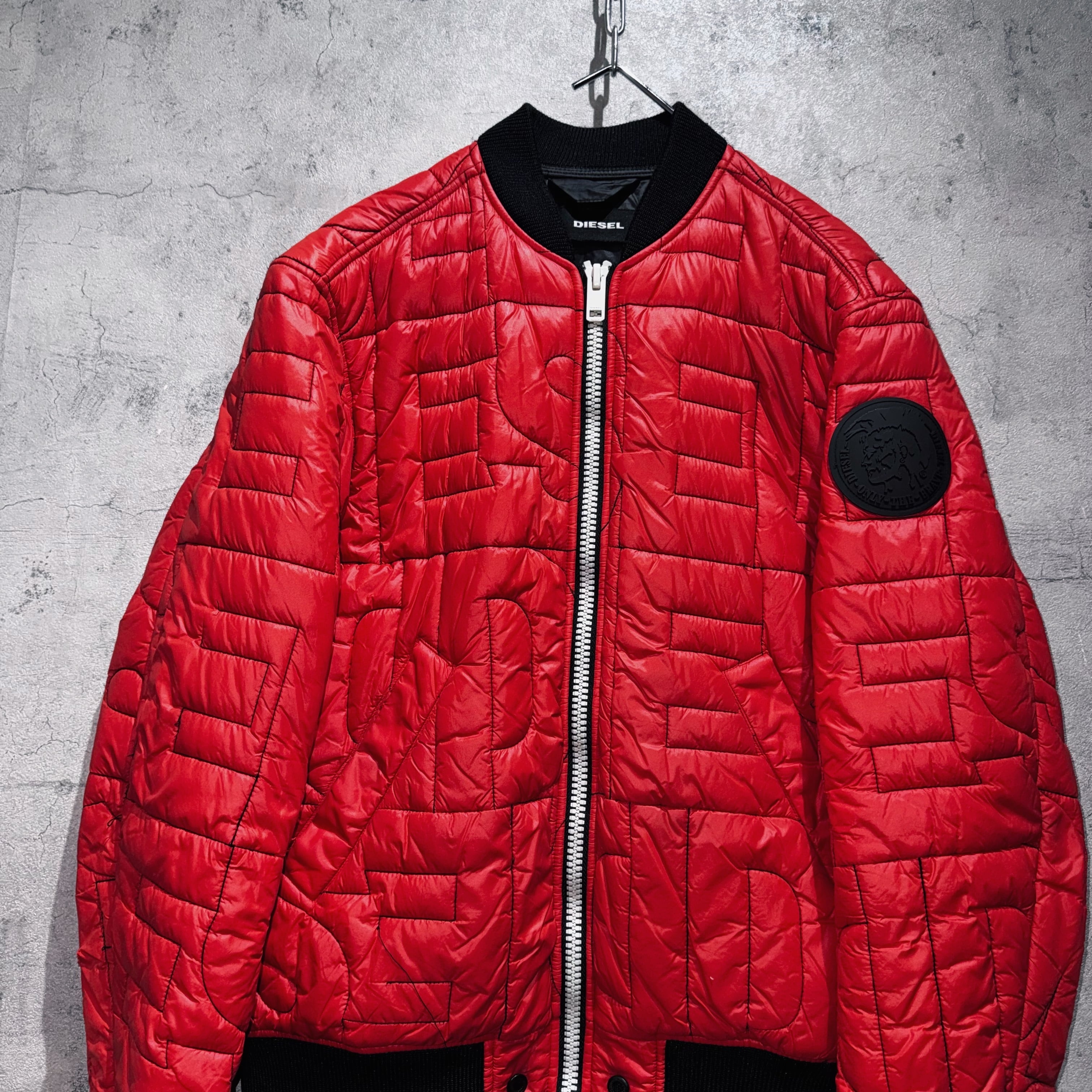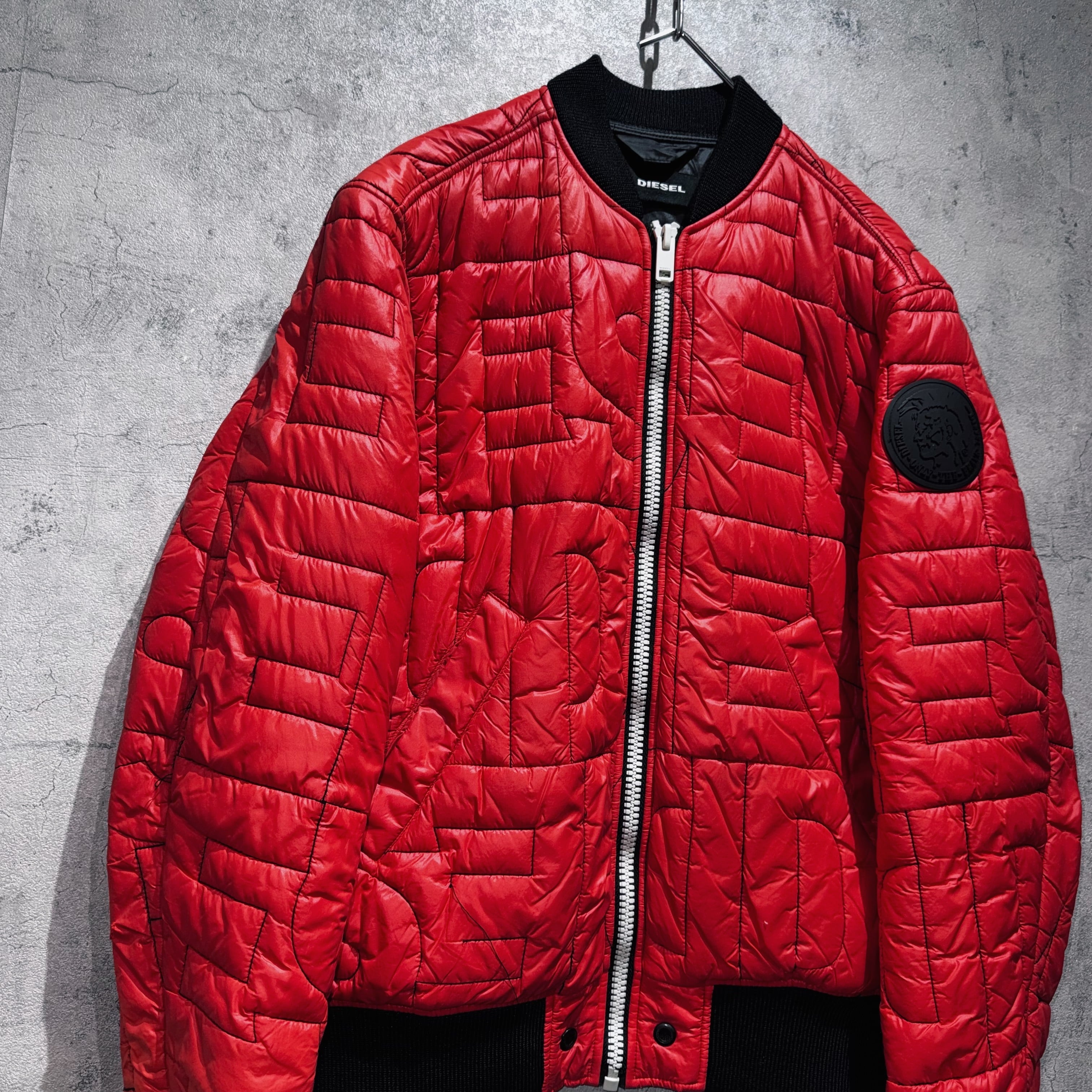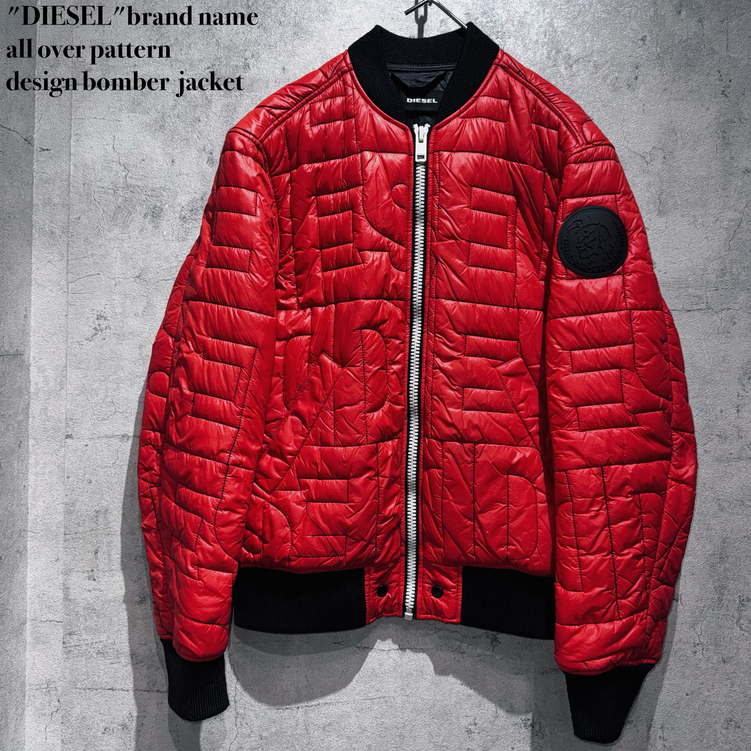 "DIESEL"brand name all over pattern design bomber jacket