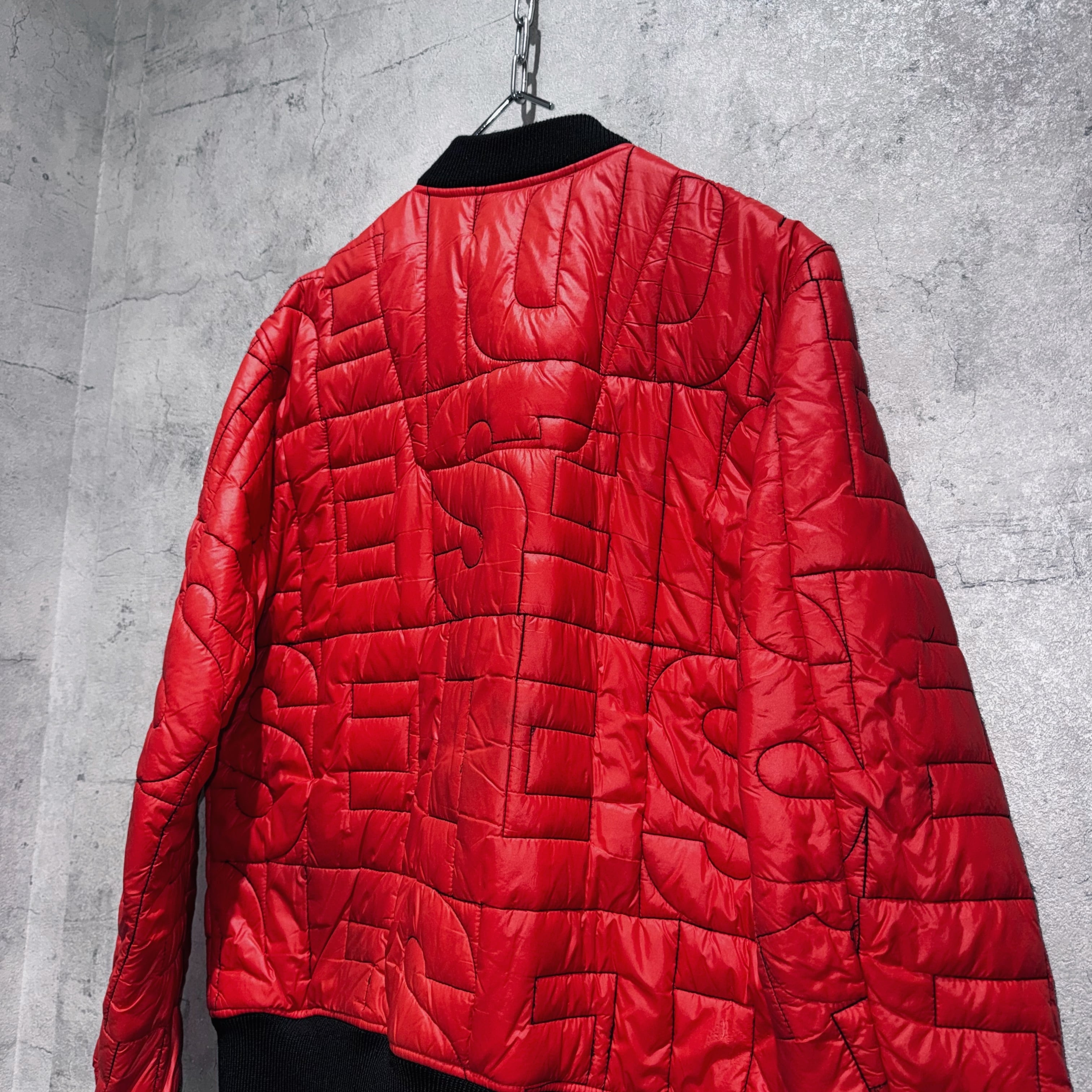 写真からでも伝わってくる力強いクリムゾンレッドを身に纏ったボンバージャケット。