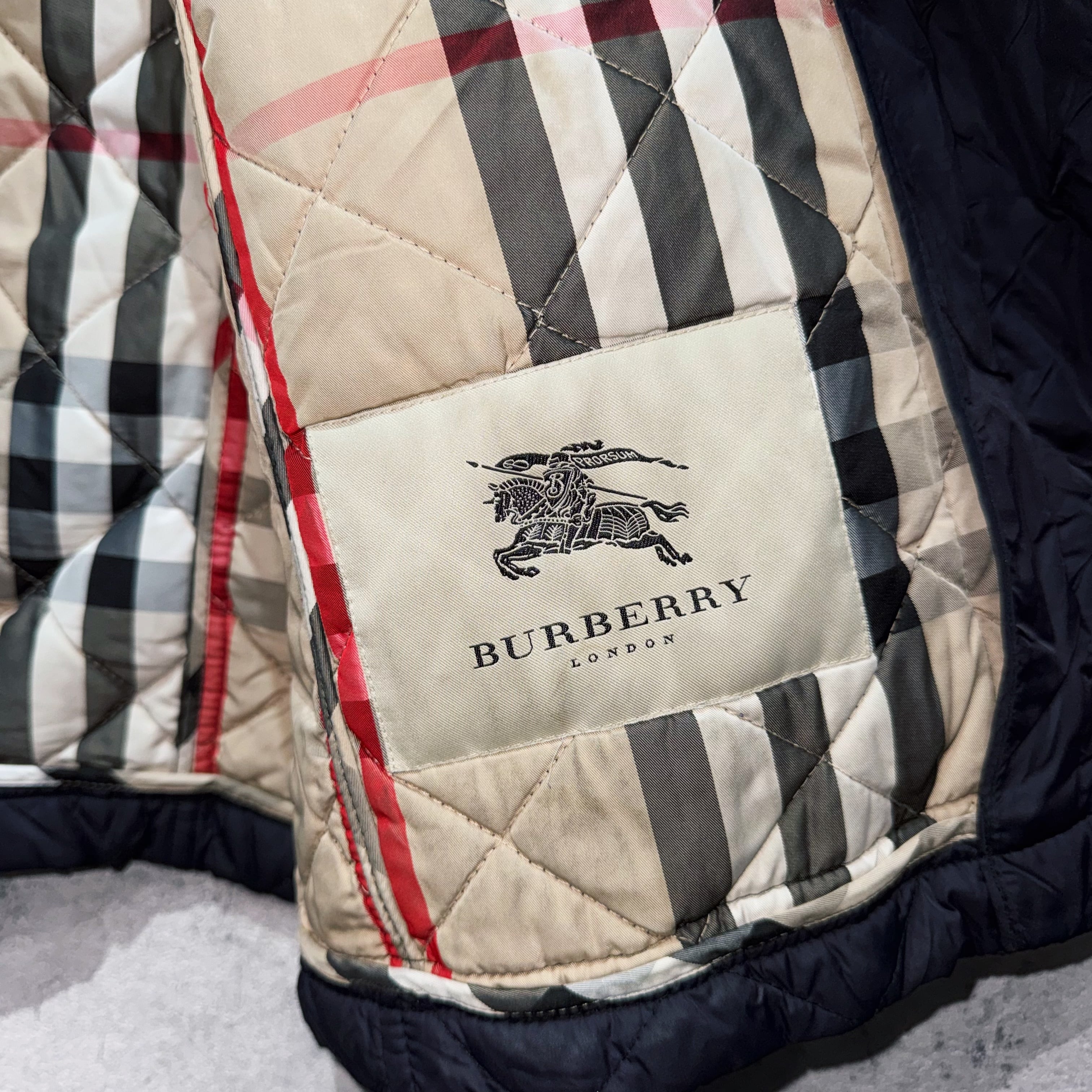 裏地にはバーバリーといえばのノバチェックをあしらい隙がありませんね。非常に軽量ながら高い保温性があるのも魅力的。