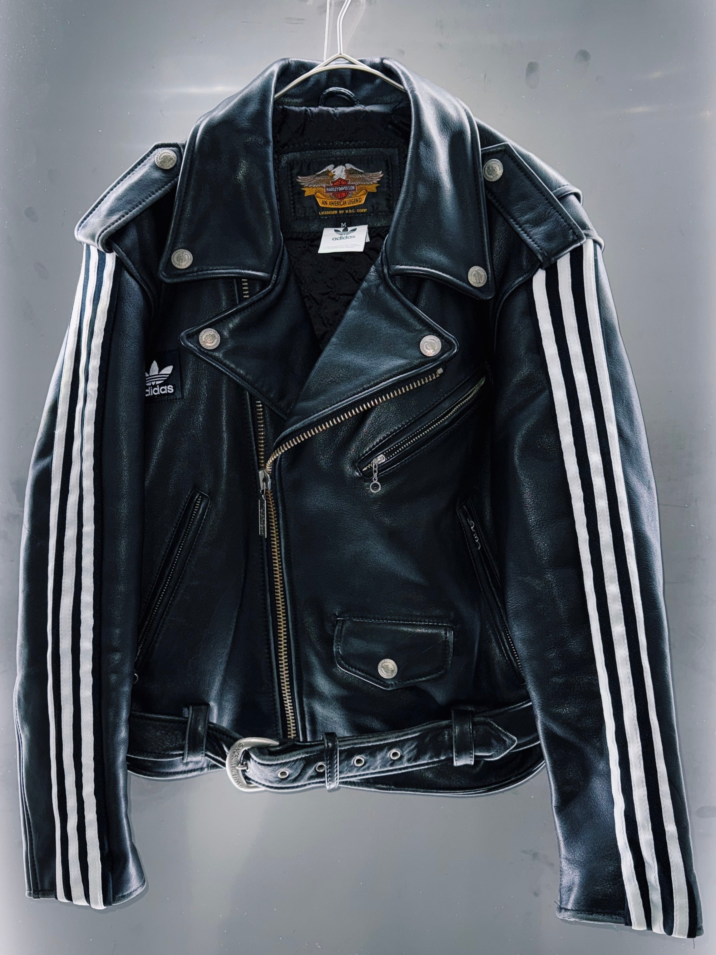 special "original re:meke" vintage "adidas"x vintage double riders leather jacket three strip edition