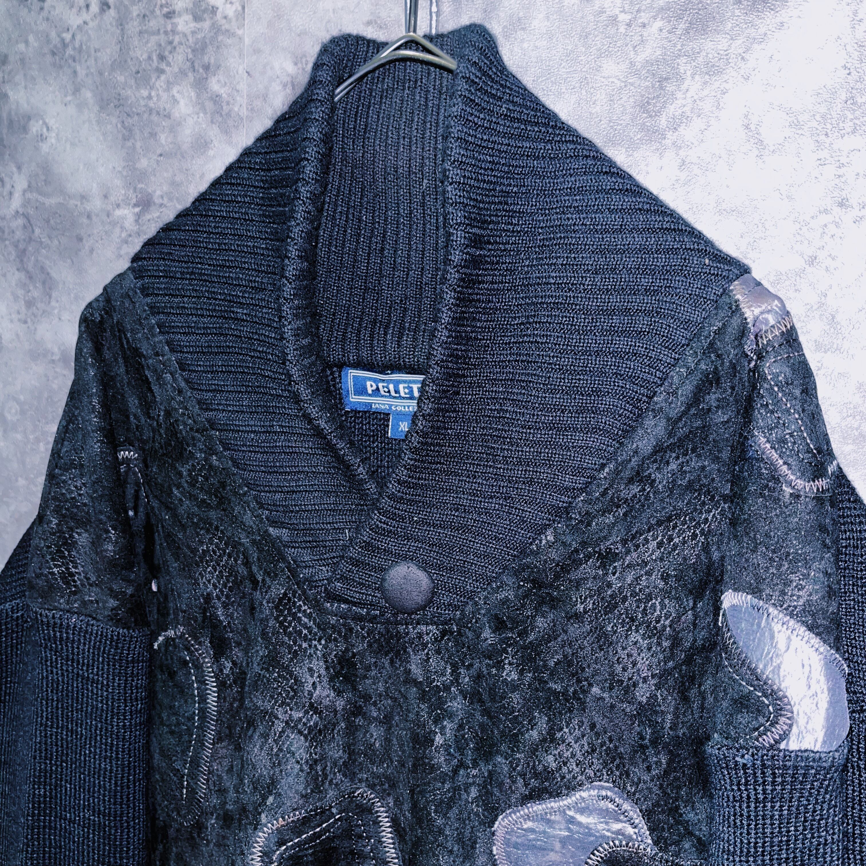 【doppio】vintage patchwork stitch design knit pullover
