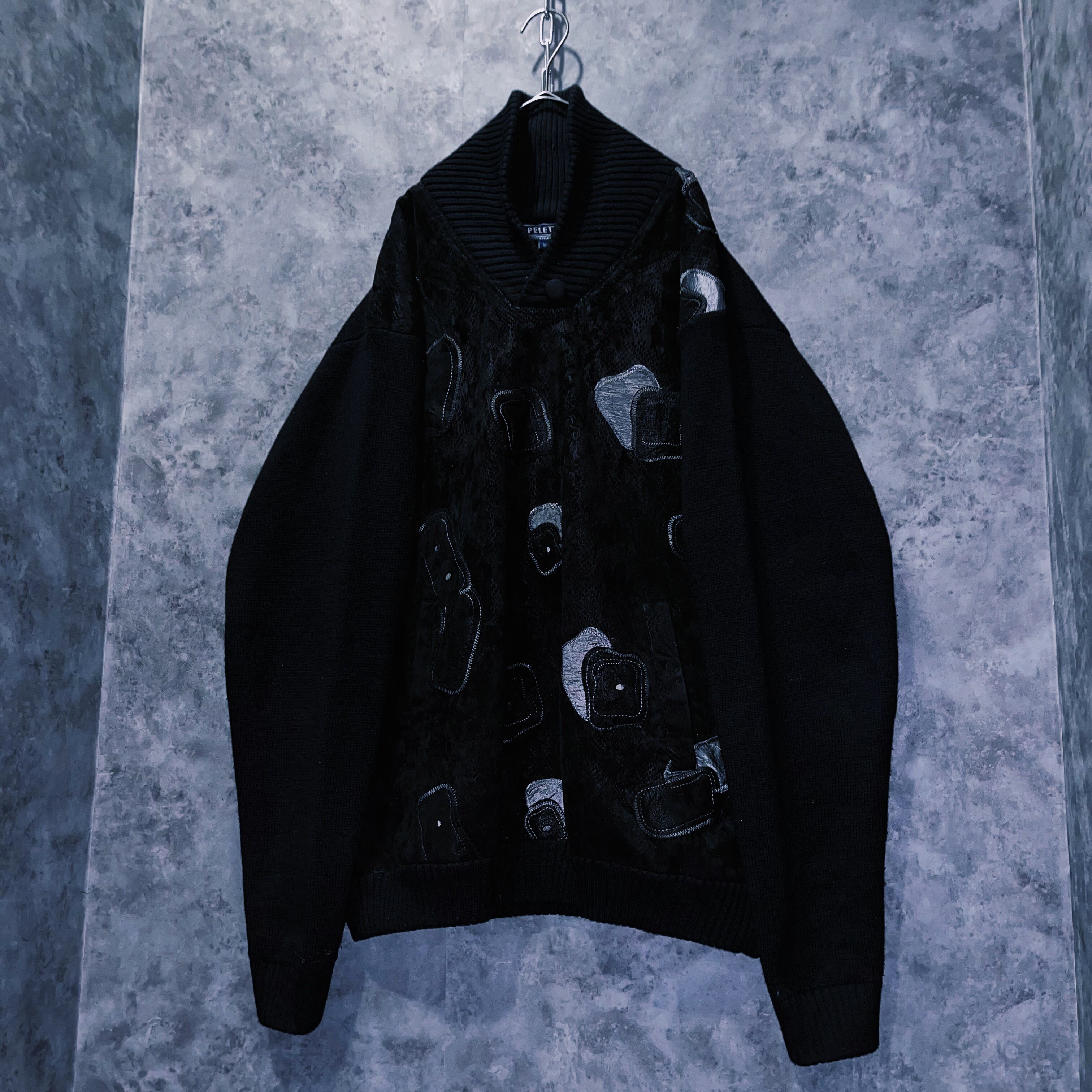 フロントにはレザーのようなマットな光沢を放つデザインがパッチワークのように施され、上品なブラックにシャドウパターンが落ちるクラシカルな一枚。