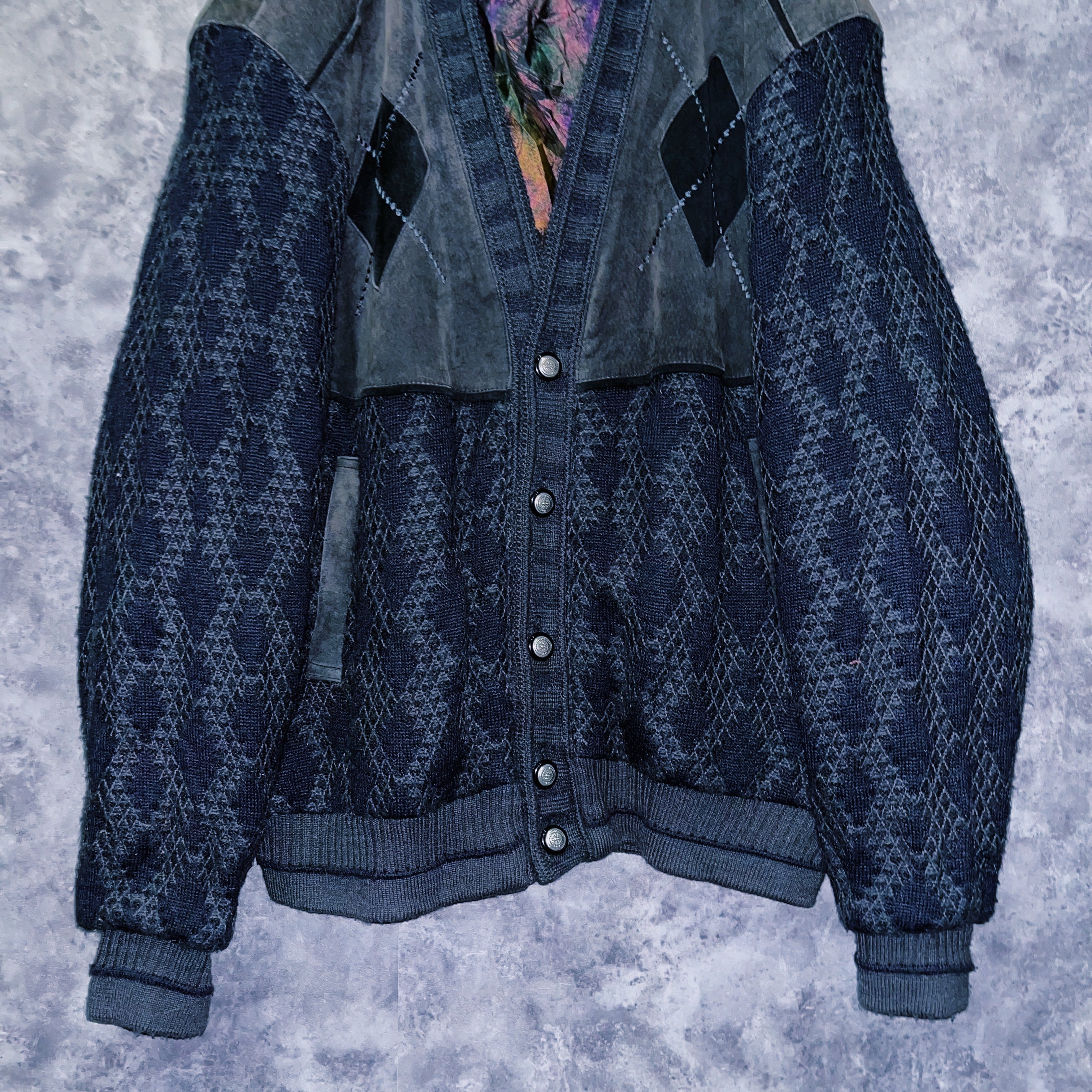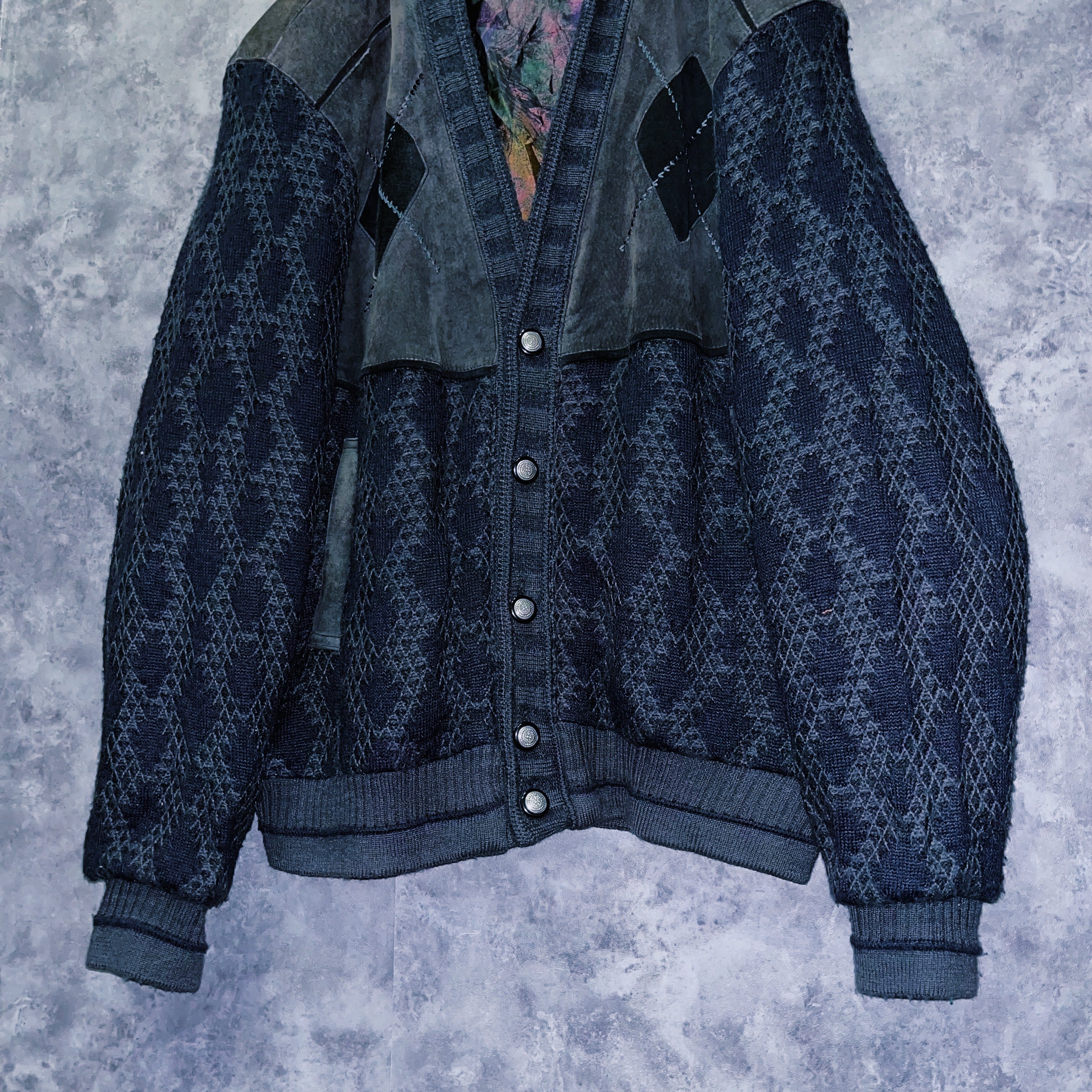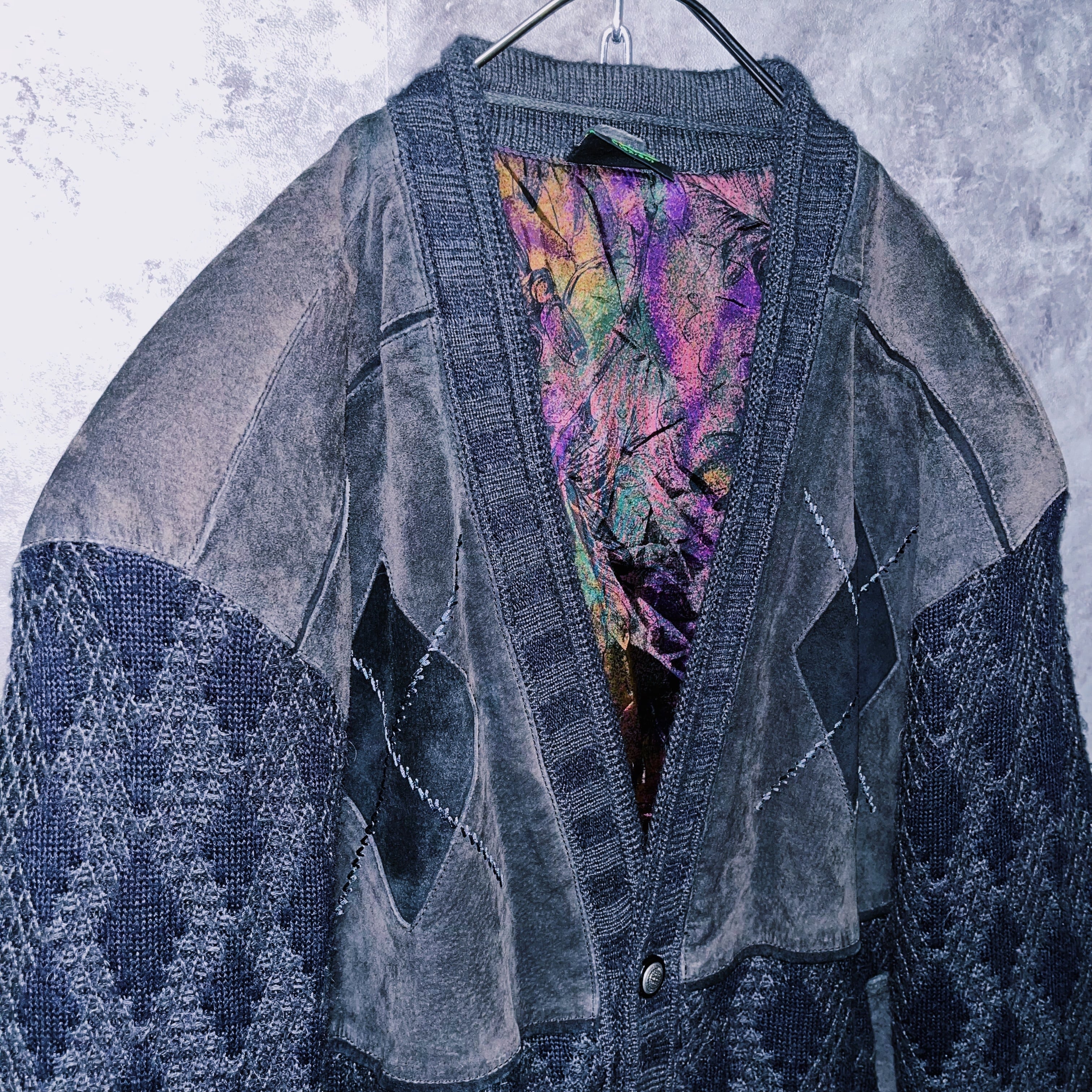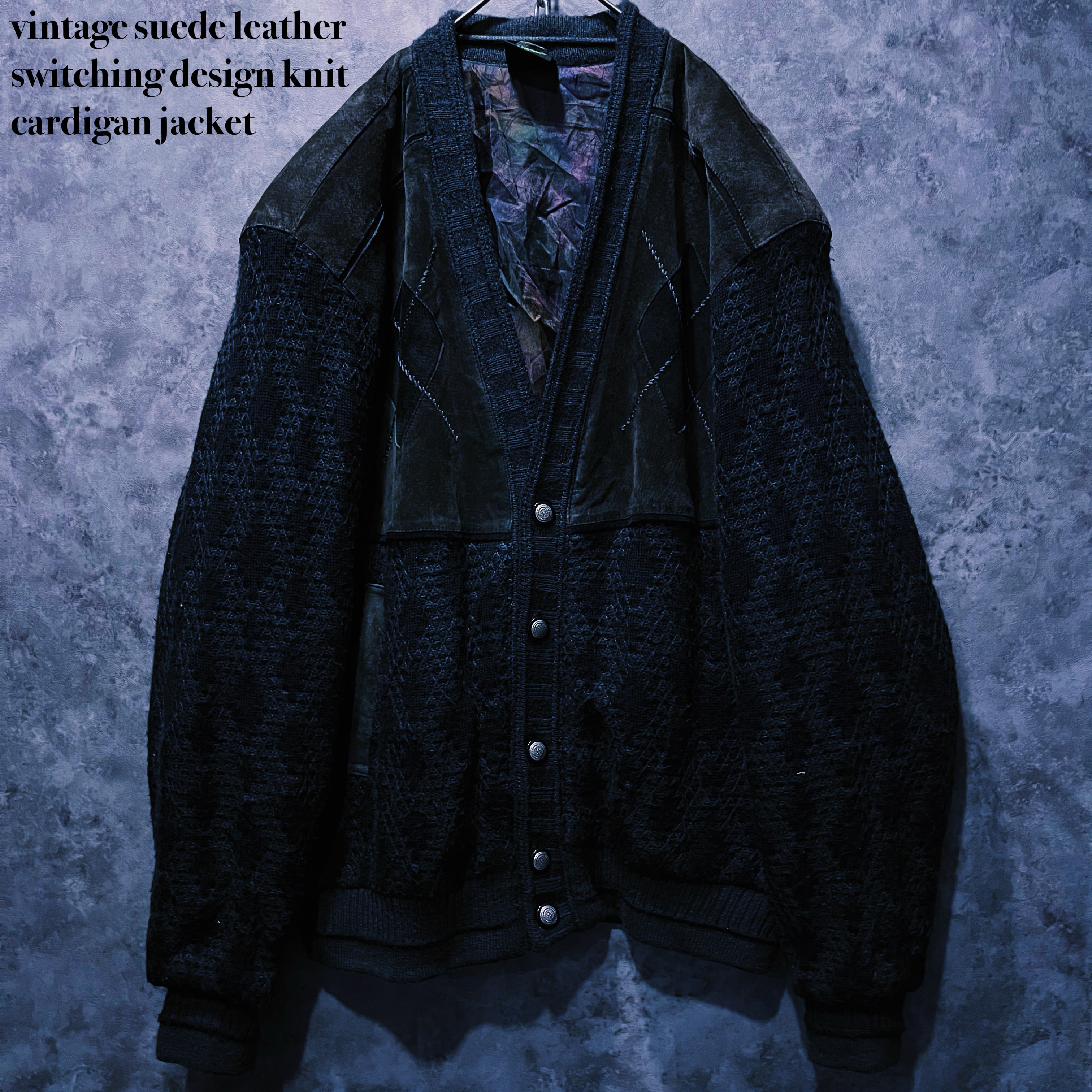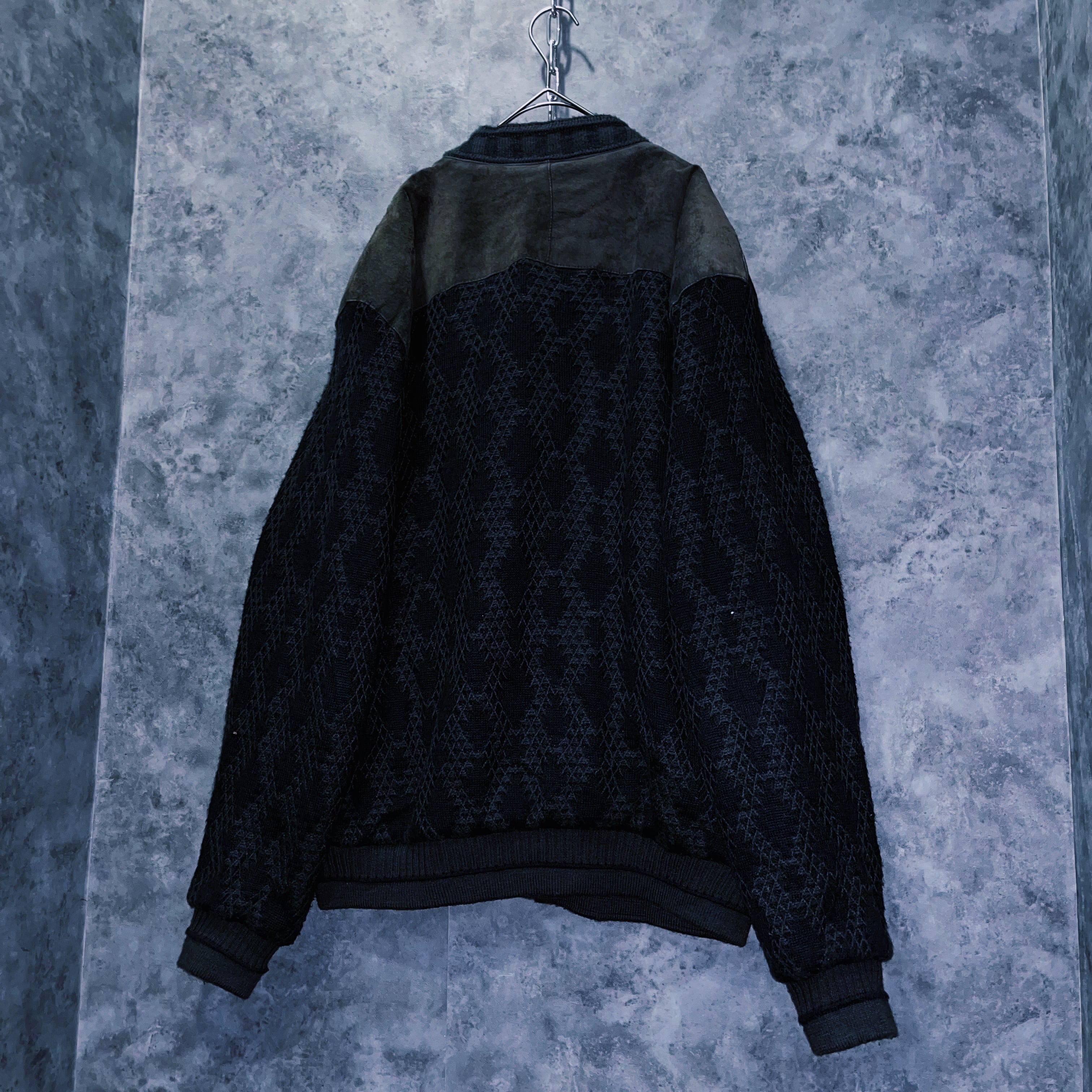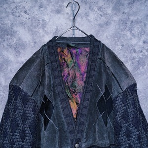 ヴィンテージスウェードレザースイッチングデザインニットカーディガンジャケット